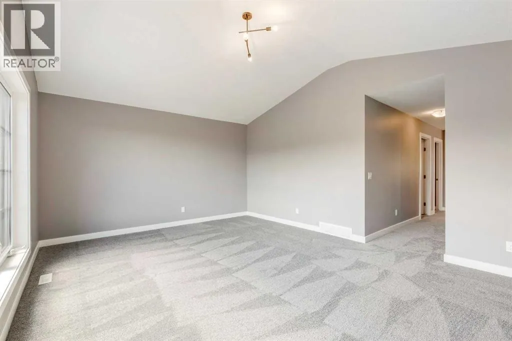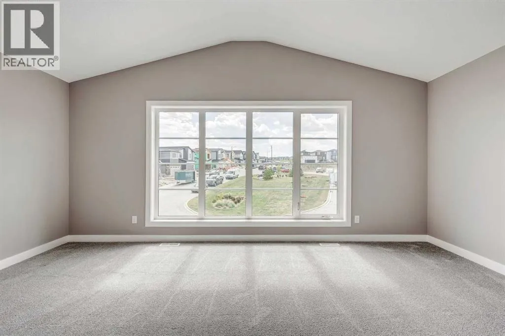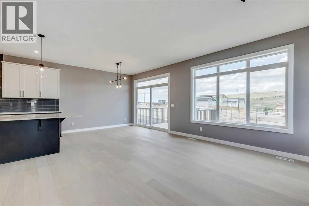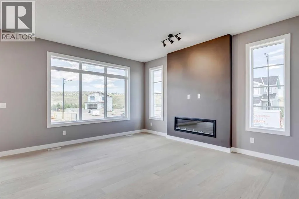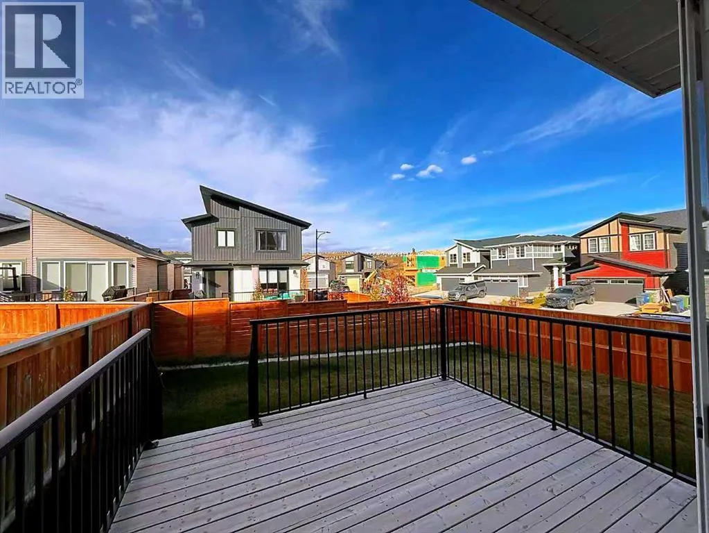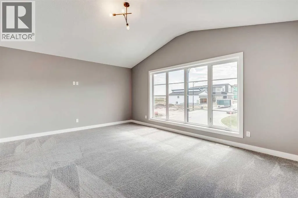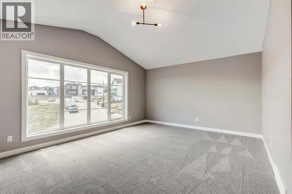 Please enjoy a virtual tour of this immaculate and beautifully designed home, ideally situated in one of Cochraneâs most convenient and sought-after neighbourhoods! Located on a large corner lot directly across from central Reindeer Park, this spacious 3-bedroom, 2.5-bath home offers over 2,000 sq ft of stylish and comfortable living spaceâperfect for larger or upscaling families. From the moment you step through the grand 8' front door, you'll be greeted by soaring 9' ceilings, oversized windows, and gleaming hardwood floors that flow throughout the foyer, hallway, great room, kitchen, and nookâcreating a warm and elegant atmosphere. The open floor plan enhances the sense of space and flow, ideal for both everyday living and entertaining. The stunning kitchen features dual-colour quartz countertops and cabinetry, a tiled walk-through pantry connecting to the mudroom, stainless steel appliances including a self-cleaning gas range, a built-in microwave, and a dishwasher. A spacious great room anchored by a sleek Napoleon Alluravision fireplace adds a cozy yet modern touch. Upstairs, the generous master bedroom includes a luxurious 5-piece ensuite with dual quartz vanities, undermounted sinks, a deep soaker tub beneath a bright window, and an oversized tiled shower. A large, separate walk-in closet provides ample space. The upper floor also boasts a forward-facing bonus room with a dramatic two-sided vaulted ceiling, two additional good-sized bedrooms with double-door closets, a main bath with quartz countertops, and a bright upper-floor laundry room with linen storage and tiled flooring. This home sits on a quiet street in a family-friendly area, less than 5 minutes from elementary, junior high, and high schools, and under 8 minutes to grocery stores, parks, coffee shops, and restaurants. With easy access to downtown Calgary (just 40 minutes away) and the Tuscany LRT station (only 25 minutes away), convenience is at your doorstep. Beautiful, elegant, and functionalât his home has it all. Book your private showing today! (id:27476)