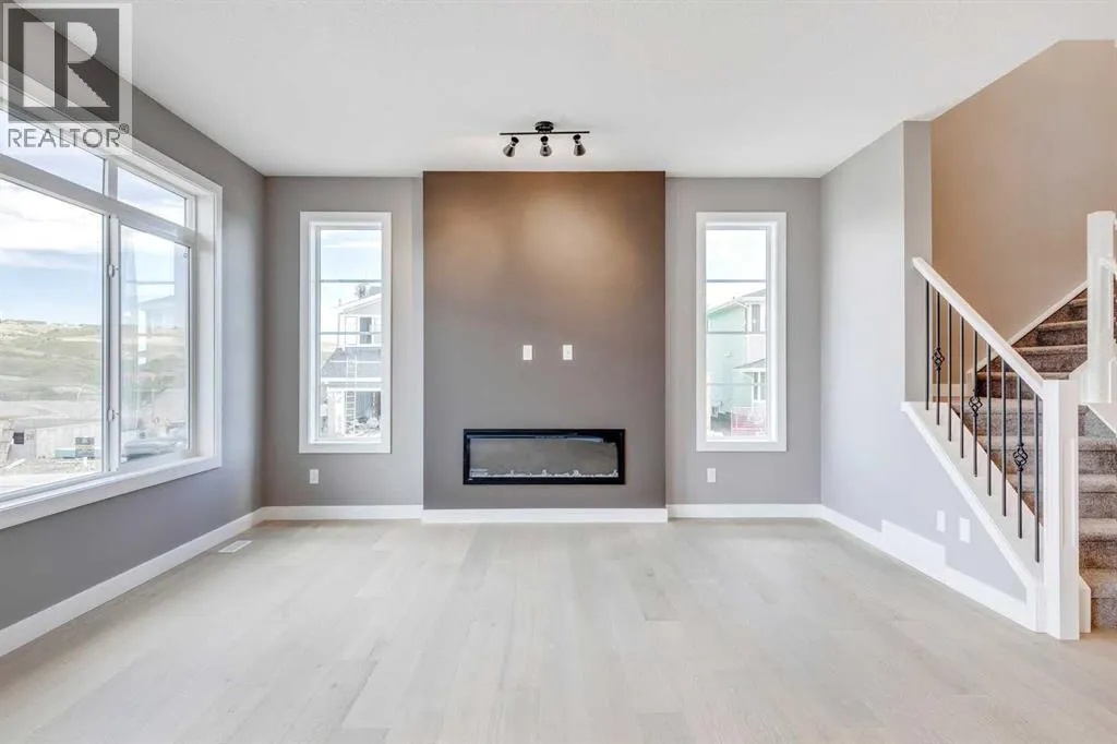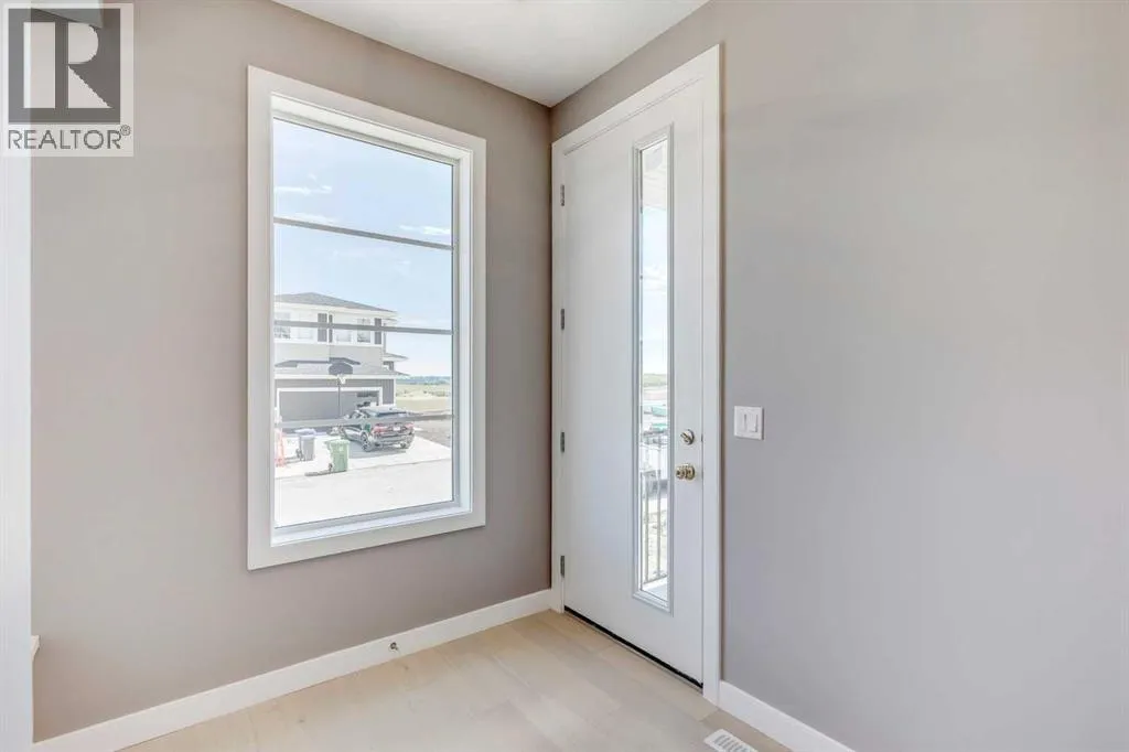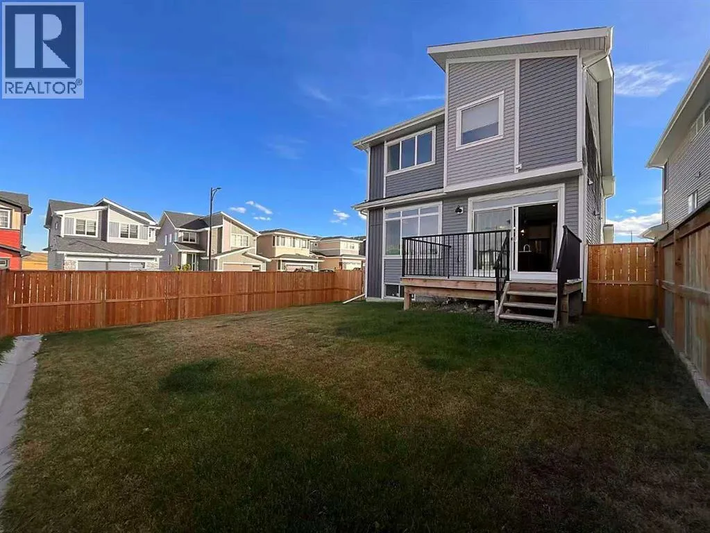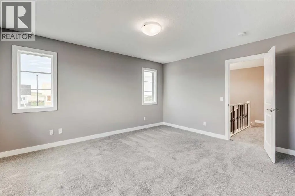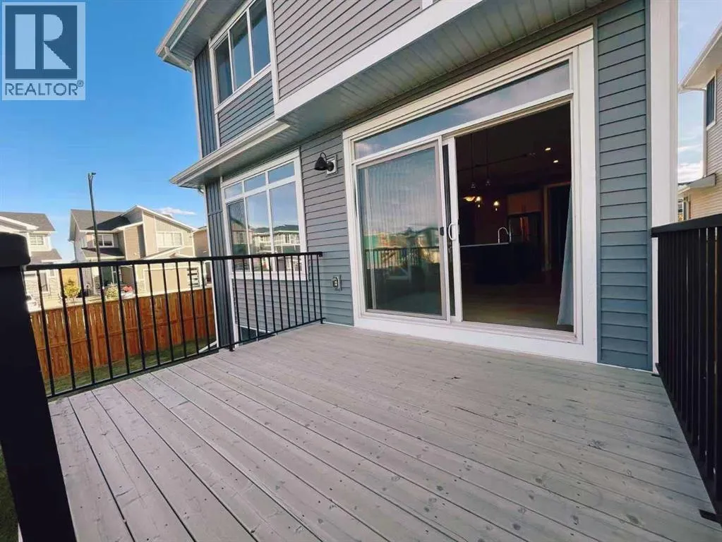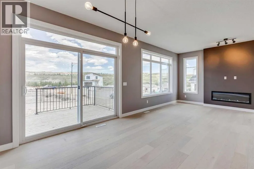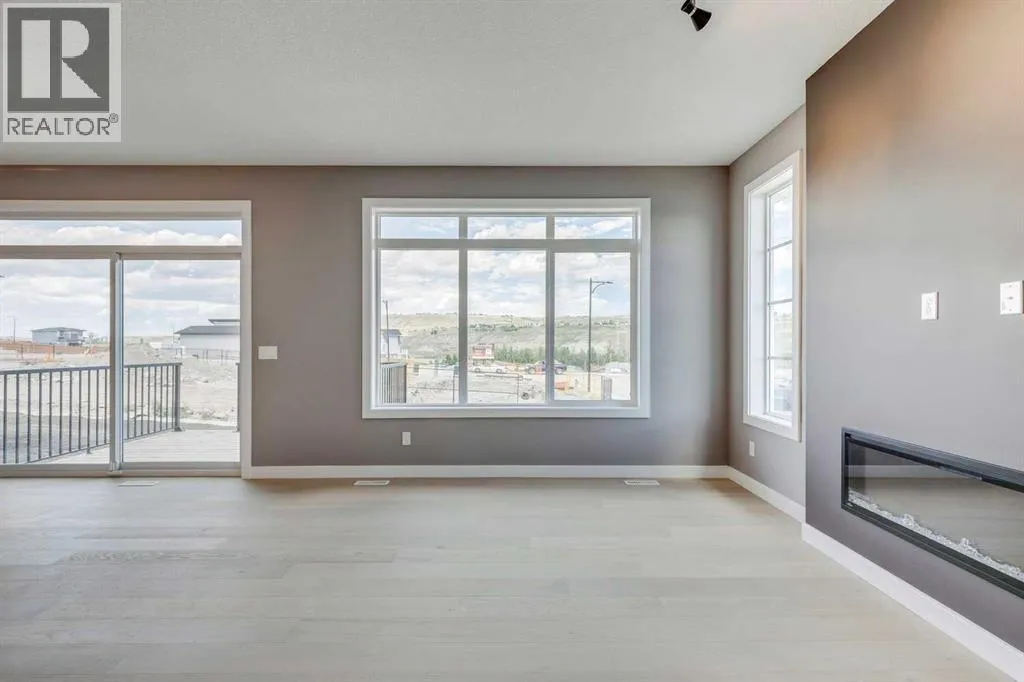 Please enjoy a virtual tour of this immaculate and beautifully designed home, ideally situated in one of Cochraneâs most convenient and sought-after neighbourhoods! Located on a large corner lot directly across from central Reindeer Park, this spacious 3-bedroom, 2.5-bath home offers over 2,000 sq ft of stylish and comfortable living spaceâperfect for larger or upscaling families. From the moment you step through the grand 8' front door, you'll be greeted by soaring 9' ceilings, oversized windows, and gleaming hardwood floors that flow throughout the foyer, hallway, great room, kitchen, and nookâcreating a warm and elegant atmosphere. The open floor plan enhances the sense of space and flow, ideal for both everyday living and entertaining. The stunning kitchen features dual-colour quartz countertops and cabinetry, a tiled walk-through pantry connecting to the mudroom, stainless steel appliances including a self-cleaning gas range, a built-in microwave, and a dishwasher. A spacious great room anchored by a sleek Napoleon Alluravision fireplace adds a cozy yet modern touch. Upstairs, the generous master bedroom includes a luxurious 5-piece ensuite with dual quartz vanities, undermounted sinks, a deep soaker tub beneath a bright window, and an oversized tiled shower. A large, separate walk-in closet provides ample space. The upper floor also boasts a forward-facing bonus room with a dramatic two-sided vaulted ceiling, two additional good-sized bedrooms with double-door closets, a main bath with quartz countertops, and a bright upper-floor laundry room with linen storage and tiled flooring. This home sits on a quiet street in a family-friendly area, less than 5 minutes from elementary, junior high, and high schools, and under 8 minutes to grocery stores, parks, coffee shops, and restaurants. With easy access to downtown Calgary (just 40 minutes away) and the Tuscany LRT station (only 25 minutes away), convenience is at your doorstep. Beautiful, elegant, and functionalât his home has it all. Book your private showing today! (id:27476)