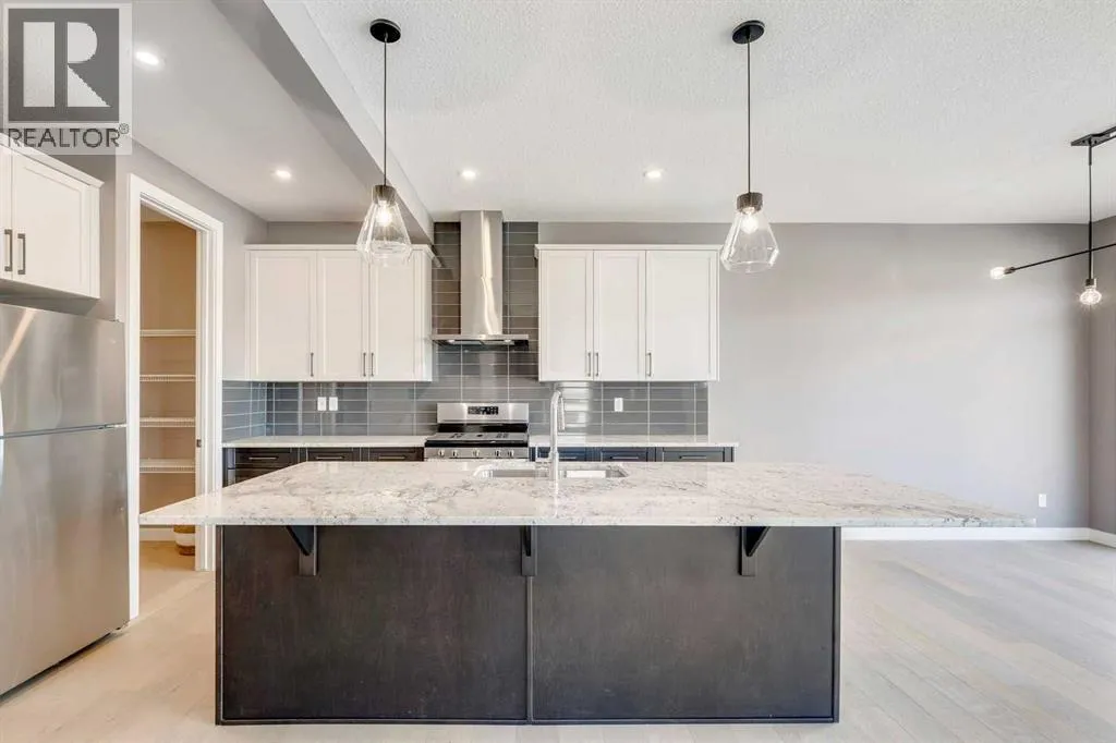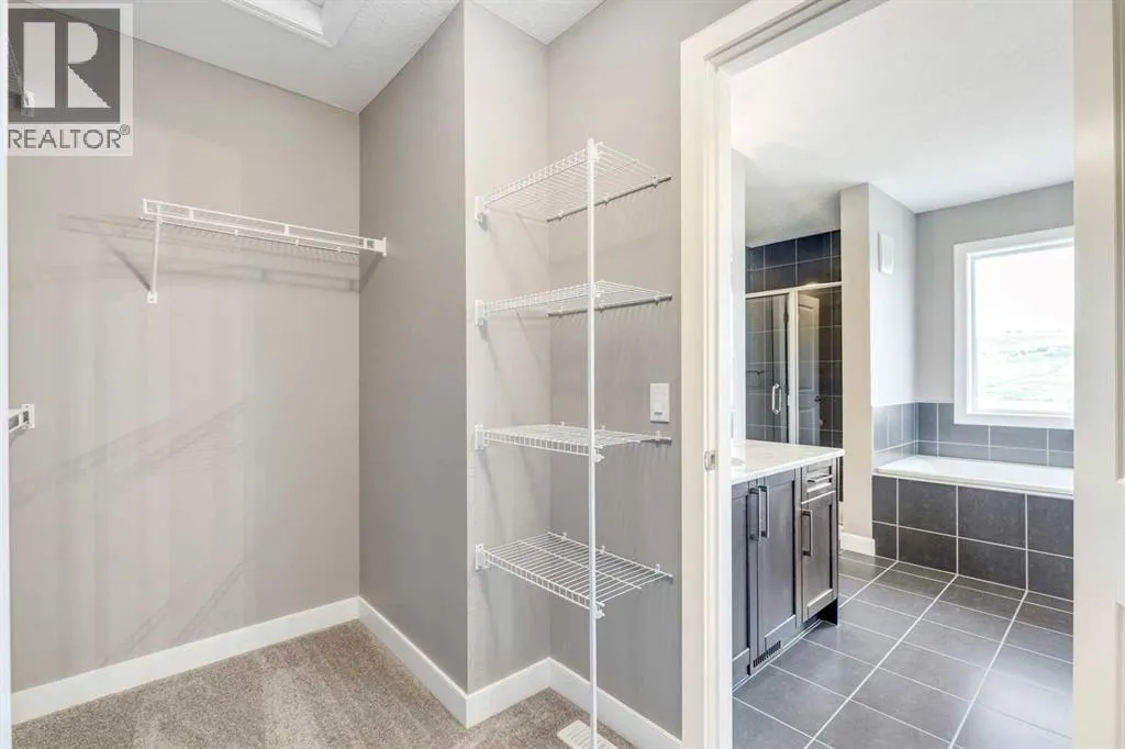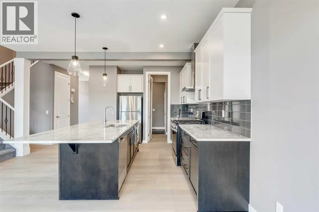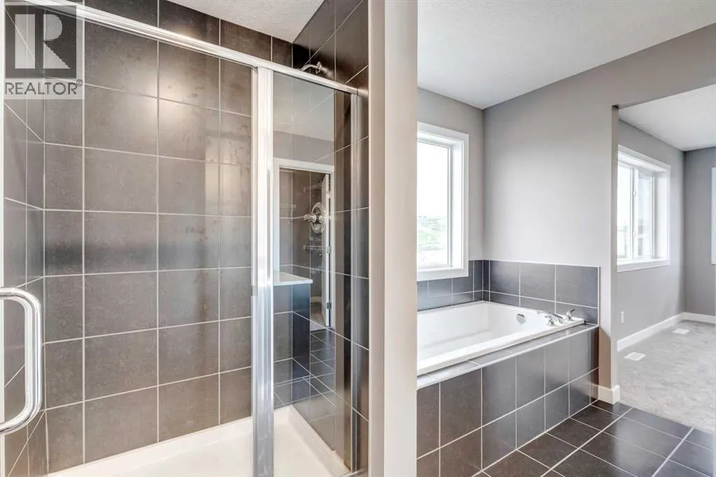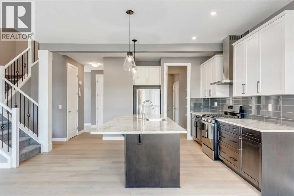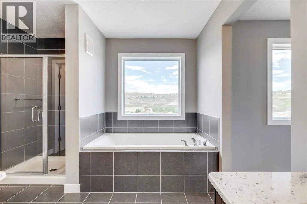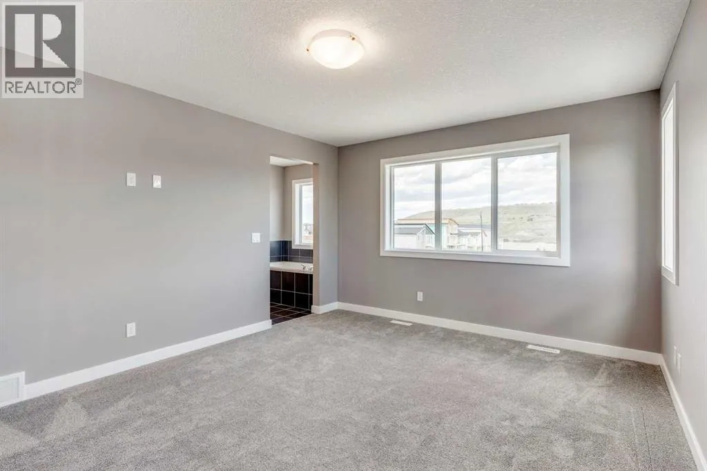 Please enjoy a virtual tour of this immaculate and beautifully designed home, ideally situated in one of Cochraneâs most convenient and sought-after neighbourhoods! Located on a large corner lot directly across from central Reindeer Park, this spacious 3-bedroom, 2.5-bath home offers over 2,000 sq ft of stylish and comfortable living spaceâperfect for larger or upscaling families. From the moment you step through the grand 8' front door, you'll be greeted by soaring 9' ceilings, oversized windows, and gleaming hardwood floors that flow throughout the foyer, hallway, great room, kitchen, and nookâcreating a warm and elegant atmosphere. The open floor plan enhances the sense of space and flow, ideal for both everyday living and entertaining. The stunning kitchen features dual-colour quartz countertops and cabinetry, a tiled walk-through pantry connecting to the mudroom, stainless steel appliances including a self-cleaning gas range, a built-in microwave, and a dishwasher. A spacious great room anchored by a sleek Napoleon Alluravision fireplace adds a cozy yet modern touch. Upstairs, the generous master bedroom includes a luxurious 5-piece ensuite with dual quartz vanities, undermounted sinks, a deep soaker tub beneath a bright window, and an oversized tiled shower. A large, separate walk-in closet provides ample space. The upper floor also boasts a forward-facing bonus room with a dramatic two-sided vaulted ceiling, two additional good-sized bedrooms with double-door closets, a main bath with quartz countertops, and a bright upper-floor laundry room with linen storage and tiled flooring. This home sits on a quiet street in a family-friendly area, less than 5 minutes from elementary, junior high, and high schools, and under 8 minutes to grocery stores, parks, coffee shops, and restaurants. With easy access to downtown Calgary (just 40 minutes away) and the Tuscany LRT station (only 25 minutes away), convenience is at your doorstep. Beautiful, elegant, and functionalât his home has it all. Book your private showing today! (id:27476)