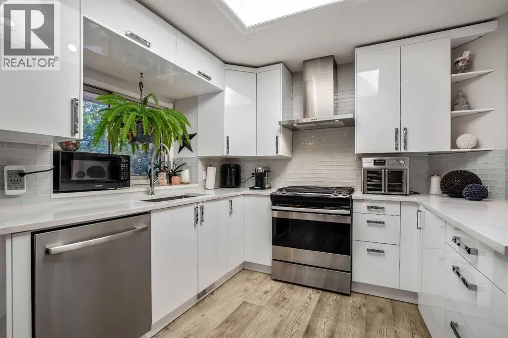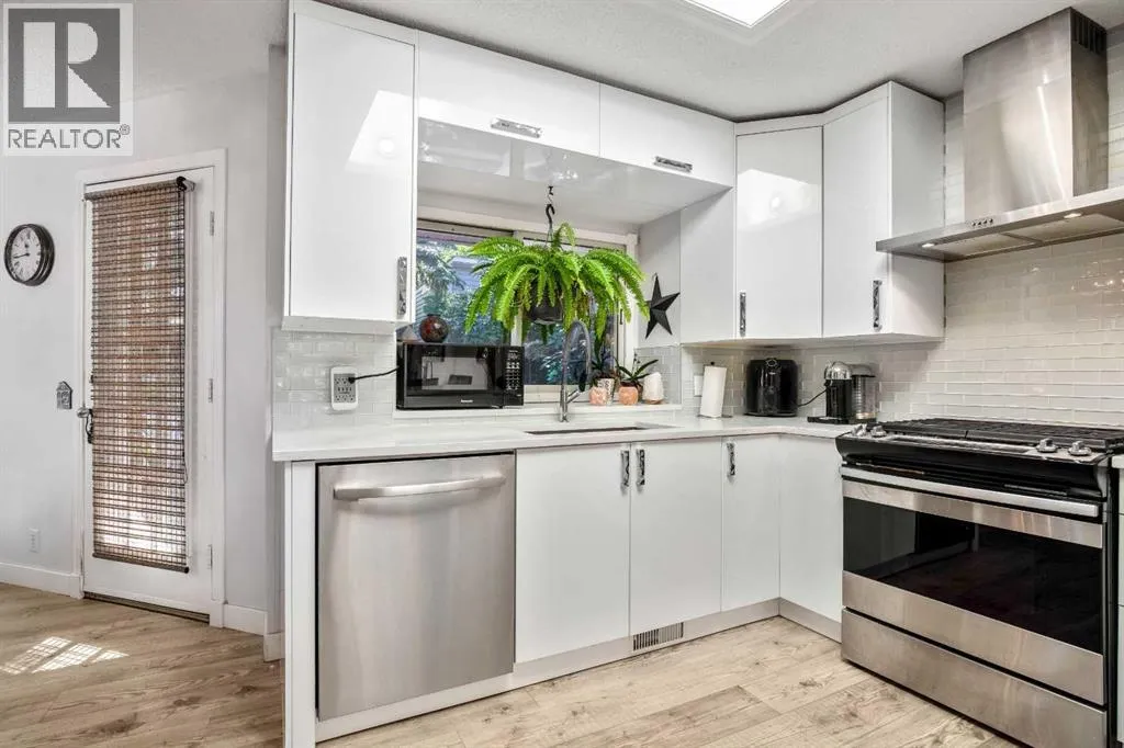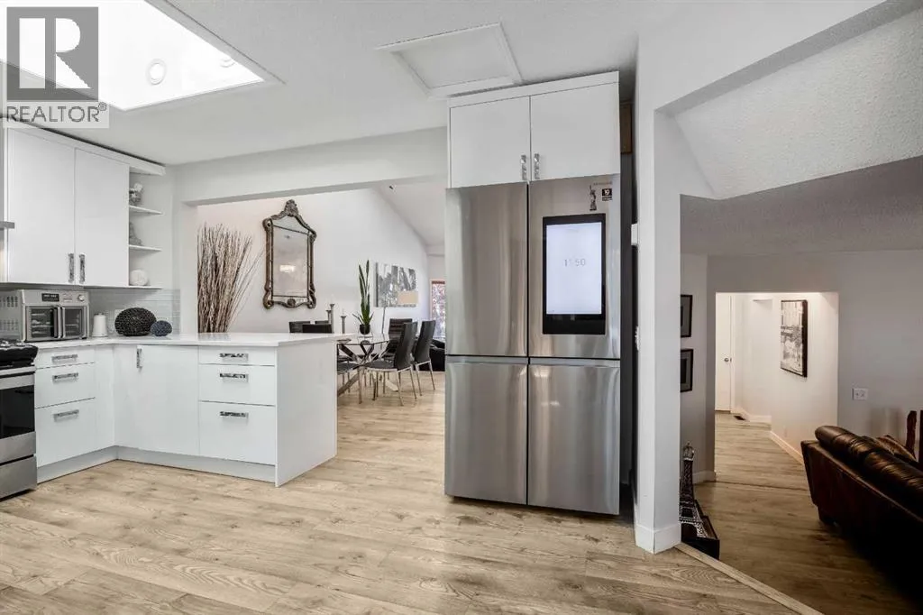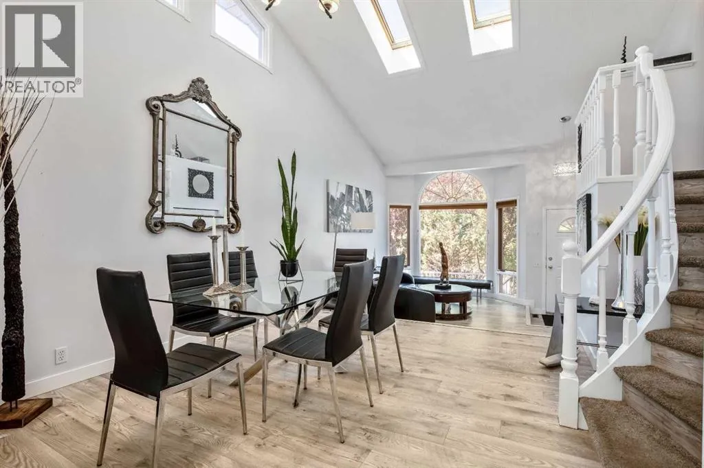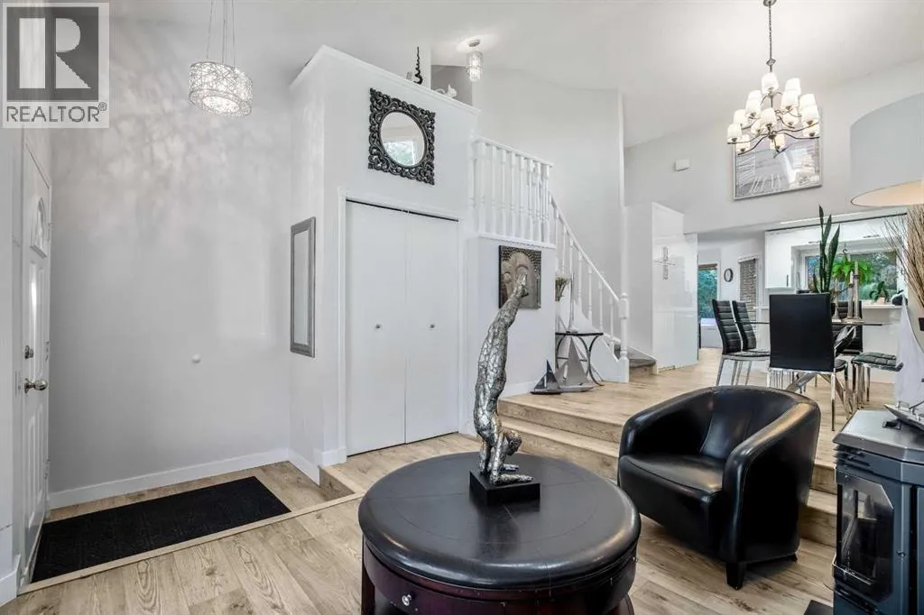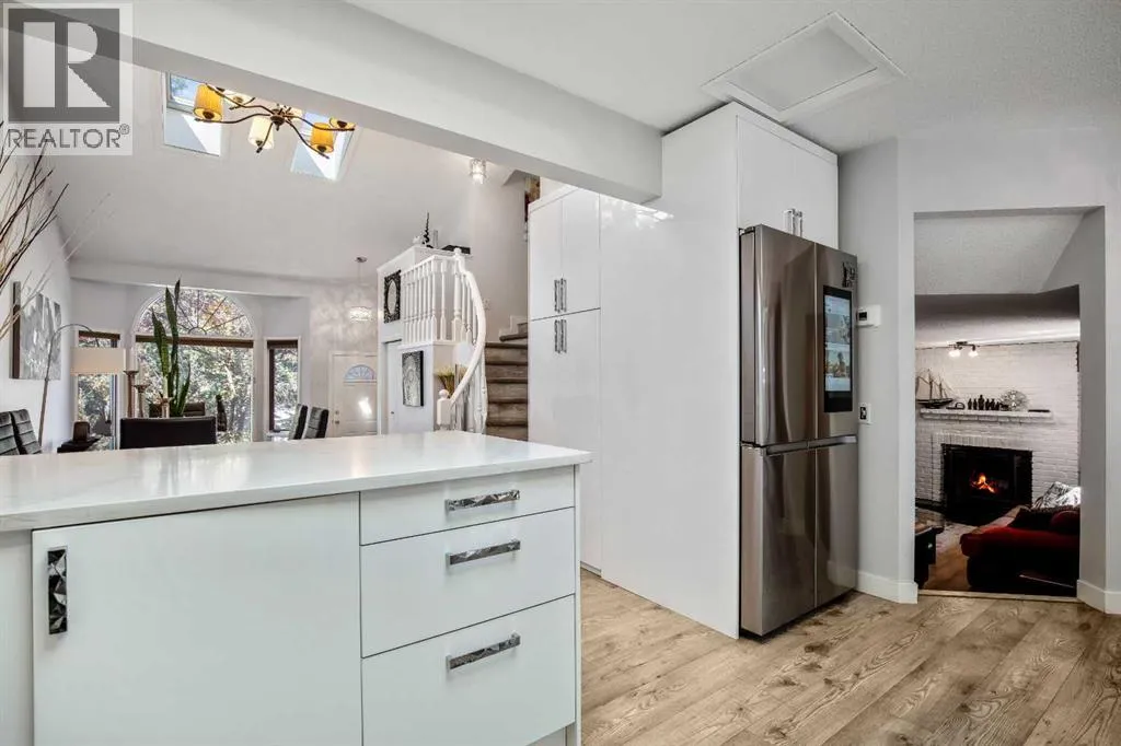 Nestled in a serene pocket of Glenbowâone of Cochraneâs most cherished communitiesâthis beautiful home offers the perfect blend of tranquility and convenience. Enjoy the peace of a quiet neighbourhood retreat while remaining just minutes from Cochraneâs vibrant shops, restaurants, entertainment, and everyday amenities. From the moment you arrive, the inviting front porch sets the tone for the warmth and charm that awaits inside. Step through the door to find soaring ceilings and skylights that fill the home with natural light. Updated flooring and an open-concept design seamlessly connect the front sitting room, dining area, kitchen, and breakfast nookâcreating an ideal space for both daily living and entertaining. At the heart of the home, the beautifully renovated kitchen impresses with quartz countertops, high-gloss cabinetry, a gas stove, and a Samsung smart fridgeâcombining sleek modern design with everyday functionality. From here, step outside into your private garden oasis. Surrounded by mature greenery and the gentle sound of birdsong, this peaceful backyard sanctuary is the perfect spot for your morning coffee or evening unwind. Upstairs, the spacious primary suite serves as a restful retreat, complete with a spa-inspired tub and a beautifully updated ensuite bath. Two additional bedrooms and a fully renovated 4-piece main bathroom offer fresh, modern finishes the whole family will appreciate. The lower level is designed for comfort and connection, featuring a cozy wood-burning fireplace that anchors the family room. French doors open onto the lower deck, creating an effortless flow between indoor and outdoor living. The basement provides additional flexible spaceâideal for guests, recreation, or a home officeâtailored to your lifestyle needs. Additional highlights include an attached double garage, exposed aggregate driveway, and updated bathrooms throughout. With direct access to Cochraneâs extensive trail system, youâll love exploring the natural beauty that surrounds you. All this, within walking distance to schools, parks, and Cochraneâs historic downtown. Book your private showing today and experience what this Cochrane Gem has to offer! (id:27476)