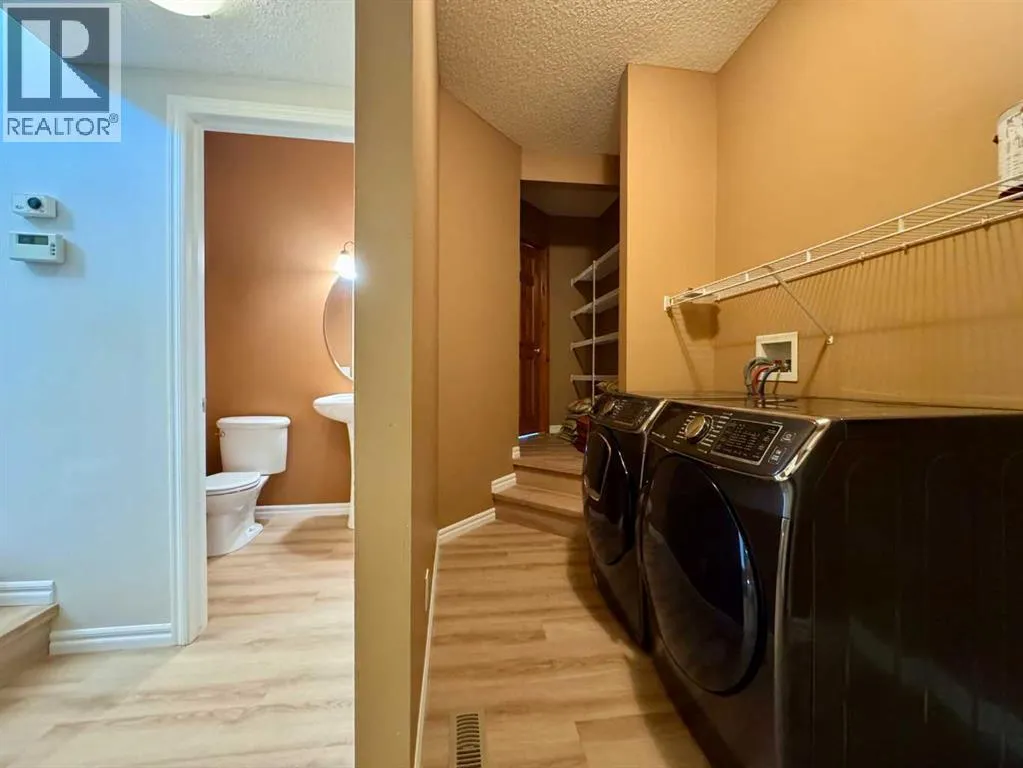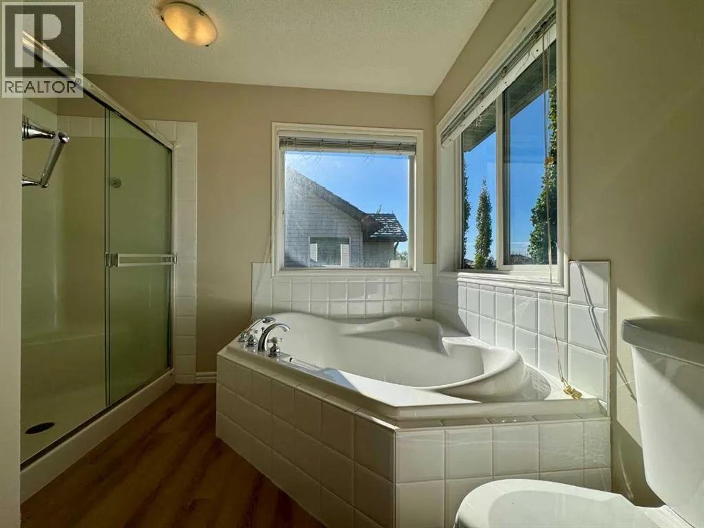 Renovated 3 bedroom 2.5 bathroom detached house in a quiet community, offering over 2500 sq ft of living space. In addition to the living room, there is a large, bright bonus space on the upper level with high ceilings. The upper level features great family layout, including a primary bedroom with large ensuite bathroom and walk in closet, along with two other bedrooms and another full bathroom. Recent renovations include new flooring, quartz countertops, sinks, faucets, interior paint, and stove. Enjoy the private fenced backyard, open plan kitchen and large finished basement. Park in the double car garage or the two car driveway. The property backs onto path leading to a playground. Easy access to highway 1A and Calgary, and a short drive to the mountains. (id:27476)
