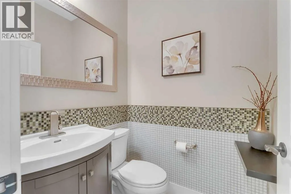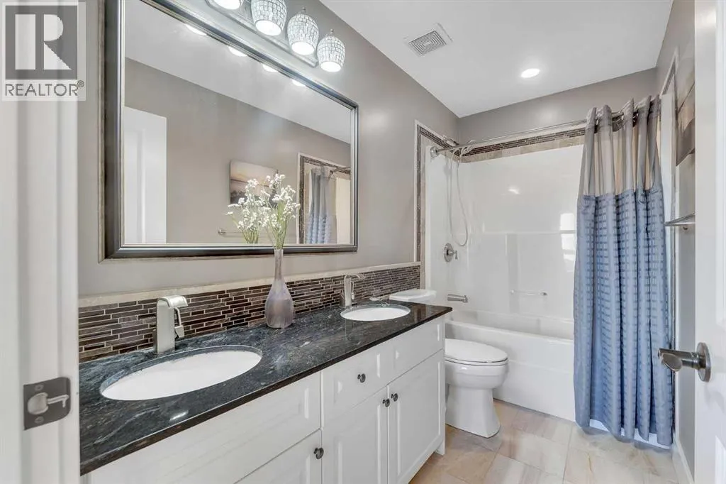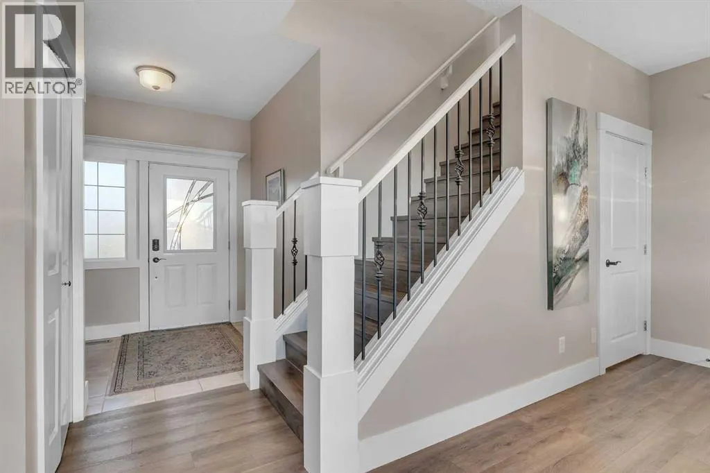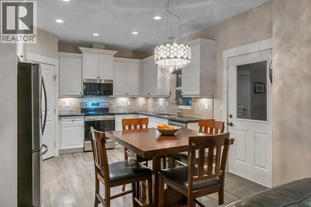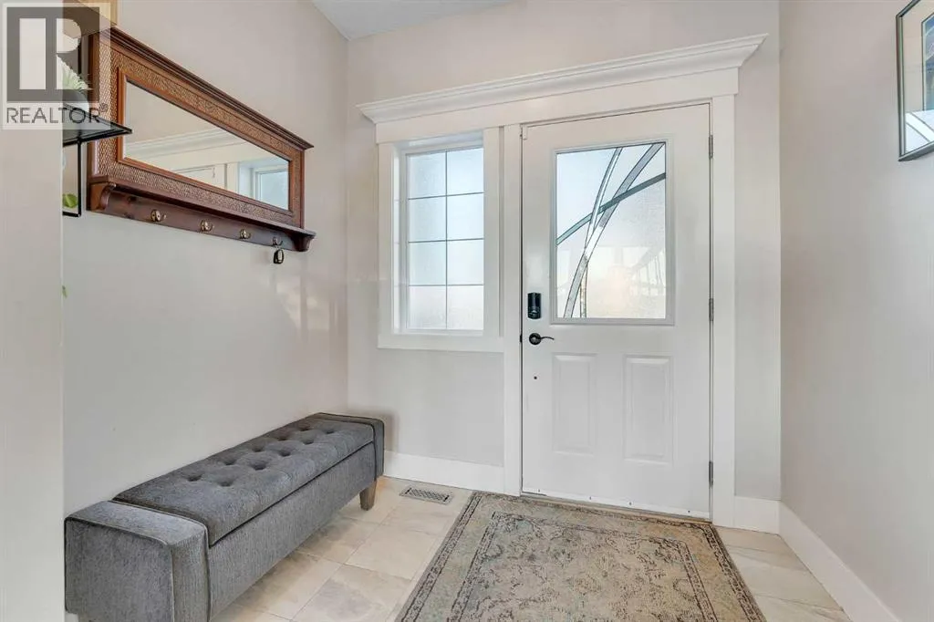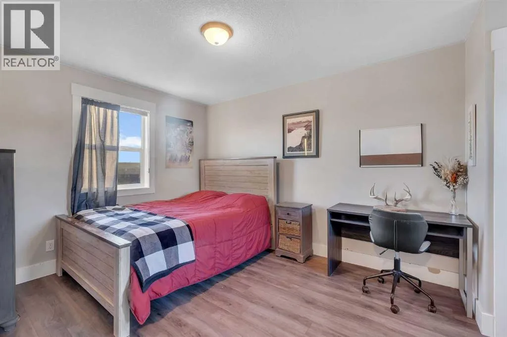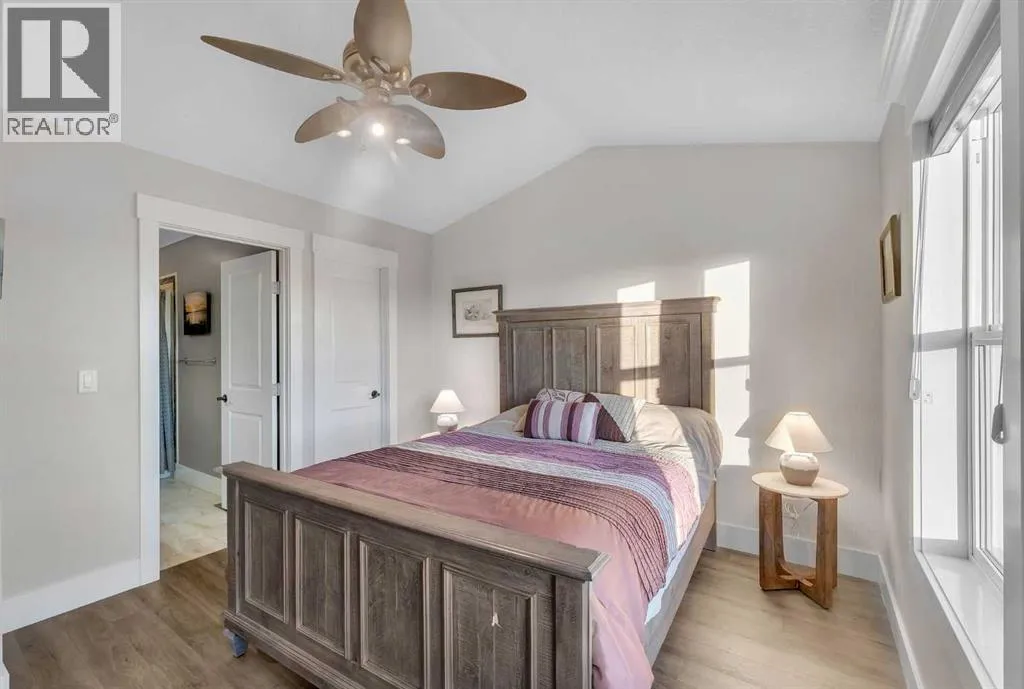 Perched on a quiet cul-de-sac, this home offers sweeping west-facing views over rolling hills and the snow-capped Rocky Mountains. From the moment you arrive, thereâs a sense of space, light, and comfort that makes this property stand out.Inside, the open-concept main floor is bright and welcoming. The living room features a striking floor-to-ceiling rock fireplace, creating a warm focal point for everyday living or entertaining. Large windows flood the space with natural light and frame stunning mountain and hill views. The dining area flows into a spacious kitchen with granite countertops, sleek stainless steel appliances, travertine tile, and plenty of cabinetry. A convenient powder room and access to the deck with glass railings allow you to take in the full, unobstructed view while enjoying privacy and outdoor living. Upstairs, the primary suite feels like a private retreat with vaulted ceilings, generous space for a king bed, and more west-facing views. A well-appointed ensuite and walk-in closet add comfort and convenience. Two great-sized additional bedrooms, a full bathroom, and a laundry room complete the upper level, making it an excellent layout for families or guests. The fully finished walk-out basement provides flexibility, featuring a large rec room, full bathroom, and potential for a separate living area with its own access and a parking area off the back lane. This space can be used for guests, hobbies, a home office, or additional living quarters. Throughout the home, thoughtful upgrades stand out, such as new vinyl flooring, fresh paint, tall baseboards, crown moulding around door frames, and abundant windows that keep every room light and bright. Outside, the walk-out level opens to a landscaped yard with extensive rockwork and level green space. A hot tub sits just steps away, and below is a lower garden area with mature shrubs where you can gaze up and admire your surroundings. Located in Heritage Hills, near a newly proposed grocery store an d close to local schools, this property combines privacy and convenience with quick access to Highway 1A for easy mountain getaways. This is where comfort meets breathtaking views, creating the perfect place to call home. Experience the beauty and calm of Heritage Hills living. (id:27476)