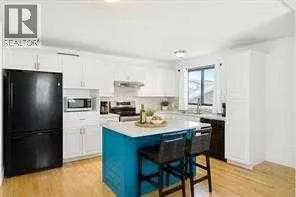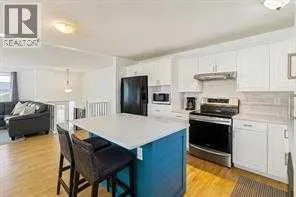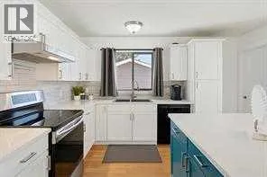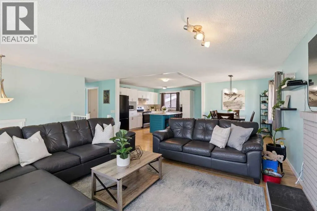 Welcome to this beautifully maintained bi-level home in the sought-after community of Glenbowâwhere comfort meets style and functionality. Thoughtfully updated with modern finishes, this inviting property is perfect for families who value space, convenience, and classic charm.Upstairs, the bright and airy WHITE KITCHEN boasts gleaming QUARTZ COUNTERTOPS and a clever SPICE DRAWER, making everyday cooking a breeze. The adjacent living room offers a warm and welcoming atmosphere, centred around a cozy WOOD-BURNING FIREPLACEâperfect for relaxing evenings. Stay comfortable year-round with CENTRAL AIR CONDITIONING.The main level features three bedrooms, including a spacious primary suite with a private 3-piece ENSUITE and TILED SHOWER. Major updates such as a NEW ROOF, HOT WATER TANK, and FURNACE offer added peace of mind and long-term value.The FULLY FINISHED SUNSHINE BASEMENT is filled with natural light and provides flexible living options with a large REC ROOM, fourth bedroom, 3-piece bathroom, laundry area, storage space, and a COLD ROOMâideal for guests or growing families.Step outside to enjoy the landscaped backyard, featuring a DECK, PAVING STONE PATIO, and BUILT-IN STORAGE BENCHESâperfect for entertaining or relaxing in your private outdoor space. The OVERSIZED DOUBLE DETACHED GARAGE with LANE ACCESS offers ample room for vehicles, tools, and hobbies.All this, just minutes from schools, parks, shopping, and Cochraneâs beautiful pathway system. This move-in-ready home blends location, lifestyle, and lasting valueâdonât miss your opportunity to call it yours! (id:27476)