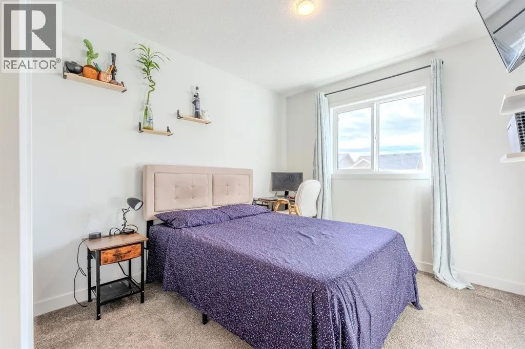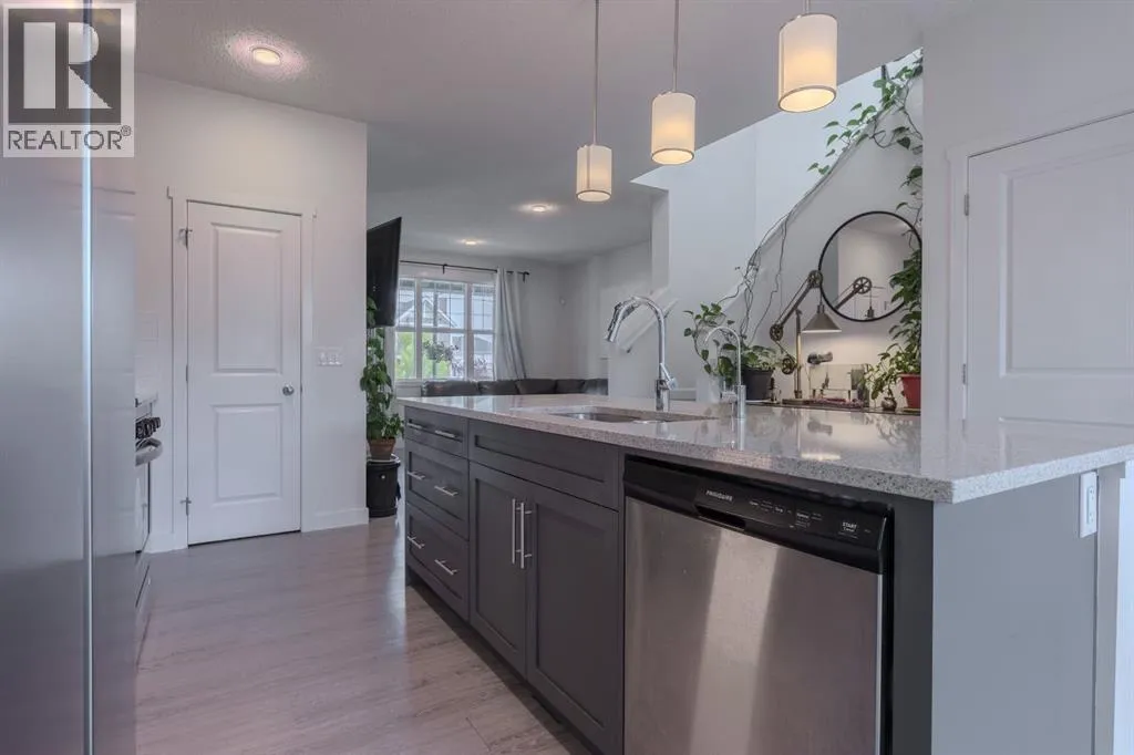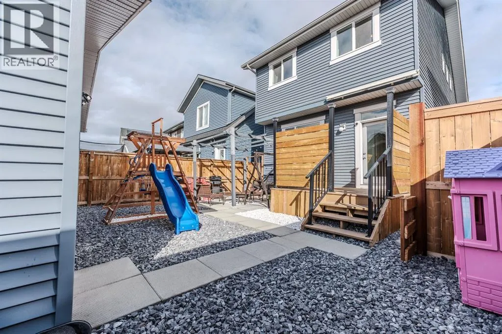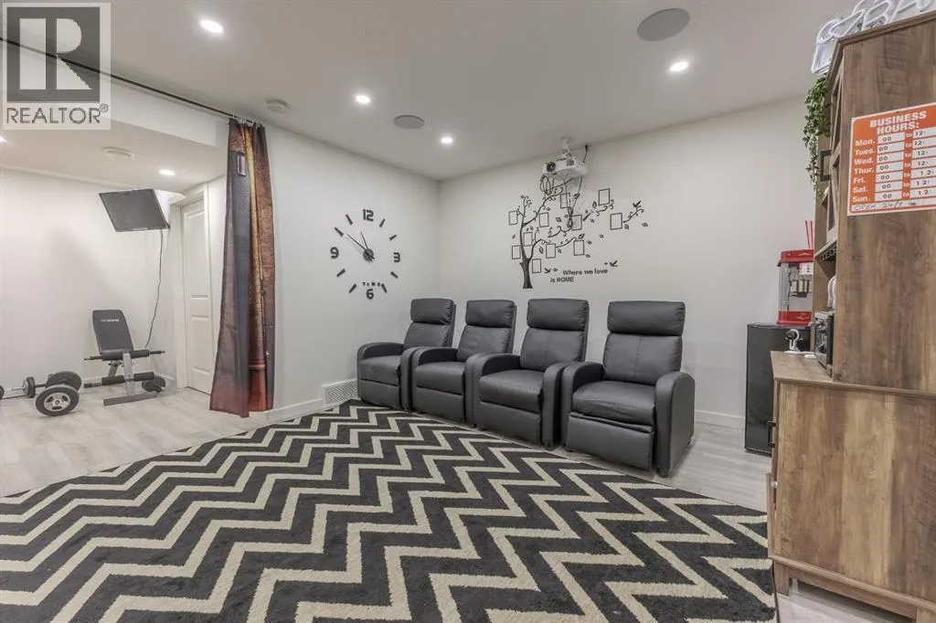 **Offering up to $2000 towards closing costs!** Welcome to this beautifully maintained 2-story home offering over 2,100 sq ft of living space in Cochraneâs award-winning Sunset Ridge community. Featuring 4 bedrooms and 3.5 bathrooms, this home is designed for comfort, style, and family living.The open-concept main floor is filled with natural light from large east-facing windows. The gallery-style kitchen is equipped with upgraded stainless steel appliances (including a new refrigerator), quartz countertops, a center island, and beautiful cabinetryâperfect for daily living and entertaining. The spacious living room and dedicated dining area provide ample space for gatherings.Upstairs, the primary suite is a true retreat with a walk-in closet and 3-piece ensuite. Two additional bedrooms, a 4-piece bath, and a convenient laundry area with a 2-in-1 washer-dryer combo complete the upper level.The fully finished basement features luxury vinyl plank flooring, a rec area with a built-in home theatre with projector screen and machine, a separate gym space, a fourth bedroom, and a custom-tiled bathroomâideal for guests, teens, or a home office.Enjoy central air conditioning, a Culligan water filter system, and permanent exterior lights. Outdoor living is enhanced by an extended deck, professionally landscaped low-maintenance yard with a fire pit, and a full-length front porch. The double detached garage with back alley access offers ample parking and storage.Located on a quiet road, this home is within walking distance to RancheView School, trails, parks, shopping, and amenities, with quick access to Calgary. (id:27476)