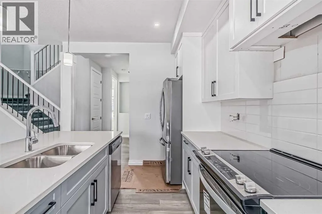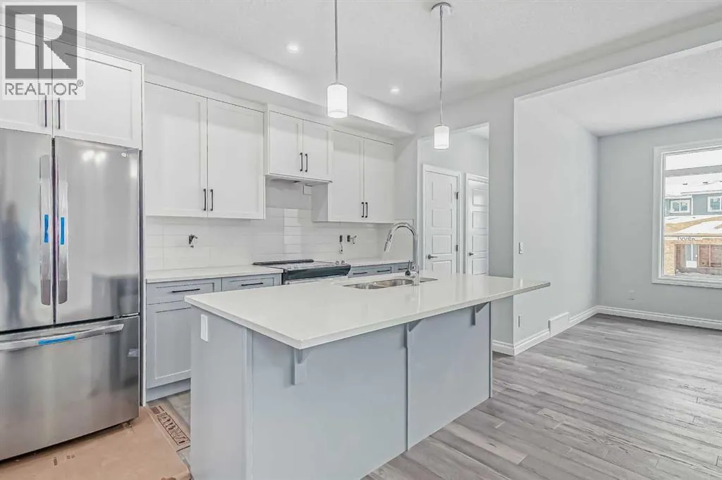 WOW ! A brand new home by Douglas Homes- Master Builder. Located one block from the new park that has been put into Southbow Landing. Thinking you may need a little bit more space ? Why not upgrade to this beautiful attached property- The Canberra ! With a generous almost 1500 worth of square footage, this home is sure to impress. This home provides 3 bedrooms, 2.5 bathrooms, a main floor bedroom or office for a perfect floor plan. The Douglas Homes kitchen comes standard with Quartz countertops on both the main floor kitchen, and the upstairs bathrooms. What an upgrade ! What really sets this home apart is the main floor office, isn't that handy ? As you go upstairs, the large window going up the stairs brings in lots of natural light. It's one of our favourite features of this home. Once upstairs, you will find 3 large bedrooms, and a walk in, full size washer and dryer with room for storage. The upstairs primary bedroom is spacious, and has a walk in closet, and even double sinks in the primary ensuite. This home doesn't even feel like a semi detached property, if you can believe it ! On the way to the basement you will find a side entrance which is perfect for a possible mortgage helper ( with approval from Rocky View County ). This home is ready in about six months and it can be yours this spring, and the best part is you have enough time to choose your palette of colours/finishings. Photos are from prior build & are reflective of fit, finish & included features. Note: Front elevation of home & interior photos are for illustration purposes only. Actual elevation style, interior colours/finishes, & upgrades may be different than shown & the Seller is under no obligation to provide them as such. Directions: Come to the Show Home first located at 115 Southborough Crescent. Show Home hours to view. This home is under construction (id:27476)