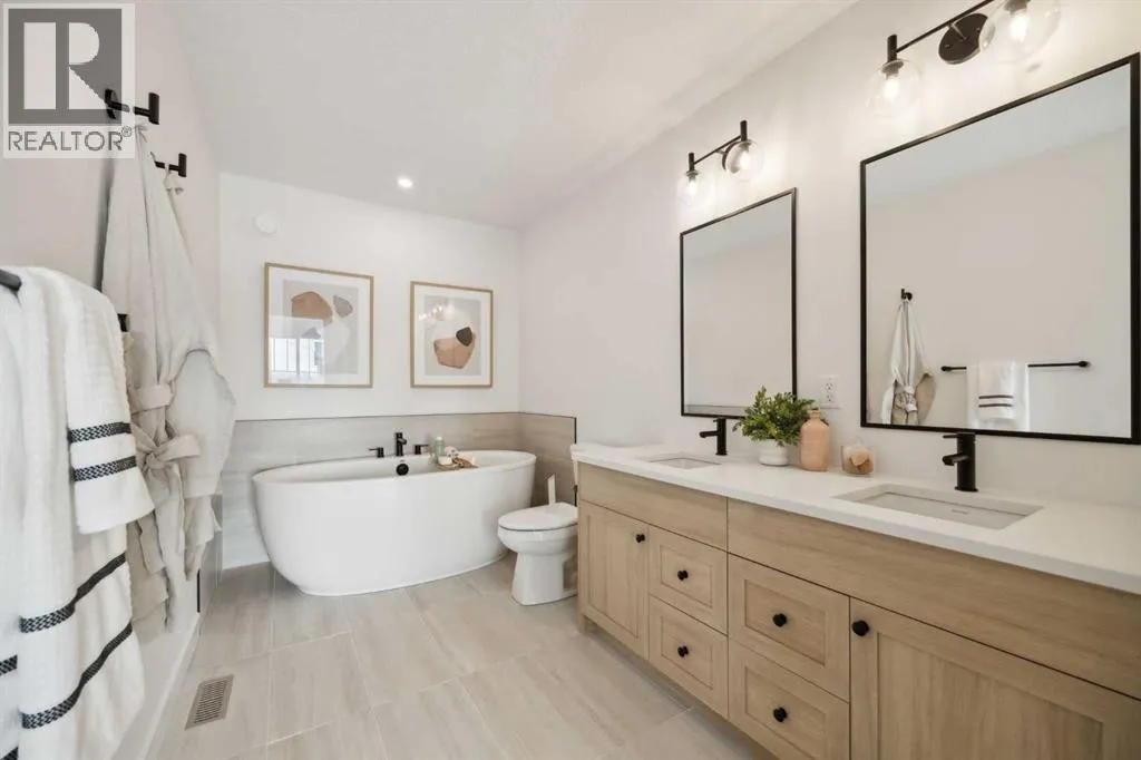 Welcome to 209 South Bow Drive in Cochrane, a beautifully crafted two-storey home by Daytona Homes offering nearly 1,900 sq. ft. of thoughtfully designed living space plus a fully finished legal basement suite with a separate entrance. The main floor features a bright open layout centered around a modern kitchen with a large island, flush eating bar, and spacious pantry. The kitchen overlooks the dining nook, which opens onto a rear deck, and flows seamlessly into the inviting great room, perfect for gatherings and everyday living. Between the walk-in foyer and the mudroom off the double attached garage, youâll find a convenient two-piece bathroom, completing a practical and welcoming main level. Upstairs, the front of the home hosts a generous primary bedroom with a walk-in closet and a luxurious five-piece ensuite featuring dual sinks, a soaker tub, and a separate shower. A central bonus room separates the primary suite from two spacious bedrooms at the rear, which share a four-piece bathroom, while a hallway laundry area adds modern convenience. The fully developed legal basement suite provides exceptional flexibility for multi-generational living or future rental income, complete with its own entrance and full amenities. Built by Daytona Homes, a trusted builder known for exceptional craftsmanship, enduring quality, and genuine care for homeowners and realtors alike, this property delivers remarkable comfort, value, and versatility in one of Cochraneâs most desirable areas. Click the link for 3D virtual Tour. This is a current Showhome and all furniture can be negotiated. (id:27476)