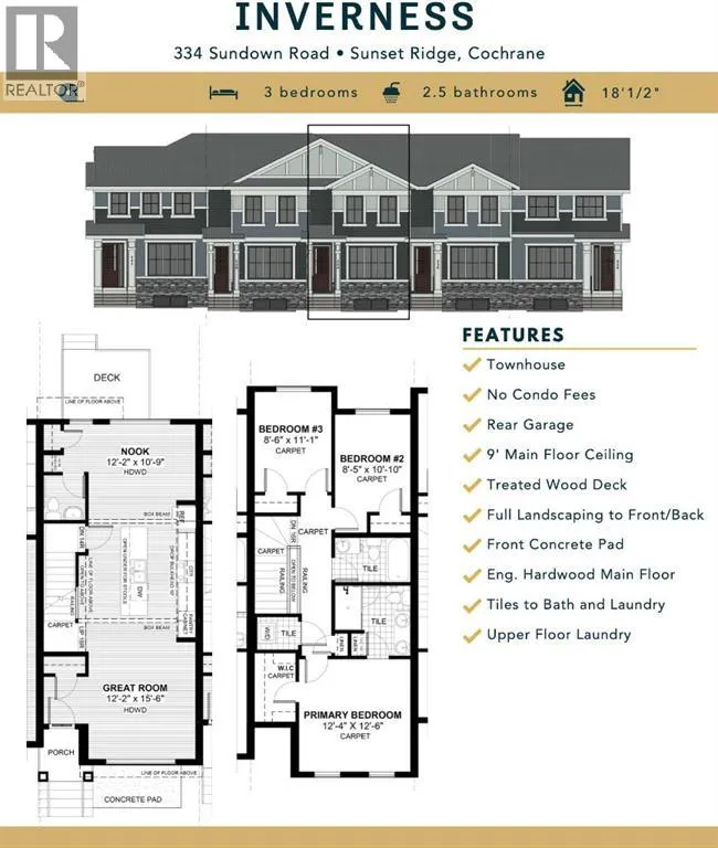 Excellent Value in Sunset Ridge || Introducing the Inverness by Douglas Homes Master Builder â a beautifully designed west-facing townhouse offering 3 bedrooms, 2.5 bathrooms, a full basement, and a rear detached garage. With no condo fees and complete front-and-back landscaping, this home blends modern comfort with practical, low-maintenance living. Step inside and youâre welcomed by an open, airy main floor with 9-foot ceilings and abundant natural light. The layout creates a comfortable flow from the living room to the dining nook, leading into an L-shaped kitchen with a window overlooking the east-facing backyard â a thoughtful touch that adds both light and function. Premium finishes include engineered hardwood floors, quartz countertops, and stainless-steel appliances. Upstairs, the spacious primary suite features a walk-in closet and private ensuite, with two additional bedrooms and a convenient upper-floor laundry. Outside, youâll find a treated wood deck, front concrete pad, and a fully landscaped, fenced yard ready to enjoy. All this in a sought-after community close to schools, pathways, and mountain views â move-in ready in around 90 days. Key Highlights | Townhouse | No Condo Fees | Rear Garage | Full Landscaping (Front & Back) | 9' Ceilings | Quartz Counters | Engineered Hardwood on Main | Upper Floor Laundry | Treated Wood Deck | Front Concrete Pad. *** Please note: Landscaping and yard completion are seasonal items and subject to weather conditions. (id:27476)