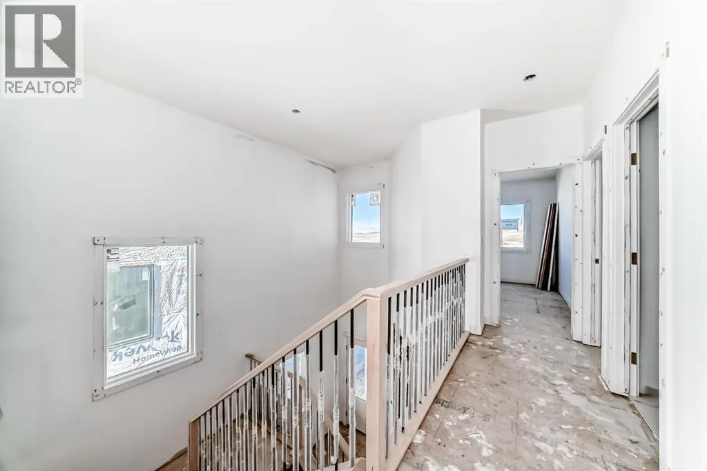 Discover the Yale, by Paragon Homes. This stunning 1922 sq ft home with double attached garage stands on top of the desirable West Hawk community, and has an abundance of natural light that fills every space and 9ft ceilings throughout. Step inside to a bright foyer with engineered hardwood flooring, large windows and an open to above staircase. The walkthrough mudroom with built-in storage connects seamlessly from the garage into the pantry, perfect for staying organized. The large kitchen is a chefâs dream, finished with stainless steel appliances, quartz countertops, a generous island, and custom cabinetry. A large main floor office with feature walls offers the perfect workspace/playroom/den. The cozy living room with electric fireplace, and dining area with leading to the deck and backyard, with ample space for outdoor gatherings and endless backyard possibilities. Upstairs, youâll find two generously sized bedrooms, a family bathroom, laundry room with convenient built in storage, and the primary retreat featuring a vaulted ceiling, a luxurious 5 piece ensuite with a soaker tub, and a fantastic walk-in closet with custom built-ins. The additional side entrance adds extra convenience for future developments or separate living spaces. This home combines modern updates with classic charm in a coveted neighborhood. Donât miss your chance to make this remarkable property your new home! Easily head West to the mountains and East to Calgary, this home is located close to schools and education facilities, and a wide variety of amenities. Just a short drive and you can enjoy the many restaurants, green spaces and river walking paths. This home combines modern updates with classic charm in a coveted neighborhood. Donât miss your chance to make this remarkable property your new home, book your showing today! (id:27476)