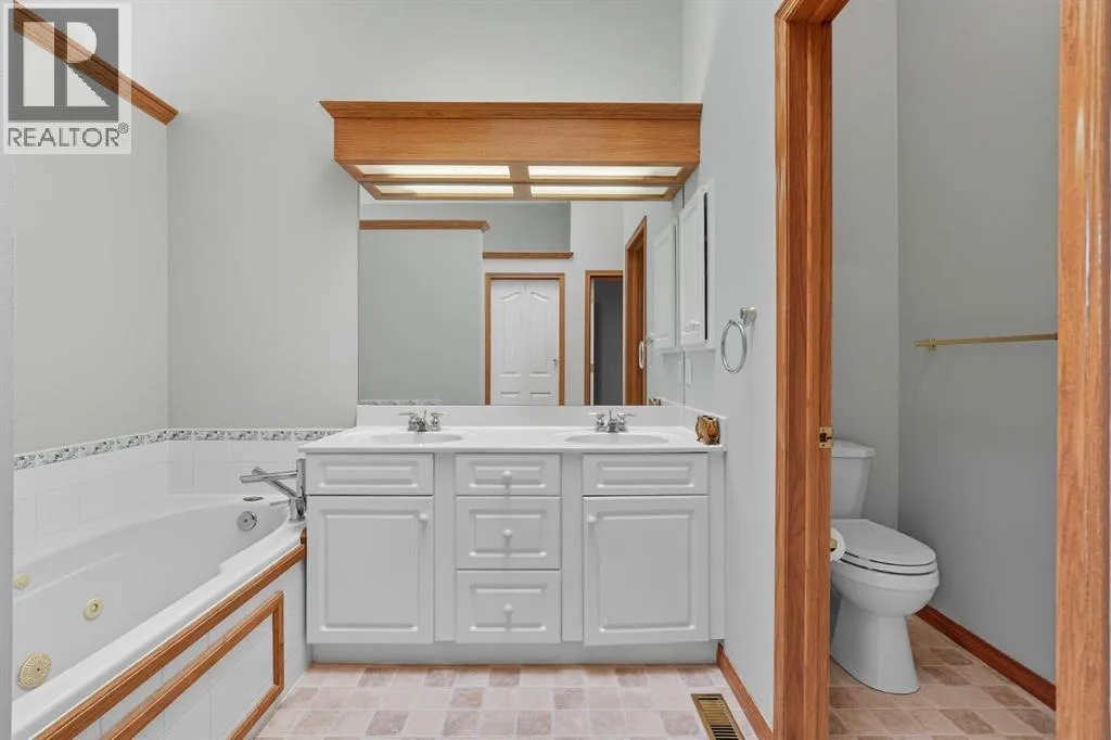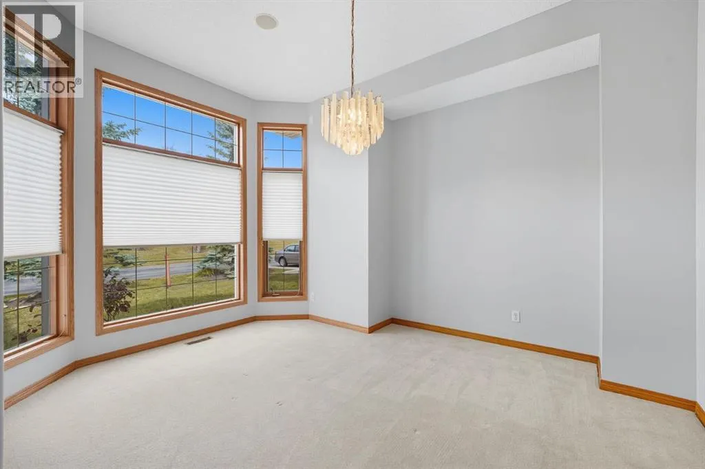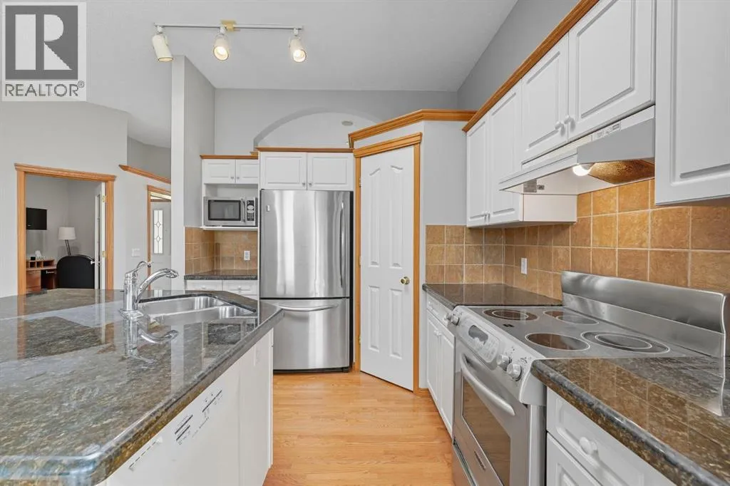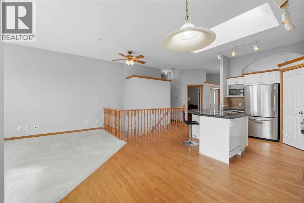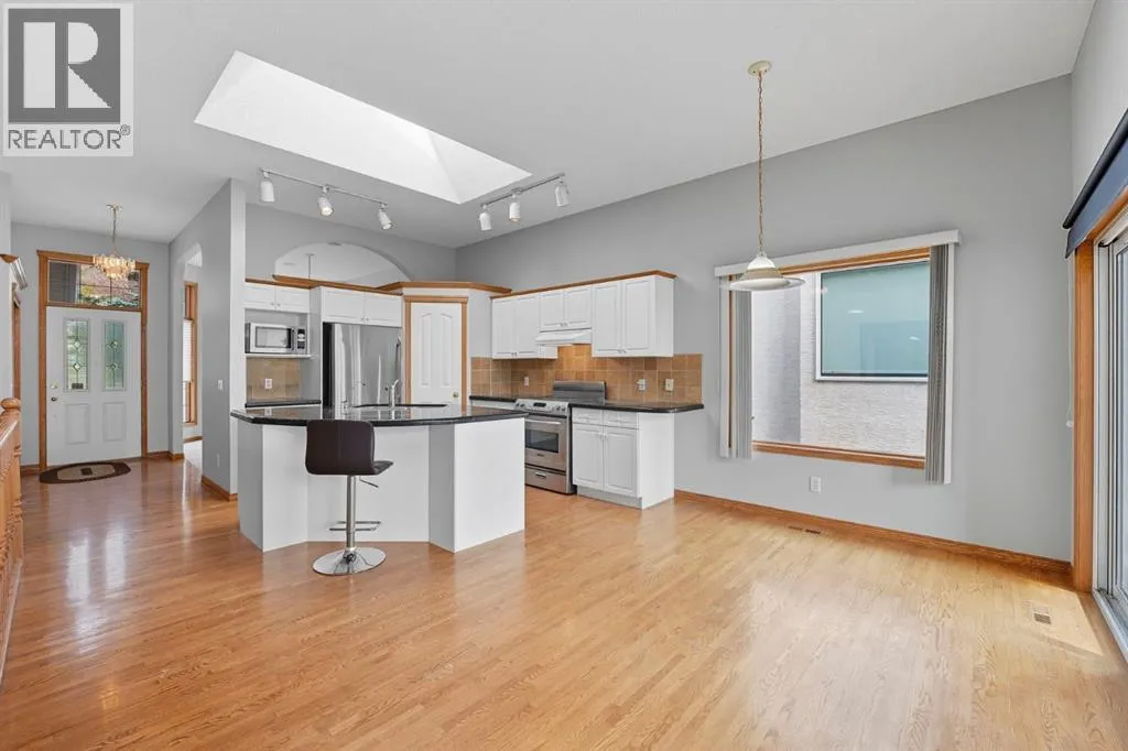 Experience the ultimate in comfort, elegance, and low-maintenance living in this beautifully updated walk-out bungalow villa with over 2,300 square feet of impeccably finished space. Perfectly positioned in the prestigious community of Gleneagles, this remarkable home captures breathtaking views of the fairways and the Bow Valley below. From the moment you arrive, you'll appreciate the exceptional curb appeal, mature landscaping and the peaceful setting that defines this sought-after enclave. Step inside and be greeted by soaring 10-foot ceilings, sun drenched interiors, and bright open-concept design that seamlessly blends sophistication with warmth. Expansive windows and well-placed skylights ill the home with natural light, creating an inviting atmosphere from every angle. The rich hardwood floors, stylish finishes, and freshly repainted interior highlight the quality craftmanship throughout. The heart of the home is the gourmet kitchen - beautifully equipped with elegant cabinetry , quality stainless steel appliances, granite countertops, and spacious work area ideal for entertaining or everyday living. The adjoining dining and living areas offer the perfect settings for intimate dinners or lively gatherings, complete with panoramic views and access to the upper newly replaced Duradek - a prime spot for relaxing evenings and vivid sunsets over the valley. The luxurious primary retreat provides a serene escape, featuring a generous walk-in closet and a spa-inspired ensuite with soaker tub, separate shower, and dual sinks. The main floor also includes a versatile office or flex room that adapts easily to your lifestyle - ideal for working at home or pursuing personal projects. The walk-out lower level is equally impressive, offering an expansive open layout with large windows that flood the space with natural light. this level includes a comfortable family room with a cozy gas fireplace, a guest suite with full bathroom, and additional flex space perfect for a hom e gym, hobby room, or an additional bedroom. Step outside to the covered patio where you can unwind and take in the peaceful surroundings and tranquil valley views. Every detail of this home is designed for comfort and convenience. the double attached garage provides secure parking and extra storage, while the professionally maintained landscaping ensures you can enjoy a worry-free lifestyle, with its combination of location, layout and finishes, this villa perfectly balances the ease of condominium-style living with the feel of a private single-family home. Minutes from Cochrane's charming downtown, scenic pathways, natural reserves, and all amenities - and only a short drive to Calgary - this property offers the best of both worlds. whether you're seeking a lock-and-leave lifestyle or or a peaceful forever home, exceptional value, design and an unbeatable setting in one of Cochrane's most desirable communities!!! (id:27476)