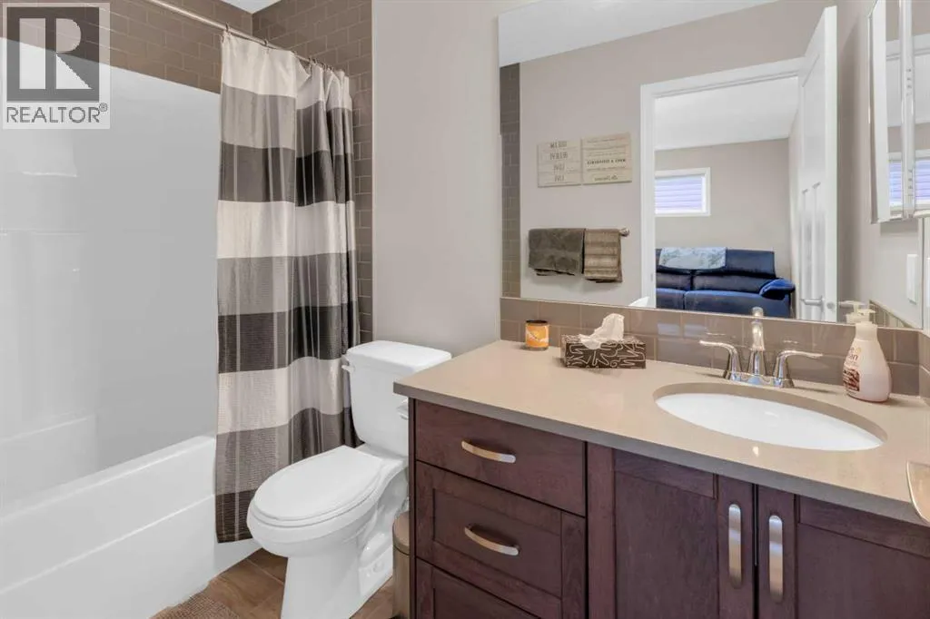 Discover this beautiful, well-maintained home located on a large lot in the highly desirable community of Fireside in Cochrane. Built by Brookfield Residential and occupied by original owner, this property combines thoughtful design, functional space, and modern comforts. The main floor features a flexible front entry space perfect for a home office or study alongside a cozy living room. The heart of the home is the open-concept kitchen, complete with an oversized island, ideal for entertaining. The dining area flows seamlessly into the great room, which features a gas fireplace for those cozy evenings. Upstairs, you'll love the large bonus room, perfect for a family movie night, or play area. The spacious primary suite includes a 4-piece ensuite with a walk-in shower, and the upper level also offers two additional bedrooms and a full bathroom. The basement is roughed-in and ready for your personal touchâdevelop it into a rec room or home gym. Outside, enjoy a low-maintenance backyard with ample space to build your dream garage. (id:27476)