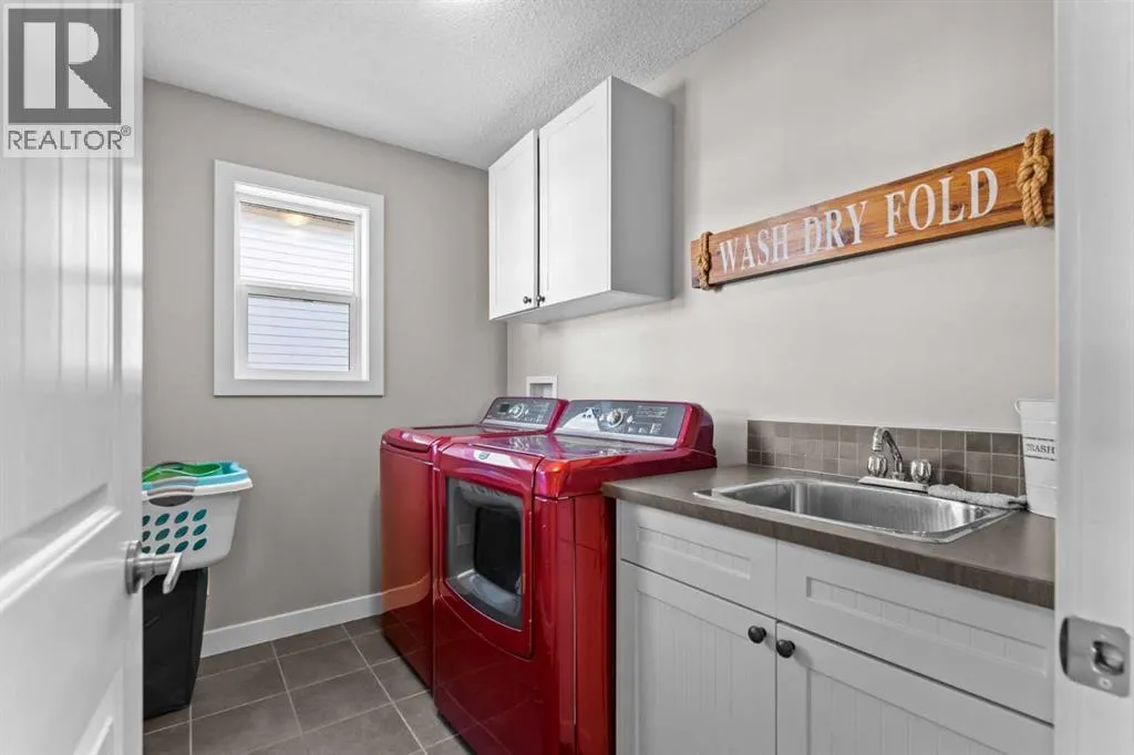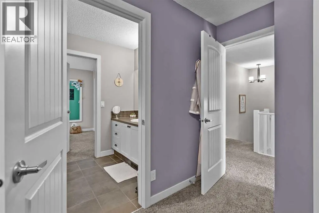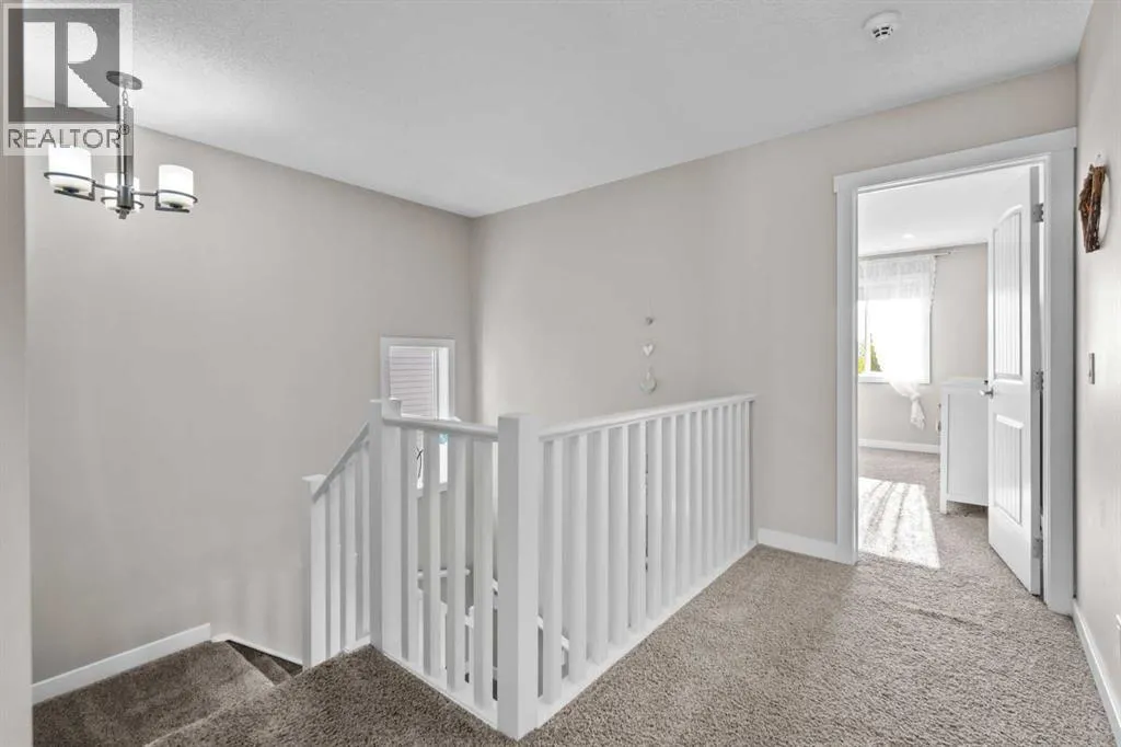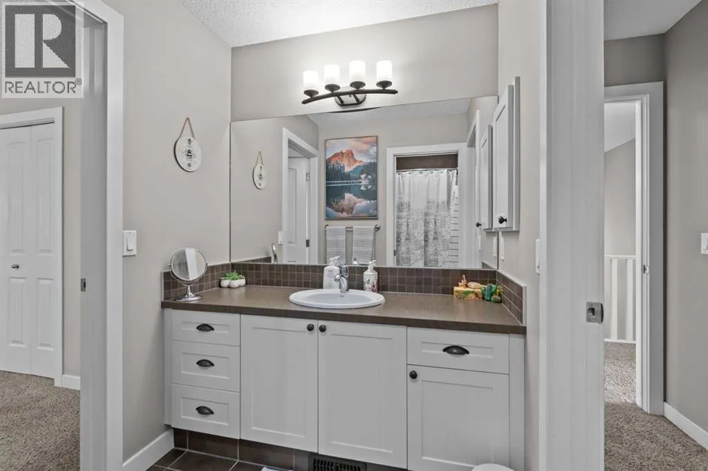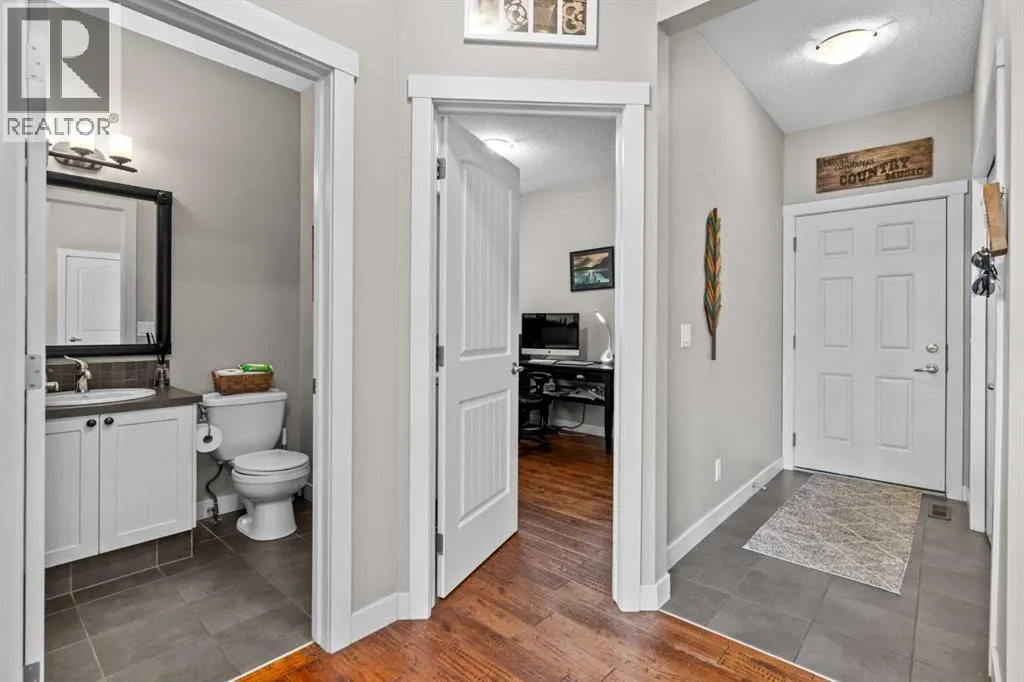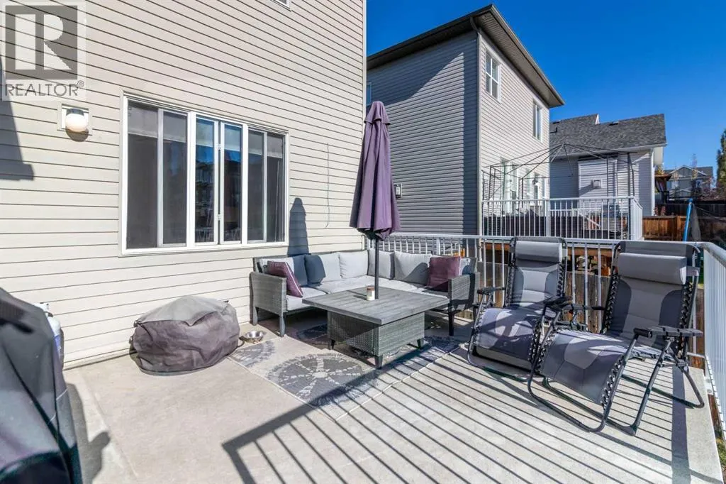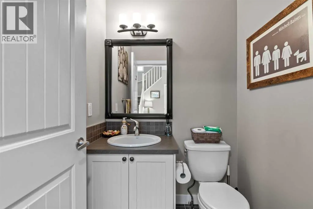 Located in Heritage Hills on Cochraneâs west side, this gorgeous two-story home is beautifully decorated and has an amazing family vibe with a touch of elegance. Walking in, whether you come in through the garage or front door, you will be welcomed home by lots of room to kick off your shoes on the easy to maintain ceramic tile entryways. Both entries also include ample closet space for all your outerwear. The main floor is open concept, with scraped hardwood floors throughout, and a super functional kitchen with quartz countertops with a big center island. The kitchen is truly the heart of this home, with a raised bar for hosting your guests, tons of cupboards for storage and counter space for whipping up some snacks and a huge pantry. The dining nook is bright and open with large sunny south facing windows, and the great room includes a cozy gas fireplace which makes it the perfect place to relax. There is also easy access to the deck and backyard, for hosting in the beautiful outdoors. The main floor also includes a dedicated office and a half bath on the main floor and access to the double attached garage.Upstairs, the sunny south facing master retreat will impress with mountain views. The ensuite has everything you need, with double basins, a big soaker tub, water closet, separate shower and walk in closet. Two more good sized bedrooms on this floor share a convenient Jack-and-Jill bathroom. The upstairs also has an amazing laundry room, appointed with a dedicated laundry sink and storage cupboards. Finally, this floor includes a spacious north facing bonus room with its own built in study station. This space would make an excellent library or TV watching space, for those who need a little break away from the main floor action.Downstairs is fully developed and includes a large rec room, a 3 piece bathroom, large bedroom with at grade egress windows. A great space for the family to grow! There is a large storage room with shelving to help keep you organi zed and a utility room.After enjoying all this home has to offer, step out to the beautiful south facing back deck and fully fenced landscaped backyard. Check out the unique deck storage solution for keeping all the outdoor toys. The houses are offset around you, giving you the feeling of space; perfect for enjoying those sunny Cochrane days. Come and see all that Cochrane and this beautiful home has to offer. (id:27476)
