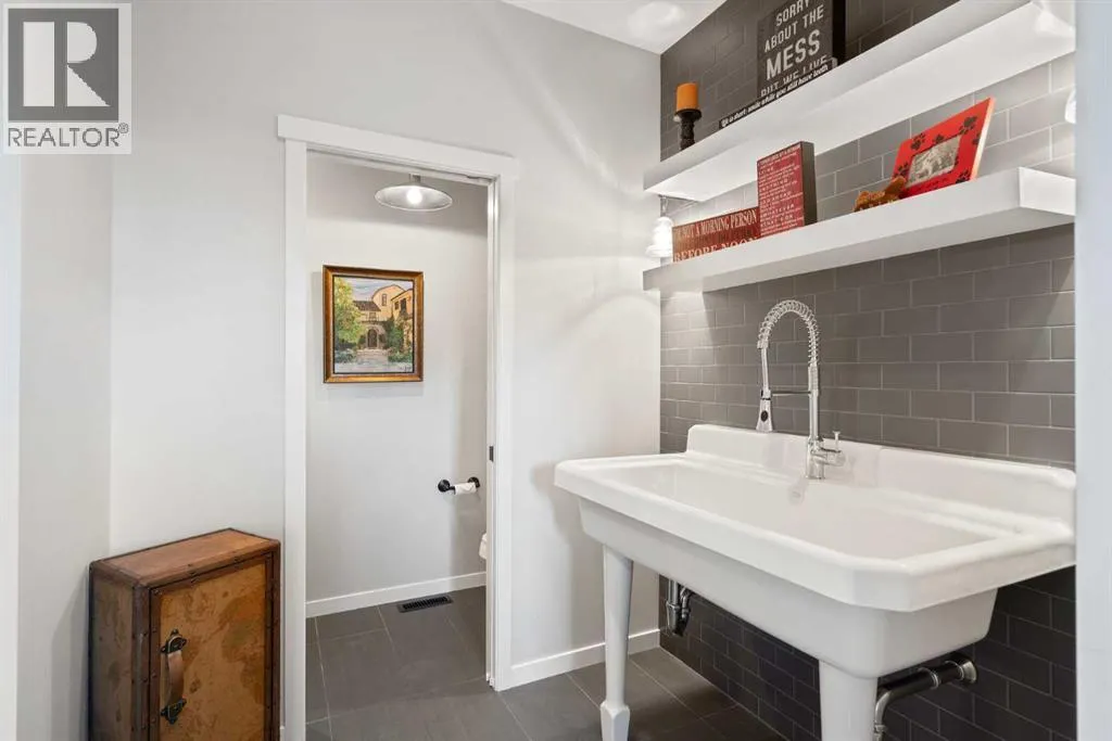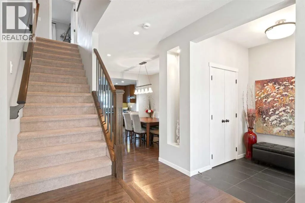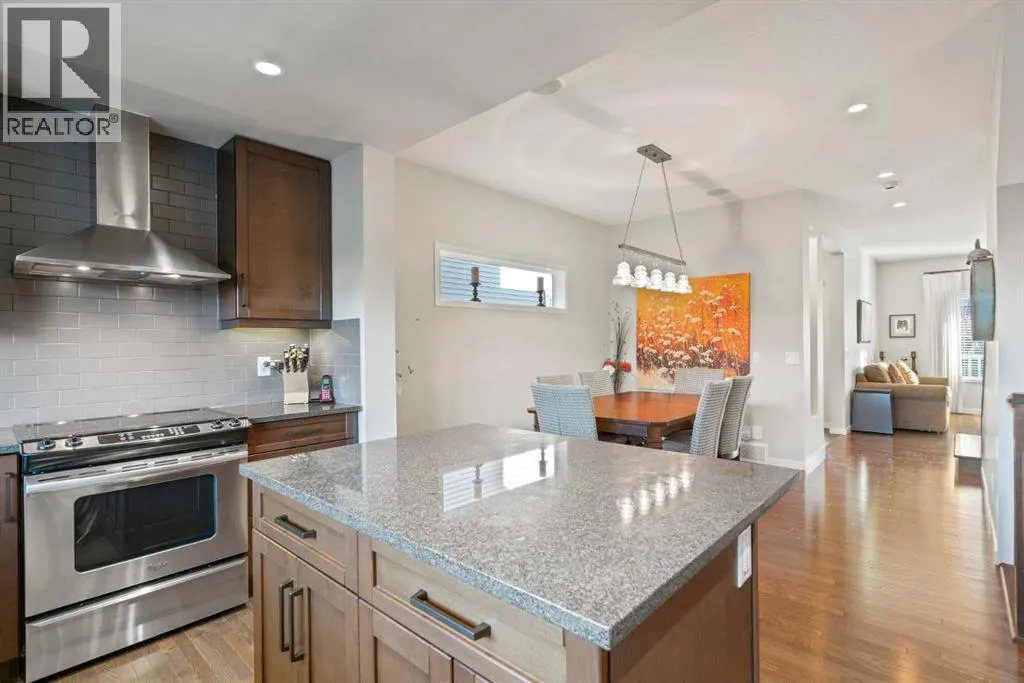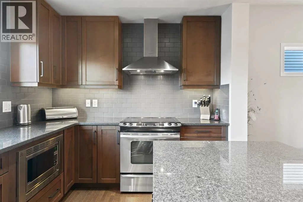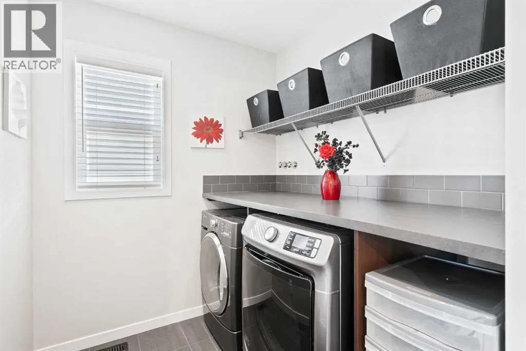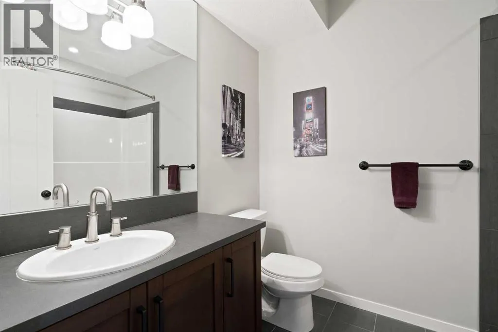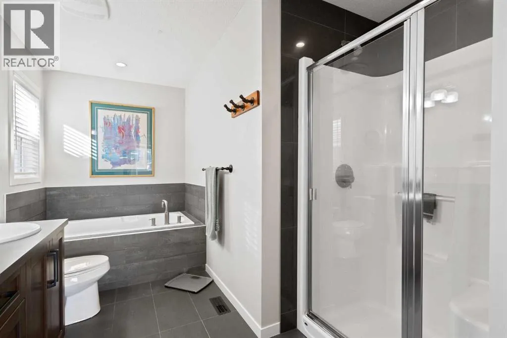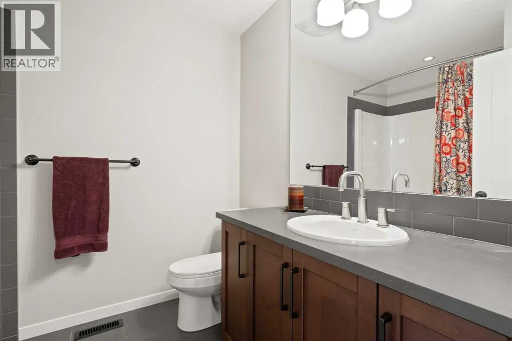 Welcome to the Ultimate Upgraded Former Ovation Showhome!Step into the award-winning Ovation-designed home â a fully developed, move-in-ready masterpiece featuring four bedrooms, three and a half bathrooms, and an oversized double garage. This exceptional property showcases every imaginable upgrade and design enhancement youâd expect from a former showhome.From the moment you enter, youâll notice the superior craftsmanship, dark-stained oak floors, and oversized windows that flood the open-concept living space with natural light. The inviting great room centers around a beautiful fireplace and flows seamlessly into the spacious dining area and chef-inspired kitchen.The kitchen is a true showstopper, featuring dark-stained wood cabinetry, quartz countertops, and a classic subway tile backsplash that extends to the ceiling, with a lowered bulkhead for a sleek, finished look. Additional upgrades include under-cabinet and over-sink lighting with dedicated wall switches, a built-in water filtration system, and new stainless steel appliancesâincluding a microwave, faucet, and recently replaced dishwasher.Upstairs, the luxurious primary suite features vaulted ceilings, a walk-in closet, and a five-piece ensuite with designer finishes. Two additional bedrooms, a four-piece main bathroom, and an upstairs laundry room with upper shelving, a convenient folding counter, and a new dryer complete this level.The fully finished lower level offers an impressive entertainment space with in-ceiling surround sound throughout the whole house, a three-piece bathroom, and a large bedroom that comfortably fits a king-sized bed, two oversized end tables, and more. An alcove areaâcurrently set up as a music roomâand a generous walk-in closet make this space both functional and inviting.Additional features include:Year-round comfort with a large A/C unitIn-wall vacuum systemWater and salt saver soft water systemLarge freezer inclusionOversized paved back lane leading to the 24' x 24' double garage with two rafter tire racks for extra storageWelcome to Cochrane!Nestled in the highly sought-after community of Riversong, this home offers the perfect blend of comfort, style, and location. Enjoy being within walking distance of schools, parks, athletic fields, and picturesque pathways along the Bow River.Whether youâre a growing family, a busy household, or simply looking to settle into your forever home, this stunning Ovation-designed property delivers unmatched quality, thoughtful upgrades, and timeless appeal.Make this extraordinary home yours today â book your private viewing before itâs gone! Open house november 22 10 am - 4 pm ( estate sale 10am-2pm) (id:27476)