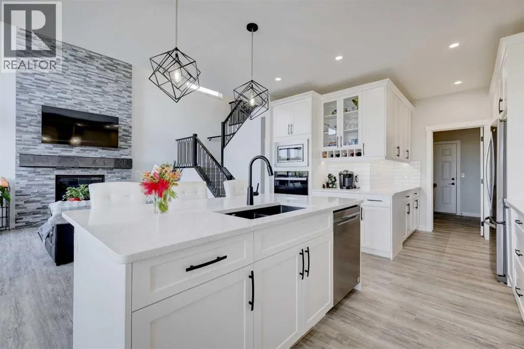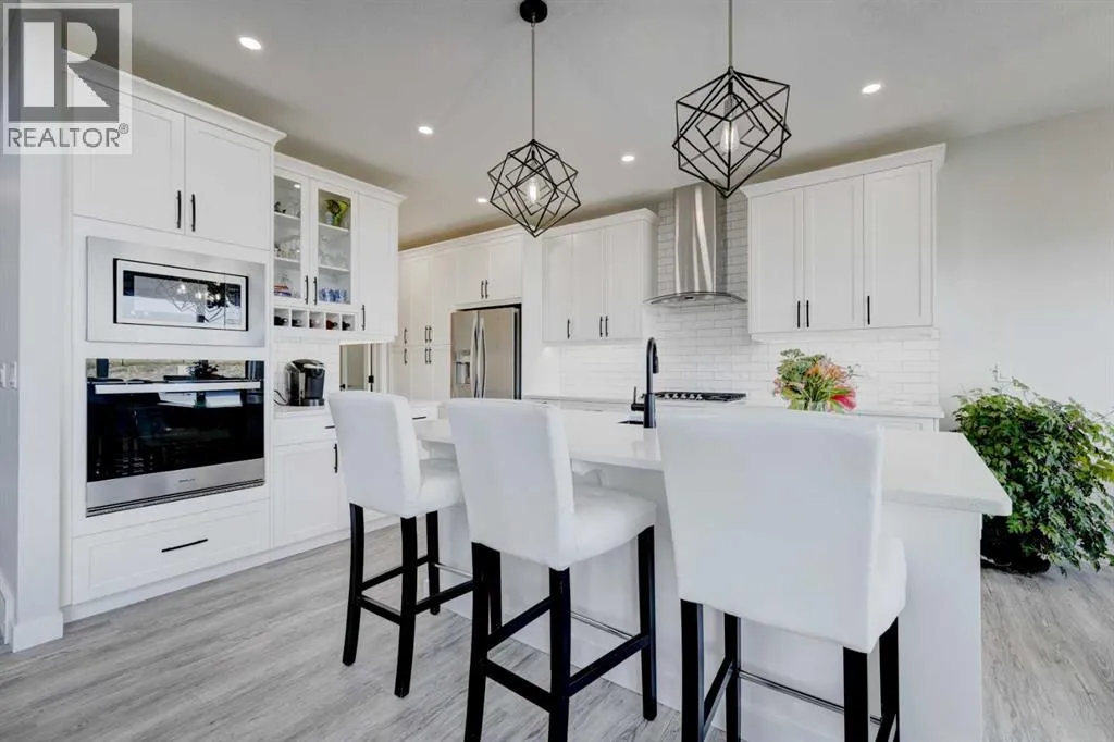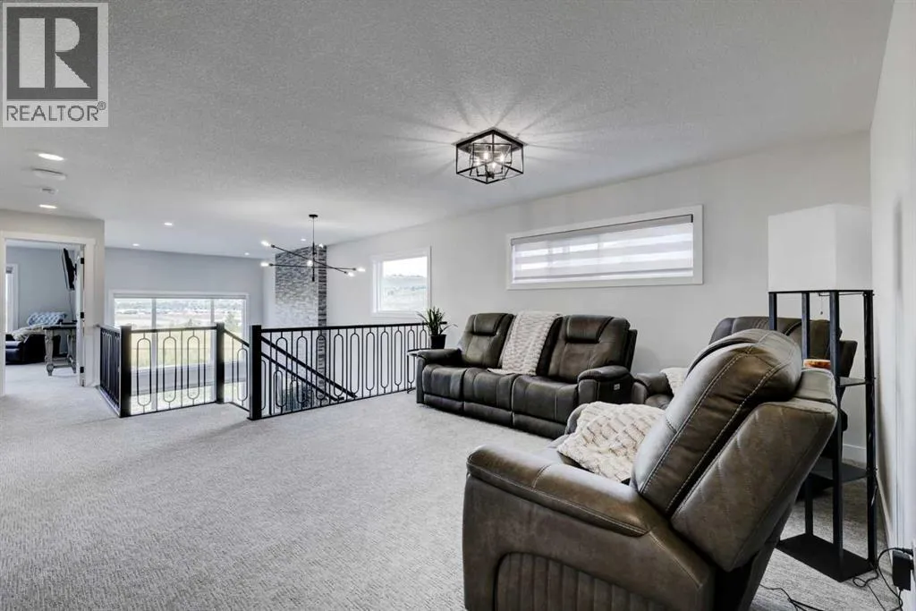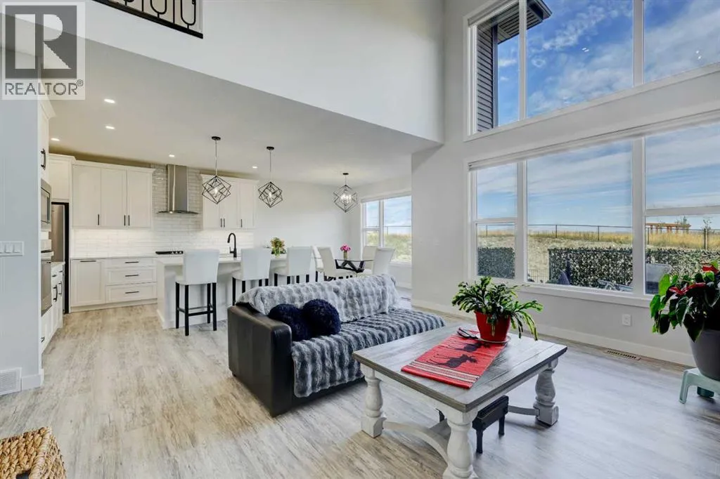 OPEN HOUSEs Saturday & Sunday November 8th and 9th (12-2pm)....This custom-built two-storey Trico home sits on 0.21 acres and features impressive mountain, river, town, and Cochrane Big Hill views. Natural light fills the open kitchen, sitting, and living areas thanks to a wall of windows facing north west. The main level includes a spacious mudroom and pantry, leading to a fully finished heated double garage with workspace. Upstairs offers a large family/bonus room, laundry room, a primary bedroom with views, a five-piece ensuite, walk-in closet, two additional bedrooms, and another five-piece bath. The lower level is ready for your personal touch. Outside is designed to be more than a backyard oasis; it's a space where families gather. Contact us today to schedule a viewing and discover what this home in Precedence has to offer. (id:27476)