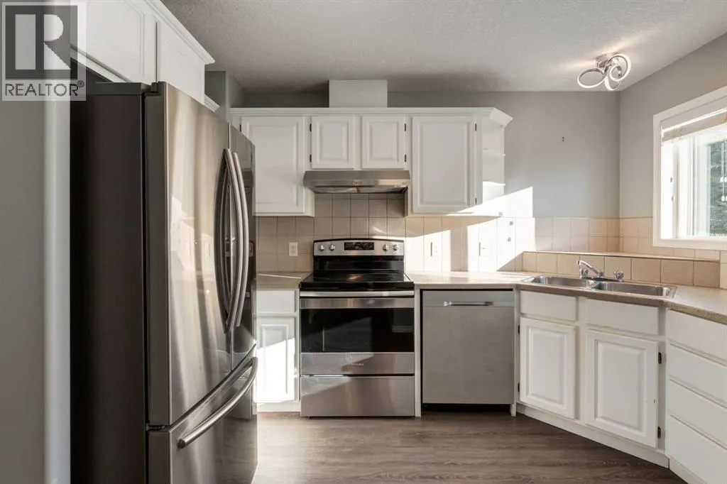Low condo fees of just $125.00! Rare Opportunity in Cochrane â Spacious 4-Bedroom Condo with Attached Garage!Welcome to this extremely well-built and beautifully maintained condo in the heart of Cochrane. With three bedrooms upstairs and a fully developed lower level, this home offers space, style, and functionality for families, downsizers, or investors alike.The upper level features three generous bedrooms, including a spacious primary suite complete with a private 4-piece ensuite and a large walk-in closet. An additional full bathroom serves the other bedrooms, making it ideal for a growing family or hosting guests.The main floor boasts a bright and open layout, perfect for modern living. The kitchen, dining, and living areas flow seamlessly together, featuring luxury vinyl plank flooring, knockdown ceilings, and plenty of natural light. The kitchen opens onto a deckâperfect for summer BBQs and enjoying the beautifully kept backyard. Youâll also appreciate the main floor laundry with a full-size washer and dryer, a convenient half-bath, and access to the single attached garage with extra storage space.Downstairs, youâll find a large family or recreation room plus an oversized bedroom, offering tons of flexibility for guests, teens, or a home office. The hot water tank was replaced just over a year ago, giving you peace of mind.These units rarely come to marketâdonât miss your chance to own a well-appointed, move-in-ready home in one of Cochraneâs most desirable condo communities! Easy access to bike/ walking paths. (id:27476)
