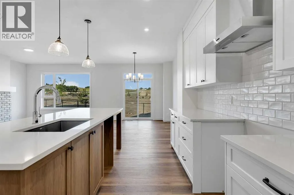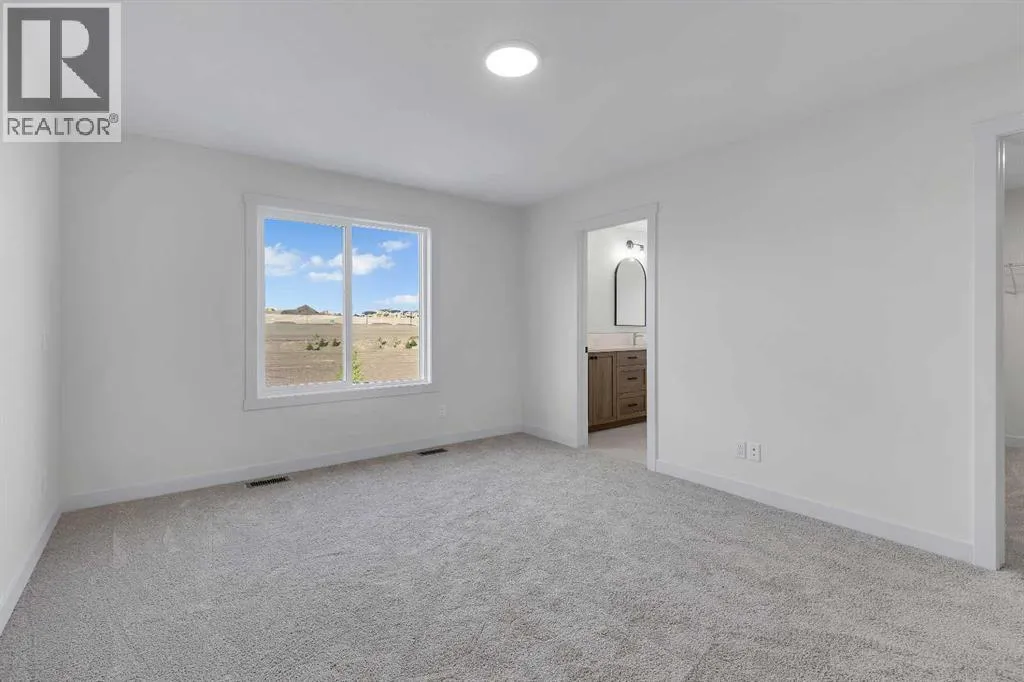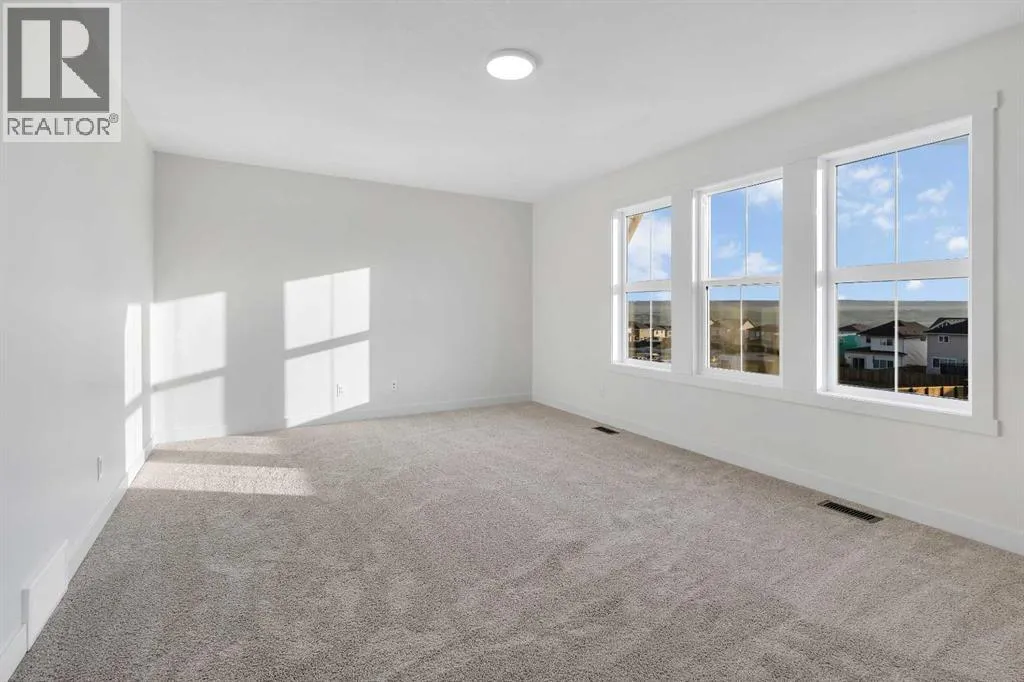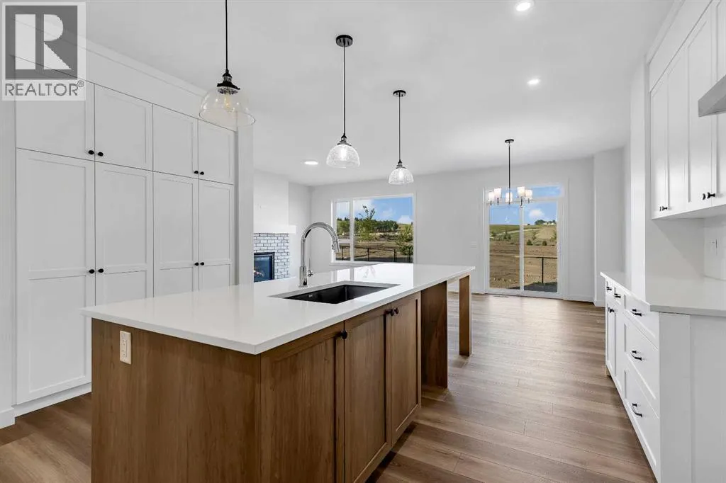 Brand new home built by Homes by Fifty Six, located in Heritage Hills of Cochrane. This home is loaded with upgrades & features which include: quartz, LVP, Tile, stone facing gas Fireplace, oversized garage, 9' ceilings main & lower, walk through pantry, lots of windows allowing loads of natural lighting, open to below foyer & much more. The main floor features a den, 2c bath, spacious great room with fireplace & a good size kitchen that offers an island, walk through pantry & breakfast nook that has access to the yard that over looks the greenspace. The upper floor features a large bonus room, 4pc bath, laundry & 3 good size bedrooms. The primary bedroom offers a walk in closet & full ensuite. The lower level is awaiting your ideas. Backing onto future school site/green space. Heritage Hills offers a blend of small-town charm and modern amenities. Residents enjoy access to parks, green spaces, and local conveniences such as Mountain Ridge Plaza, which hosts services like a pharmacy, fitness center, and dining options. The community is served by designated schools including Glenbow Elementary, Mitford School, and Bow Valley High School. With its tranquil atmosphere and proximity to both Calgary and outdoor recreational areas, Heritage Hills is an attractive choice for families and individuals seeking a balanced lifestyle. Fifty6 is devoted to the craft of legendary home-building. With a heritage dating back to 1956, building on the past and bringing a modern perspective to homebuilding and design. Click on link to view 3D walkthrough. (id:27476)