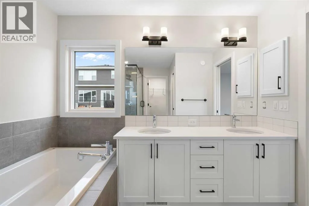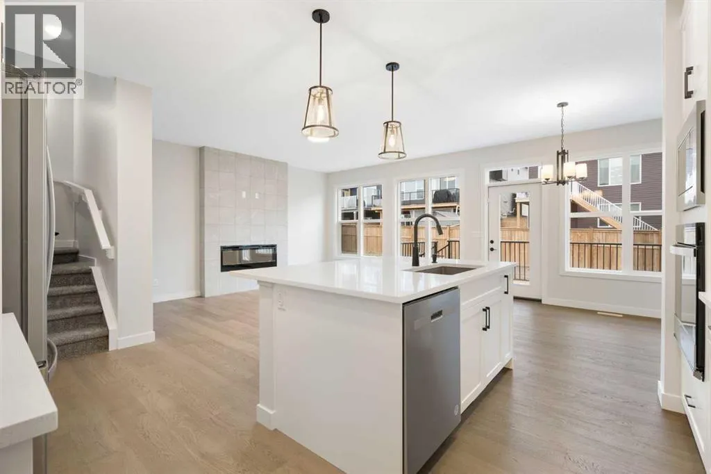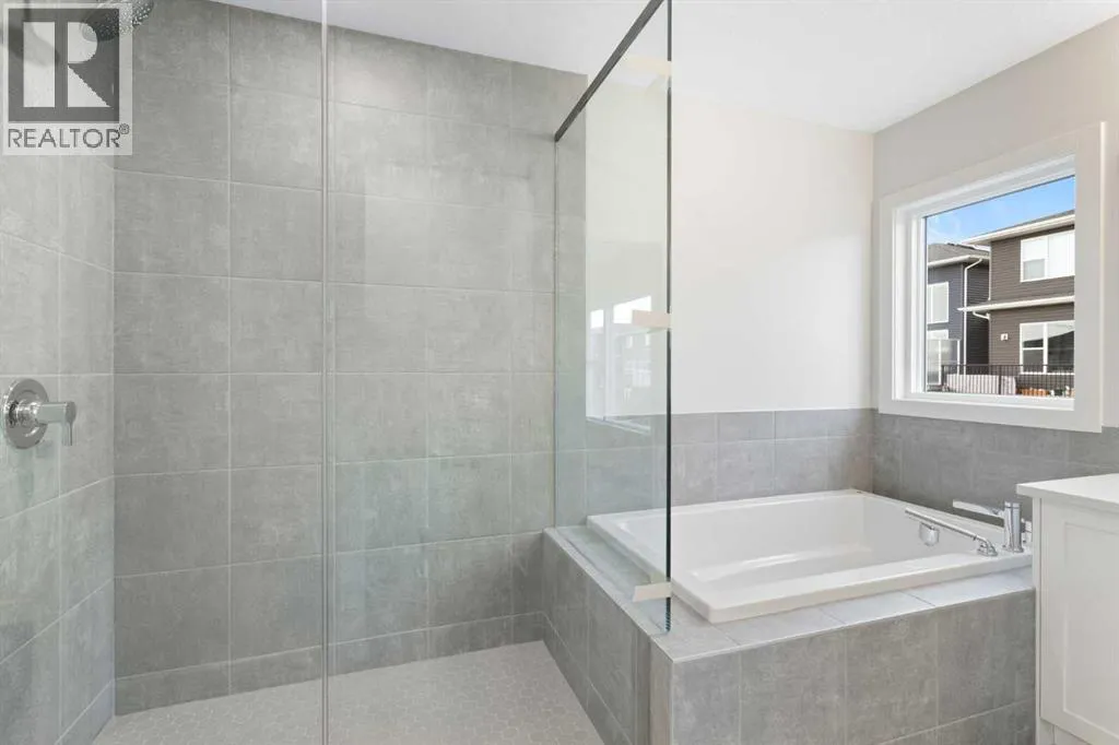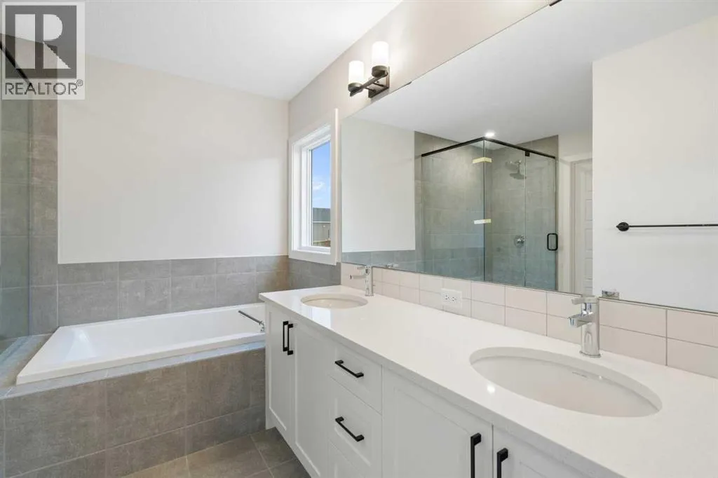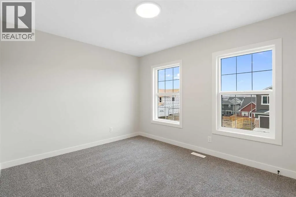 Welcome to your new home in the boutique community of Rivercrest in Cochrane! Built by Trico Homes, this stunning 3 bedroom home is bright, welcoming and has the perfect layout. Upon entering, you'll find a spacious main floor flex room, ideal for a home office, study, or kids playroom. Continuing into the main area, youâre greeted by the large full wall of windows to enjoy amazing sun from your south facing backyard. Your open concept kitchen is complete with a built-in stainless steel appliance package including a gas range and additional drawers, hello storage! Enjoy cooking with ample counter space, a large pantry and spacious island; perfect for your kids to enjoy breakfast or entertain. An inviting electric fireplace adds warmth and coziness to your living room making it perfect for relaxing evenings. Heading upstairs you are greeted by a spacious & centrally located bonus room perfect for family movie nights or kids play space. Your primary suite is spacious & complete with a luxurious ensuite including double sinks, drawers for storage, upgraded tile shower and soaker tub. Conveniently situated just off your ensuite, is your spacious walk-in closet. Enjoy a full upstairs laundry room complete with additional storage and space to hang your clothes. The kids wing of the home is complete with two well appointed spare rooms with walk-in closets and a full spare bath with quartz countertops. In the basement you will find a separate side entrance, 9â foundation, 3-piece bathroom rough-in and 2 basement windows perfect for your future development. Outside, enjoy the full day sun on your back deck and spacious 38â wide future yard. Rivercrest is a quiet boutique community with stunning mountain views and a future school site. Enjoy getting to know your neighbours, on a quiet street and convenient access to everything Cochrane has to offer! Living here means convenient access to Calgary, minutes from Spray Lakes Recreation Centre & downtown Cochrane! You have everyt hing Cochrane has to offer right at your doorstep. Donât miss the opportunity to move into your new home before Christmas! *Interior photos are representative to a previous build, please get in touch for more details on the interior finishes of this home.* (id:27476)