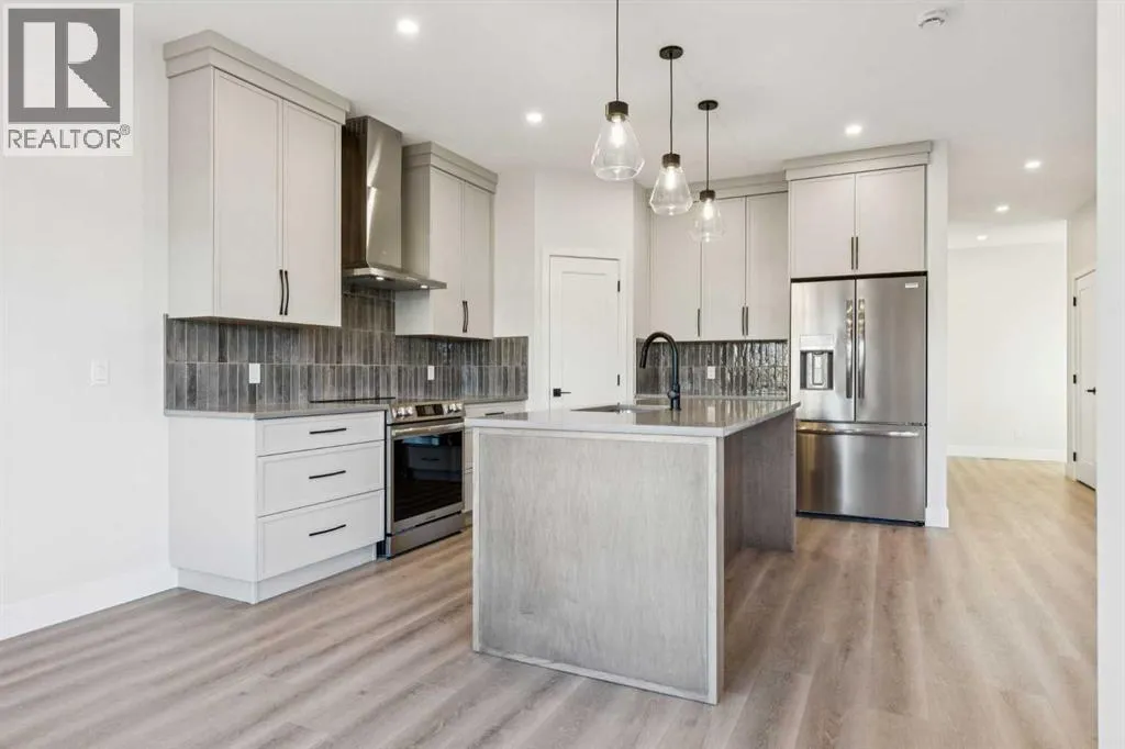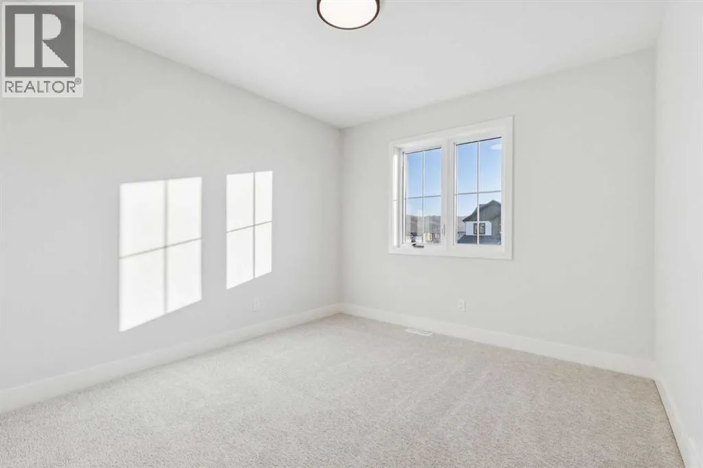 UNBEATABLE VALUE! Discover exceptional craftsmanship and modern living in this stunning 1,820 sq. ft. two-storey home located in the sought-after community of Greystone, Cochrane. Built by R Space, a trusted local builder known for superior quality and attention to detail, this home offers timeless design and enduring value. Located on a quiet street and backing onto a lovely greenspace/ walking path this property is truly one that cant be missed. The striking monotone exterior is fresh and modern sure to set this this home apart from all the neighbors. Step inside to find an open-concept main floor filled with natural light, featuring 9-foot ceilings, solid wood cabinetry, and beautiful, high-end appliances. Every detail has been thoughtfully selected â from the solid wood railings and built-in closets to the 200-amp electrical service and solar power rough-in for future efficiency. Upstairs, enjoy a spacious central bonus room with warm wood accents and elegant pass-through natural light. The primary suite is a true retreat, complete with a large walk-in closet and a luxurious tiled shower. Two additional bedrooms provide generous space for family or guests. The oversized, fully insulated and drywalled garage offers extra height and storage potential â perfect for all your vehicles and gear. Located just steps from the Bow River, walking paths, parks, playgrounds, pickleball courts, shopping, and the recreation center, Greystone offers the best of community living right at your doorstep. This brand-new home comes with a Certified New Home Warranty for your peace of mind and is ready for immediate possession. Come experience this exceptional home and vibrant community for yourself â book your private tour today! (id:27476)