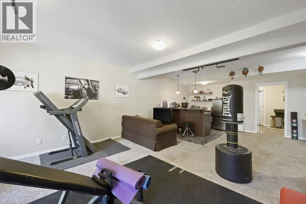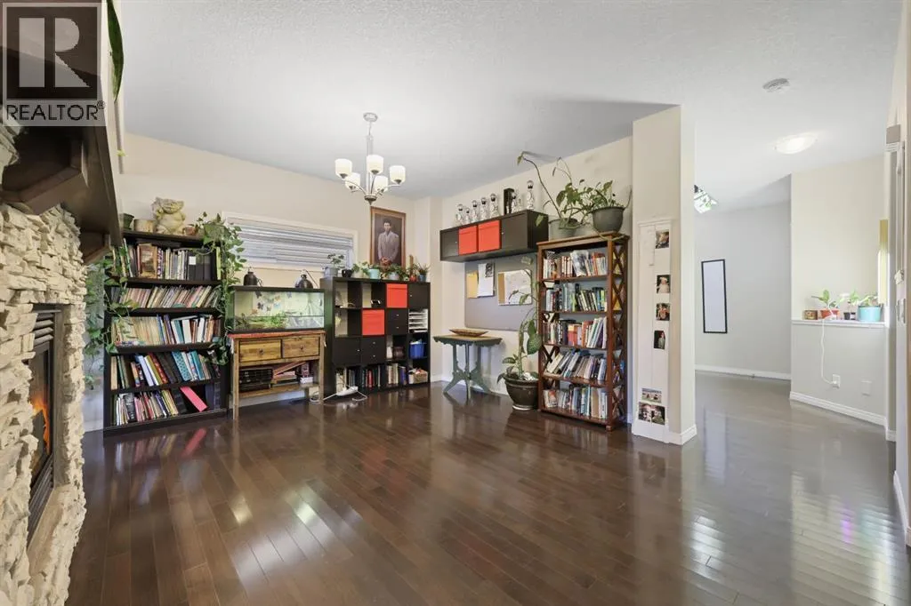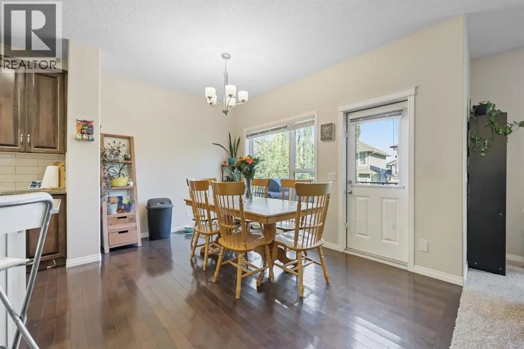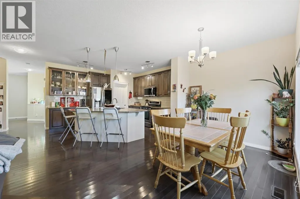 This executive two story walkout home has 3 bedrooms, laundry, and a family room on the upper level with large windows to let in lots of natural light. The main floor features an open concept layout with a kitchen hosting granite countertops, a walk though pantry a spacious living room and a formal dining room, all enhanced by a double sided gas fireplace framed in esquisite stonework. A deck adjacent to the kitchen suitable for an outdoor Catio, includes a gas BBQ hook up. The kitchen is equipped with a gas stove refrigerator featuring a water/ice dispenser with an illuminated front door, and a newly installed dishwasher. The basement contains a private illegal suite with its own laundry facilities, private entrance and privacy door from upstairs. The residence is warmed with forced air heating and cools you with AC! It also offers an attached heated double car garage with spacious back entry coat area and a significant storage room in the basement. The lower patio brings some privacy space, and a cozy sitting area Nearby walking path lead to Jumping Pound Creek, and paths to downtown. (id:27476)