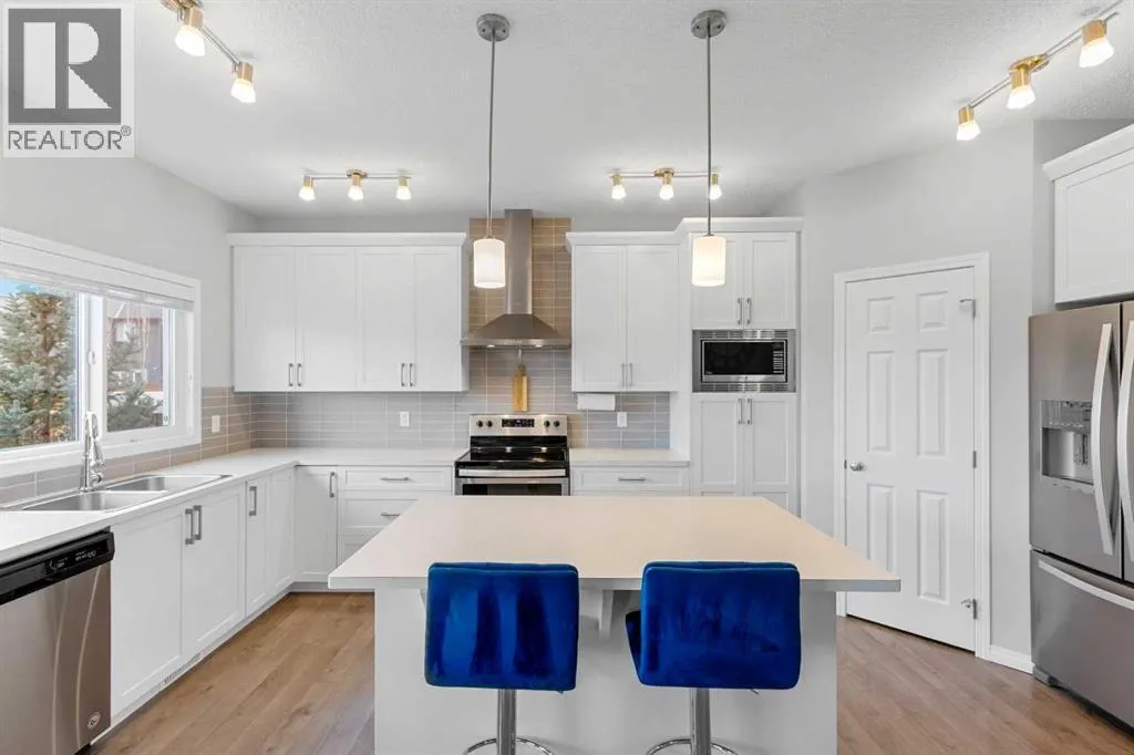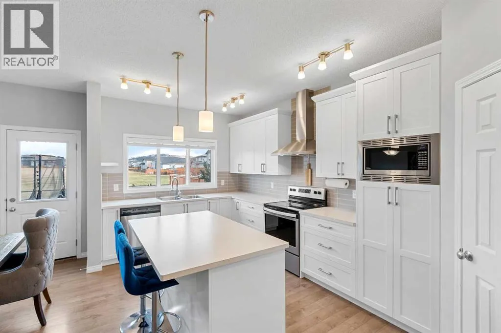 Welcome to this beautiful, fully finished two-storey home, perfectly tucked away in one of Cochraneâs most desirable neighbourhoods and BACKING ONTO A PEACEFUL GREENSPACE. From the moment you walk in, you will feel the warmth and comfort this home offers. The spacious front entry flows into a bright, open living room with a cozy gas fireplace, the perfect spot to unwind after a long day. The layout is open and functional, with a modern kitchen featuring clean finishes, plenty of counter space, and a dining area filled with natural light and gorgeous views of the greenspace behind. From here, you can head out to the backyard, a great space with room for the kids to play, summer BBQs, and relaxing evenings spent outdoors on the deck. Upstairs, you will find two generous bedrooms, a beautiful primary suite with a walk-in closet and spa-like ensuite, plus a bonus room thatâs perfect for movie nights or a play area. Convenient upstairs laundry keeps everything within easy reach. The fully finished basement adds even more space, with a cozy family room, another bedroom, a full bath, and plenty of storage. The attached garage has lots of room for vehicles and extra storage, plus a handy side-door access to the yard. This home truly checks all the boxes, modern, family-friendly, and in a location that backs onto a greenspace. Come see for yourself why life in Cochrane feels just right. Book your private showing today, you will fall in love with this home! (id:27476)