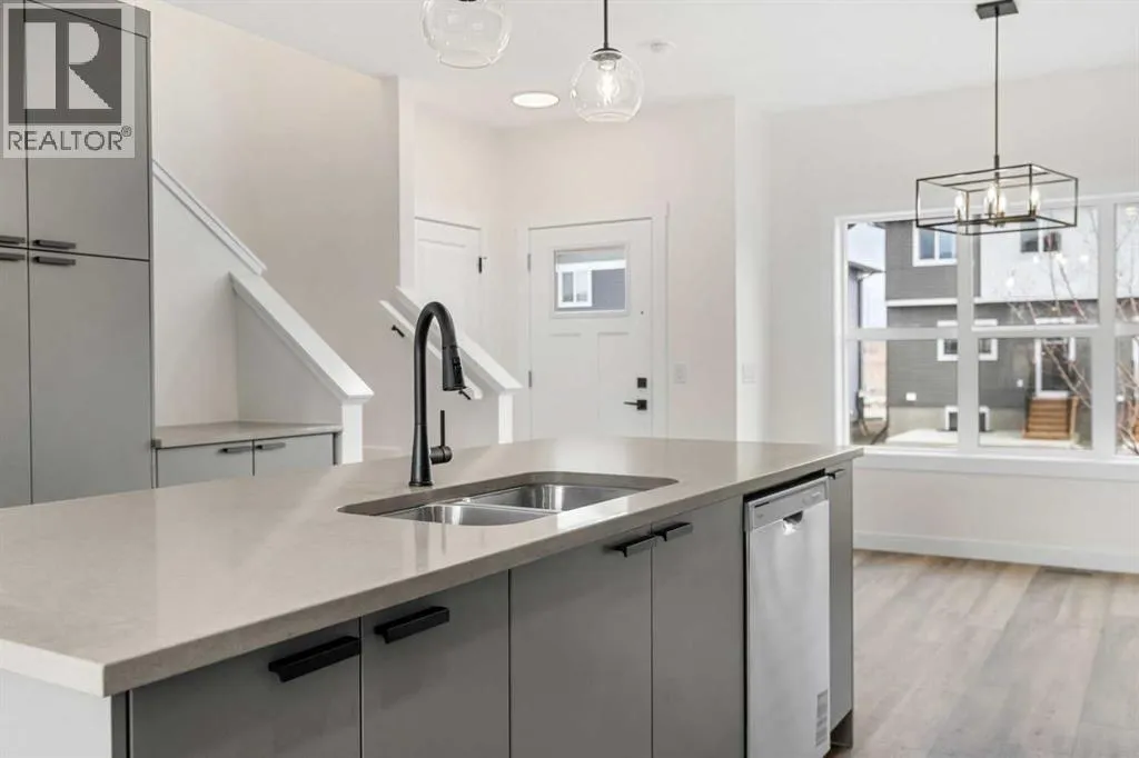 Welcome to the NEWLY BUILT #1206, 525 RIVER HEIGHTS DRIVE, a beautiful townhome that includes a NEW HOME WARRANTY and could offer a GST REBATE FOR QUALIFIED BUYERS. Enjoy a LARGE FENCED BACKYARD backing WEST that provides the feel of a single-family home. Step inside to a bright, airy main floor featuring a MODERN OPEN-CONCEPT LAYOUT that is both stylish and functional. At the heart of the home is a SLEEK CONTEMPORARY KITCHEN with QUARTZ COUNTERTOPS, MATTE BLACK HARDWARE, WHIRLPOOL STAINLESS STEEL APPLIANCES, SOFT-CLOSE CABINETRY, and a CENTRAL ISLAND WITH SEATING, ideal for casual dining or entertaining. The kitchen flows seamlessly into the dining and living areas, where LARGE WINDOWS and LUXURY VINYL PLANK FLOORING create a bright and inviting atmosphere. A POWDER ROOM and a DEDICATED MUDROOM off the back entrance provide added convenience and organization for daily living. Upstairs, the SPACIOUS PRIMARY BEDROOM includes a WALK-IN CLOSET and a PRIVATE 3-PIECE ENSUITE. Two additional bedrooms offer flexible space for children, guests, or a home office. A FULL 4-PIECE BATHROOM and a CENTRALLY LOCATED LAUNDRY AREA make busy routines easier and more efficient. The UNFINISHED BASEMENT provides exciting potential for future development, additional storage, or a customized space that fits your lifestyle. Designed with comfort and sustainability in mind, the home includes DUAL-PANE WINDOWS, a HIGH-EFFICIENCY HVAC SYSTEM, and an HRV UNIT for consistent comfort and performance year-round. Outside, you can relax on your PRIVATE REAR PATIO or enjoy a quiet morning on the COVERED FRONT PORCH. Two ASSIGNED PARKING STALLS add convenience, and with LANDSCAPING AND SNOW REMOVAL INCLUDED, this property offers truly LOW-MAINTENANCE LIVING. Located in the well-established community of RIVERSONG, you are just minutes from SCHOOLS, SCENIC WALKING PATHS, PARKS, CO-OP and the SPRAY LAKE SAWMILLS FAMILY SPORTS CENTRE. QUICK ACCESS TO HIGHWAY 1 and 22 makes it easy to reach CALGARY or esc ape to the MOUNTAINS for a weekend getaway. With QUALITY FINISHES, a SMART LAYOUT, and a VIBRANT NEIGHBORHOOD, this home is designed for modern, comfortable living. CONTACT to view the home TODAY as this home is MOVE IN READY! The FREESTONE SHOWHOME AT 525 RIVER HEIGHTS DRIVE is open on WEEKENDS from 12 â 5pm! (id:27476)