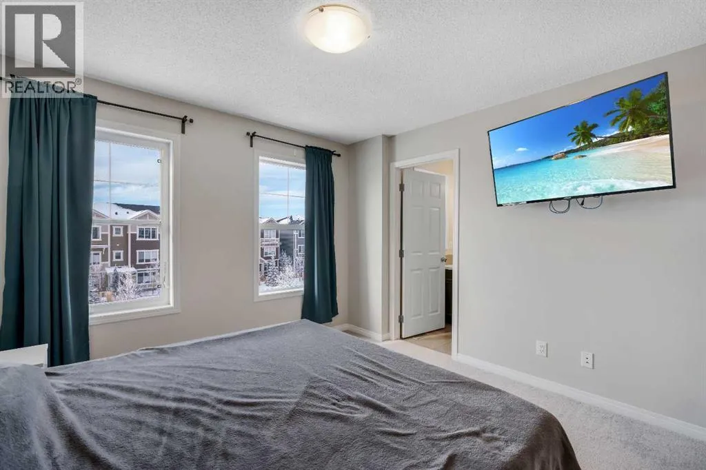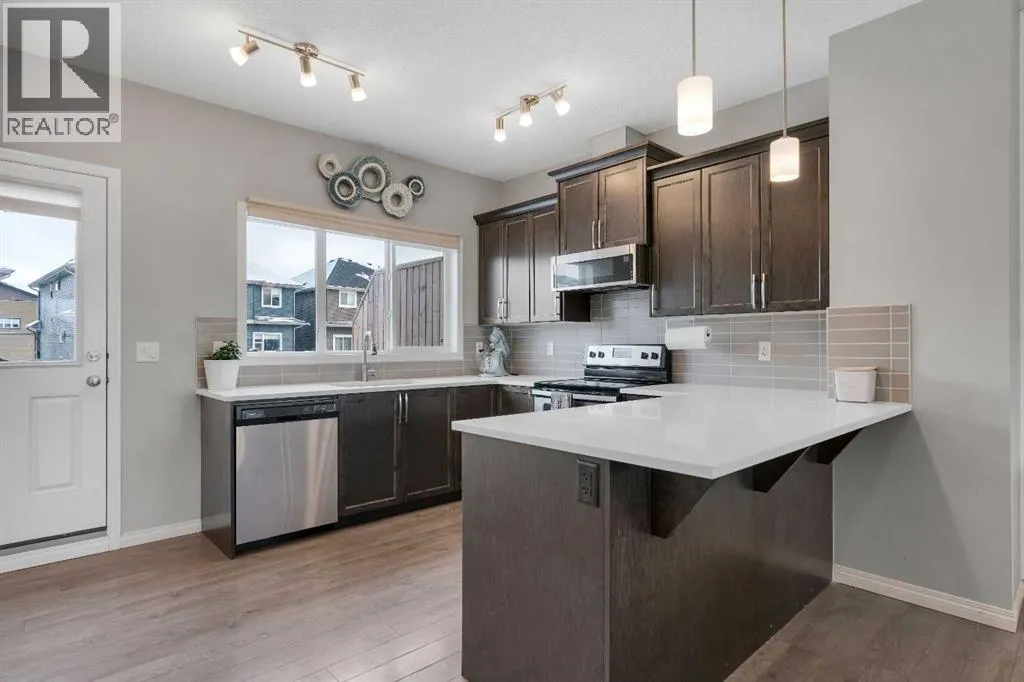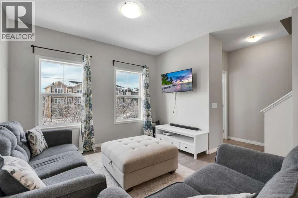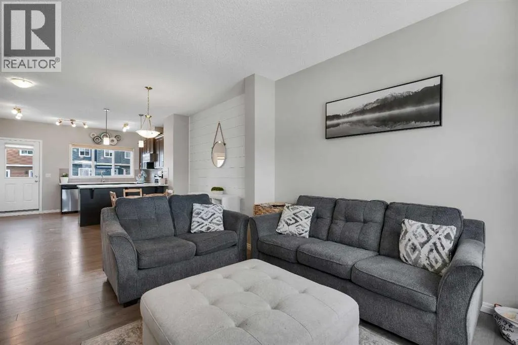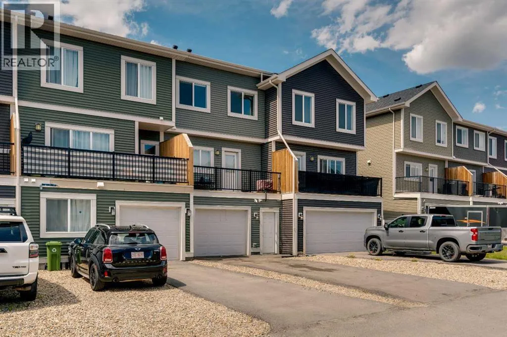 NO CONDO FEES | ATTACHED GARAGE | 4 BEDROOM TOWNHOME - Welcome Home! To your new west-facing townhouse featuring 4 bedrooms, 2.5 bathrooms, and 1,325 sq ft of expertly designed living space nestled in the sought-after community of Sunset Ridge. Offering modern living at its finest, this property is thoughtfully equipped with Central A/C, a single attached garage with 220v power, and an extended driveway that accommodates two additional vehicles. This townhouse boasts both elegance and functionality. Located within a master-planned neighbourhood, it offers unparalleled access to top-tier amenities, including Schools, scenic ravines, parks, and playgroundsâall just a short walk away. Step inside to notice the open-concept layout, soaring ceilings, and an abundance of natural light pouring in through large windows that illuminate the spacious living and kitchen areas. Rich laminate floors seamlessly flow throughout the main level, while the generously sized living room offers ample space for relaxation and entertainment. A stunning dining feature wall sets the tone for formal meals or casual gatherings. The kitchen boasts plenty of counter space, storage, and an impressive pantry, perfect for both everyday meals and hosting guests. The sleek design includes Shaker-style cabinetry, quartz countertops, a brick-patterned backsplash, and a large kitchen islandâideal for meal prep or casual dining. Pendant lighting and modern finishes complete the chic aesthetic. Step outside to your private balcony, featuring a convenient gas line for effortless BBQs and outdoor enjoyment. The home is ideally situated within walking distance of Rancheview School (K-9), the ravine, parks, and playgrounds. Donât miss out on this fantastic opportunity to own a beautiful home in one of Cochrane's most sought-after communities. Schedule your showing today! (id:27476)