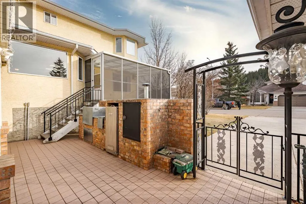 OPEN HOUSE NOV 22, 1-4 A rare offering in the sought-after Town of Cochrane and "In demand" Riverview Community. Lovingly maintained by its original owners this property offers a rare opportunity to purchase a home that has been cared for with exceptional attention over the years. Situated on a quiet cul-de-sac with desirable westerly exposure, it is just a one minute walk to the breath taking "BOW RIVER," providing convenient access to Fishing, Scenic Pathways and Peaceful Nature. For GOLF enthusiasts, "The Cochrane Golf Club" is only steps away, offering an exceptional lifestyle location. Positioned on a large Corner Lot, this provides outstanding parking options-ideal for those needing space for a Trailer, Boat, Multiple Vehicles (9 parking spaces In TOTAL)or Hobby use. Featuring an oversized Heated Single Garage, Plus an Attached Double Garage with In-Floor Heating, creates an excellent flexibility for parking, storage or workshop! Step out back to an exceptional outdoor living retreat designed for year-round enjoyment. The Newer Solarium/Patio is a bright all-season retreat with natural light-perfecto for relaxing, dining, or enjoying garden views throughout the year. Setting the stage as you walk out to the Built in BBQ/Grill, Burner and 2 smoker brick station- Perfect for the grilling Devotee. Wait till you see this impressive Private Gazebo with a Huge Hot Tub, 4 Skylights, sliding doors and earthly cedar walls make this an amazing relaxing escape, ideal for parties and game night. Step inside the front door into a receptive foyer with a stunning high-ceiling accented by a crystal chandelier and an elegant staircase that welcomes you into an open concept living area. The seamless flow connects the Living rm/Dining, Kitchen/Family rm, Laundry/Mud rm creating a cohesive and functional layout perfect for everyday living/entertaining. Cooking will be most pleasurable in the kitchen with plenty of natural light, featuring wood cabinets, granite counter tops, n ewer SS appliances, walk-in pantry, Island and a sun filled breakfast nook to enjoy your meals in, connected to the patio/sunroom. The Contiguous spacious family room offers a gas fireplace with built in cabinetry, a large picture window making it the perfect place to relax and entertain. The upper level boosts 3 spacious bedrms. Retreat to the primary suite with breath taking views of the river, forest and Hills, along with a luxurious 5 piece ensuite and an expansive walk in closet. The walk up basement provides a spacious recreational room with wet bar, 2 bedrooms/flex rooms/den,(whichever suites your needs) ample storage and a 3 piece bath-again perfect for guests or entertaining. Some windows have been replaced. It is evident this home commands attention making it the ultimate package, LOCATION, SIZE, VIEWS, LOT, WEST BACKYARD, THE BOW RIVER AND GOLF plus all the amenities Cochrane has to offer...Schools, Shopping, Dining and Tranquility. This is the place! MAKE THIS HOUSE YOUR HOME !! (id:27476)