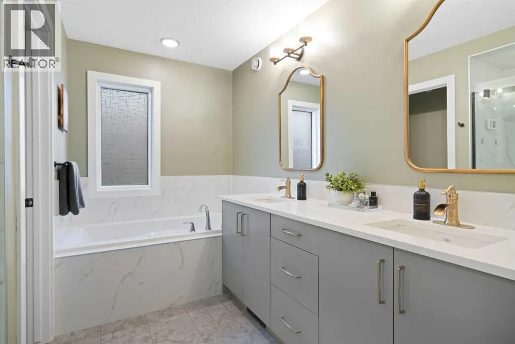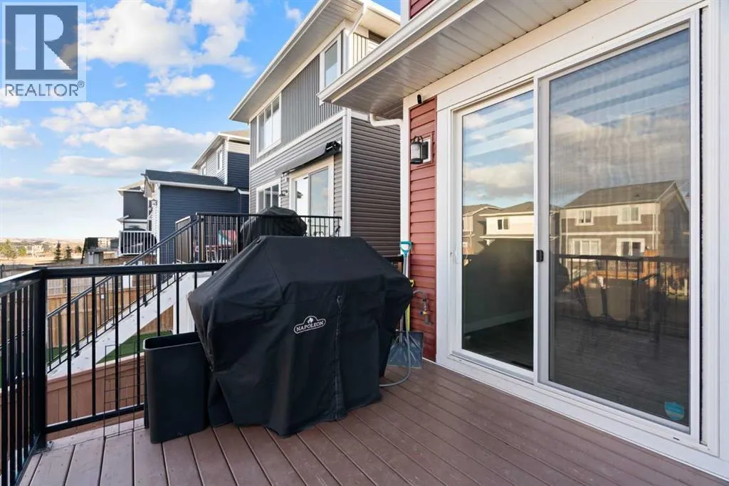 Welcome to this beautifully finished and thoughtfully upgraded Calbridge-built home backing onto a pathway and offering a blend of style, comfort, and functional living across all three levels. From the triple-pane windows to the fully developed sunshine basement, every detail has been selected to enhance everyday life. The main floor features a spacious front entry, 9 ft ceilings, fresh paint, a convenient 2pc bath, and an open-concept layout that is ideal for both family living and entertaining. The kitchen stands out with full-height dark grey/blue cabinetry, quartz countertops, herringbone tile backsplash, a large island, and KitchenAid dark stainless steel appliances including a gas range, and built-in microwave. The walk-in pantry provides exceptional storage with tons of shelving. The bright living room offers a gas fireplace with conduit to keep media wiring hidden and large windows that capture serene views of the backyard and pathway. The dining area comfortably fits a full-size table and leads to the back deck with BBQ gas line, stairs down to an exposed concrete patio, fresh mulch landscaping, storage under the deck, and a built-in cast iron firepit, perfect for relaxing or hosting. Upstairs, brand new carpet leads to a central bonus room with tray ceiling and pot lights. The primary suite feels like a retreat with vaulted ceilings, gimbal potlights, a feature wall, a large walk-in closet, and a 5pc ensuite including comfort-height double vanity with quartz counters, a soaker tub, and a tiled shower with niche. Two secondary bedrooms (one with a walk-in closet), a full 4pc bathroom with quartz countertops, and an upper laundry room with folding shelf complete this level. The fully finished sunshine basement is warm and inviting thanks to double-insulated walls and a dual-zone furnace, and includes a spacious recreation room, large bedroom with walk-in closet, 4pc bath with quartz counters, storage space, sump pump, and rough-in for radon. The double att ached garage is plumbed and ready for utility use, making it ideal for future workshop needs. This is a move-in ready home where thoughtful upgrades, practical design, and location come together, set in a quiet, family-friendly area with direct pathway access right out your back door. (id:27476)