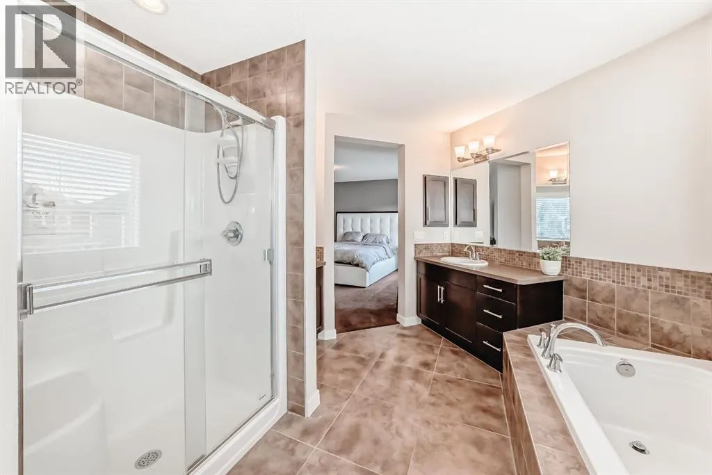 Welcome to 393 River Heights Drive â a warm and inviting Calbridge-built family home that offers space, comfort, and incredible value in one of Cochraneâs most loved neighbourhoods. Thoughtfully designed with family living in mind, this home features a bright, open layout, generous room sizes, and timeless details throughout.Step inside to a cathedral-style entryway with elegant tile flooring, leading into the main floor with 9 ft ceilings and a welcoming great room centered around a gas fireplace with stone surround and mantle. The island kitchen is the heart of the home, featuring granite countertops, stainless steel appliances, a gas stove, and a convenient walk-through pantry that connects to the mudroom and laundry area. A 2-piece bath completes the main level.Upstairs, youâll find a spacious bonus room wired for surround sound, perfect for family movie nights, plus a large office nook that fits a full-sized desk. The second and third bedrooms are bright and roomy, giving everyone their own comfortable space. The primary suite is a true retreat, with a feature wall, space for a king-sized bed, and a luxurious 5-piece ensuite complete with double vanities, a soaker tub, separate shower w/ tile surround, walk-in closet, and linen closet.Downstairs, the finished basement adds extra flexibility with a fourth bedroom, rec rm/media area, office nook, and bathroom rough-in â ideal for guests, hobbies, or future development.Outside, enjoy your Duradeck deck with aluminum railing & gas line, perfect for BBQs and summer evenings. The double attached garage features an 8â door, and is insulated and drywalled for year-round use.While a few minor touch-ups would bring this home to its full shine (such as some cabinetry touch ups and cosmetic updates), theyâve been thoughtfully accounted for in the price â leaving plenty of room to personalize and add your finishing touches.Located near schools, parks, playgrounds, and Cochraneâs beautiful River pathways, this home off ers the perfect balance of space, comfort, and community. Book your viewing today! (id:27476)