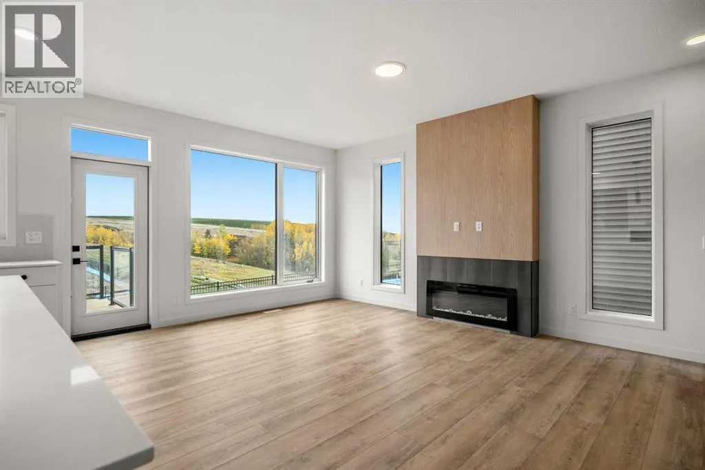 Welcome to this Beautifully Designed Home created for modern family living. The spacious dining area comfortably seats 12 OR MORE PEOPLE, providing the perfect setting for both intimate dinners and large family gatherings. The thoughtfully designed kitchen invites shared meal preparation, turning everyday cooking into an enjoyable experience at the heart of the home.A versatile MAIN-FLOOR DEN offers flexibility and can be easily transformed into a dedicated homework area or a welcoming guest room. Upstairs, two generously sized bedrooms provide quiet retreats ideal for study or relaxation. The expansive PRIMARY BEDROOM serves as a private sanctuary, offering a peaceful escape where self-care takes center stage.This home is filled with impressive details, including sleek HORIZONTAL ALUMINUM RAILINGS WITH CLEAR GLASS, an elegant ELECTRIC FIREPLACE that anchors the living space, SOARING 9FT FOUNDATIONS, and a desirable location BACKING ONTO THE ENVIRONMENTAL RESERVE.Every Cantiro Home is equipped with modern comfort and efficiency in mind, featuring a TANKLESS WATER HEATER, TRIPLE PANE WINDOWS, and SMART HOME FEATURES such as a SMART THERMOSTAT, DOORBELL CAMERA, KEYLESS DOOR LOCK, and WIFI-CONNECTED GARAGE DOOR OPENER.The West Hawk community is thoughtfully designed around 27 ACRES OF SLOPING ENVIRONMENTAL RESERVE, preserving native wildlife habitats while offering residents scenic viewpoints, rest areas, and a network of WALKING TRAILS AND RAVINE CROSSINGS. These natural features are integrated into Bike Cochraneâs exclusive bike network, providing residents with seamless access to the outdoors.Future community enhancements in Phases 2 and 3 include an OFF-LEASH DOG PARK and a PLAYGROUND, both expected to be completed by early fall 2025. Over 50% of the homes in West Hawk are strategically positioned to back onto key amenities such as the Environmental Reserve Ridge, the future dog park in the northeastern corner, and the planned Tot Lot along Heritage Boule vard. A FUTURE Kâ9 SCHOOL SITE will further enhance the family-friendly atmosphere and contribute to the exceptional quality of life for residents. Don't miss your chance to view this beauty today! (id:27476)