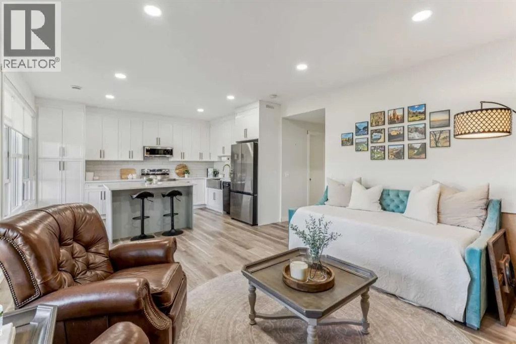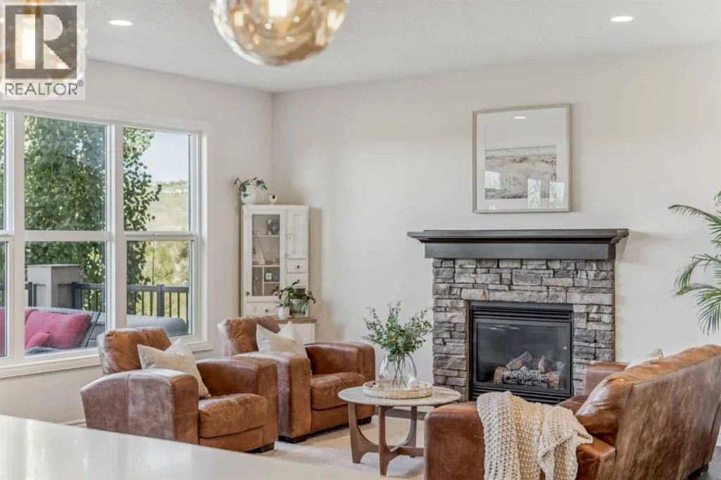 Welcome to your RIVERFRONT RETREAT in the prestigious COMMUNITY of RIVIERA! This former Trico SHOW HOME is perfectly positioned to showcase UNOBSTRUCTED VIEWS of the Bow River, Rocky Mountains, and natural reserve, with NO NEIGHBOURS BEHINDâjust tranquility and nature at your doorstep.From the curb, the EXTRA-WIDE CUSTOM PAVING STONE DRIVEWAY and elegant exterior create a striking first impression. Inside, the grand foyer with OPEN-TO-BELOW CEILINGS, 7 ½â OIL-RUBBED HARDWOOD FLOORS, and FLOOR-TO-CEILING WINDOWS fills the space with natural light while framing the stunning river valley vistas.The chef-inspired kitchen is both stylish and functional, featuring an OVERSIZED ISLAND, QUARTZ COUNTERTOPS, MAPLE CABINETRY with a BUILT-IN WINE RACK, stainless steel appliances, and a GAS COOKTOP. The open living room, anchored by a STONE-SURROUND GAS FIREPLACE, is perfect for entertaining, and the FULL-WIDTH REAR DECK invites you to unwind while taking in the breathtaking scenery.Upstairs, a central BONUS ROOM separates the kidsâ bedrooms from the private PRIMARY BEDROOM, which boasts sweeping views, a spa-like ENSUITE with SOAKER TUB, 10MM TILE & GLASS SHOWER, DUAL VANITIES, and a WALK-THROUGH CLOSET connecting directly to the laundry room with sink and storage.The FULLY FINISHED WALK-OUT BASEMENT offers additional living space with RIVER VIEWS, a KITCHENETTE WITH ISLAND, 9â ceilings, full-height windows, GAS FIREPLACE, bedroom, bathroom, and laundryâideal for extended family, guests, or multi-generational living.Additional highlights include:-Quartz countertops throughout-Custom drapery & upgraded carpets-8â main floor doors & built-in speakers-Dual furnaces & two A/C units for year-round comfort-Double attached garage with 8â doors, extra-high ceiling, LED lighting, and 220V wiringLiving in Riviera offers access to the natural reserve, walking paths, the Bow River, golf, a local farmers market, and a pedestrian bridge to the off-leash dog park.This is a rare opportunity to own a luxury riverside home that perfectly combines style, comfort, and locationâdonât miss your chance to make it yours! (id:27476)