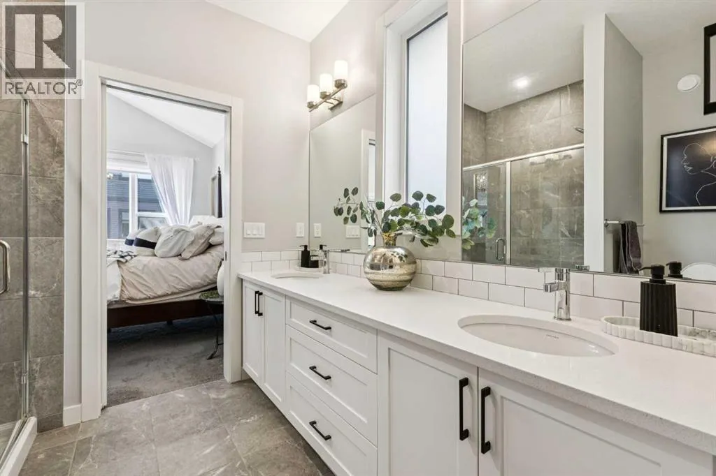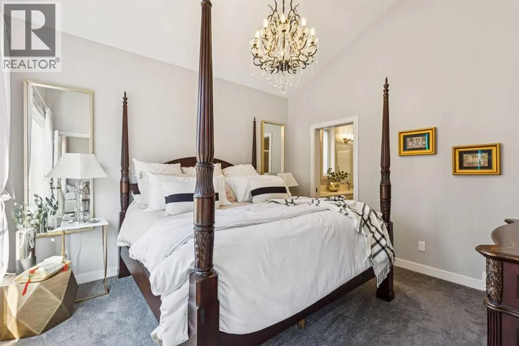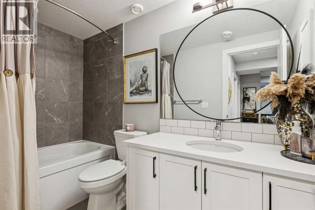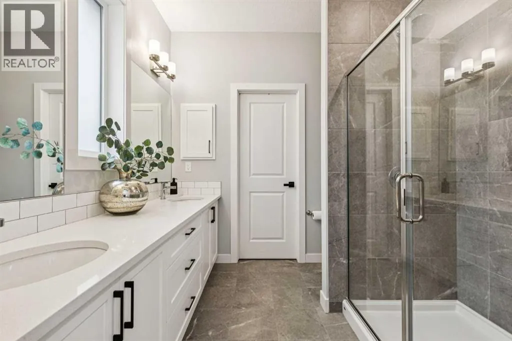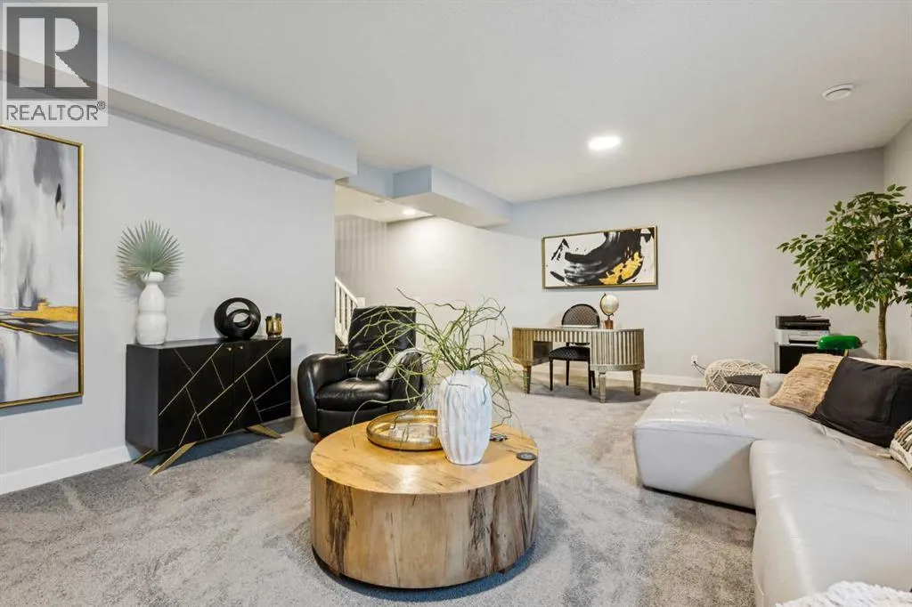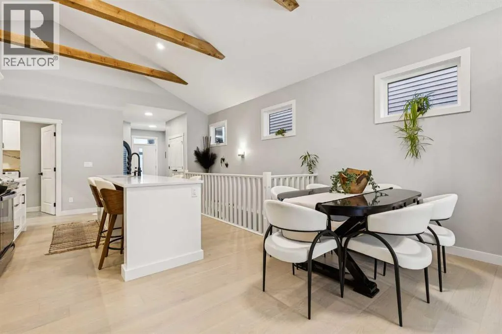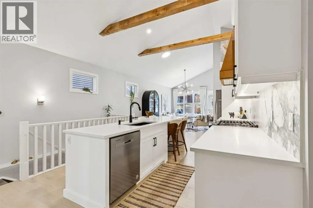 Welcome to this beautifully crafted bungalow that perfectly balances style, comfort, and functionality! Designed with an inviting OPEN-CONCEPT layout, the main floor showcases soaring VAULTED CEILINGS that create a bright and spacious atmosphere. The impressive kitchen features QUARTZ COUNTERTOPS, a statement FEATURE HOOD FAN, updated TILE BACKSPLASH, and plenty of cabinetryâideal for both entertaining and everyday living. The adjoining living room centers around an ELECTRIC FIREPLACE with a striking FEATURE WALL, adding warmth and modern flair.A stylish MAIN FLOOR OFFICE with a BARN DOOR and custom attachment provides the perfect work-from-home setup. The upgraded LAUNDRY ROOM offers added convenience with COUNTERSPACE, SHELVING, and CABINETRY, complemented by UPGRADED TILE. The elegant HALF BATH is thoughtfully finished with a SLATTED ACCENT WALL, QUARTZ COUNTERS, and UPGRADED FIXTURES.The PRIMARY BEDROOM is a true retreat, featuring a generous WALK-IN CLOSET and a spa-inspired ENSUITE complete with DUAL SINKS and a fully TILED SHOWER.Downstairs, the FULLY FINISHED BASEMENT expands your living space with a cozy FAMILY ROOM featuring a FEATURE WALL and DRY BAR, plus TWO ADDITIONAL BEDROOMS and a MODERN 4-PIECE BATHROOMâperfect for guests or family.Step outside to your WEST-FACING BACKYARD OASIS, highlighted by a TWO-TIERED DECK with PRIVACY WALL, a PERGOLA WITH ROOF, BUILT-IN BENCH, and beautiful LANDSCAPING with florals and a PAVING STONE PATHWAYâall while enjoying scenic views of Cochrane.Located in one of Cochraneâs most desirable communities, this home offers high-end finishes, thoughtful design, and incredible outdoor livingâtruly a must-see! (id:27476)