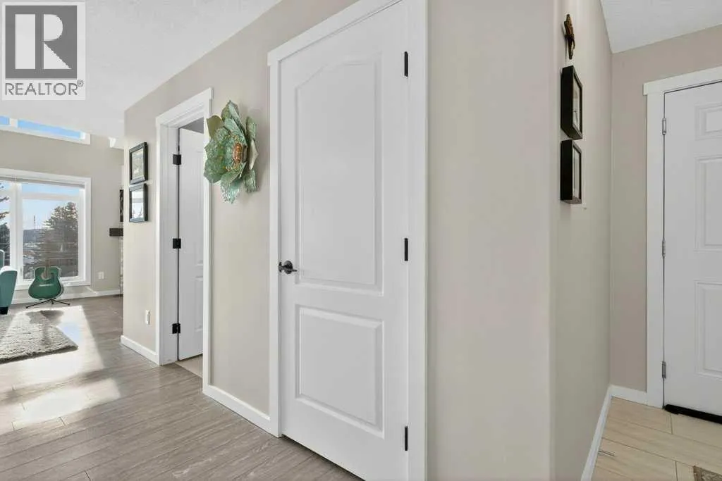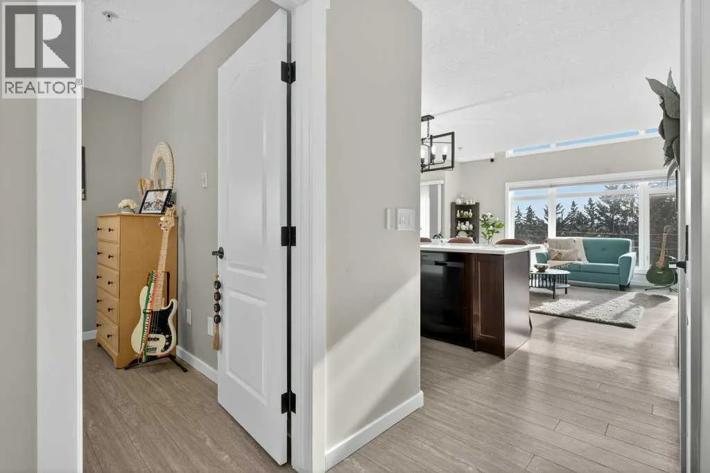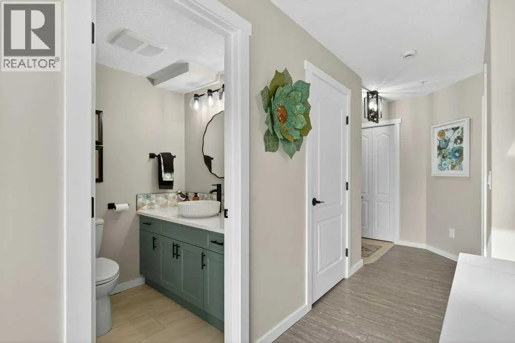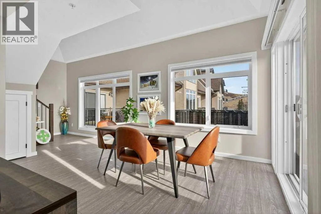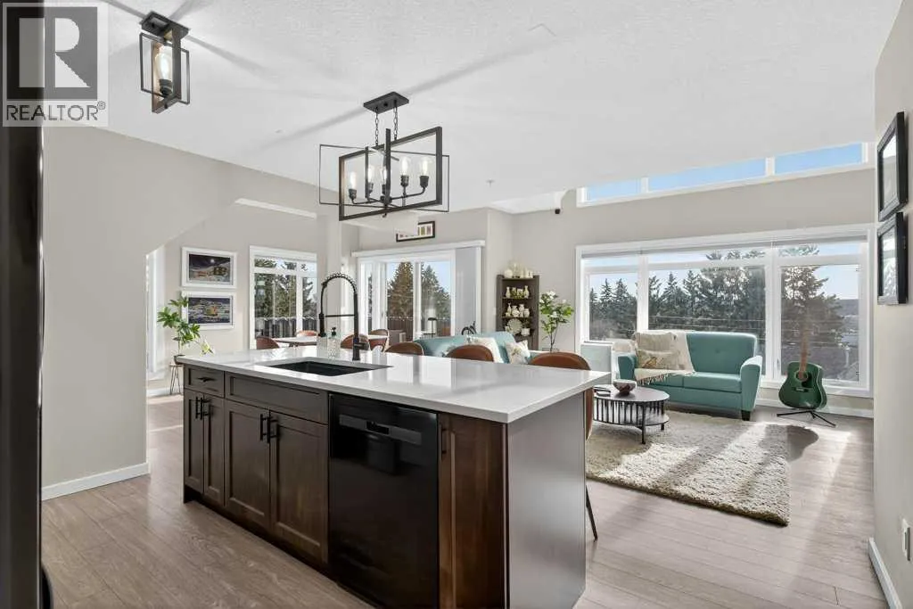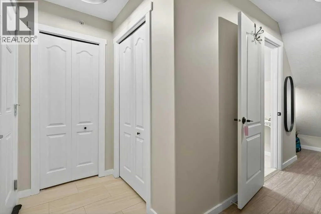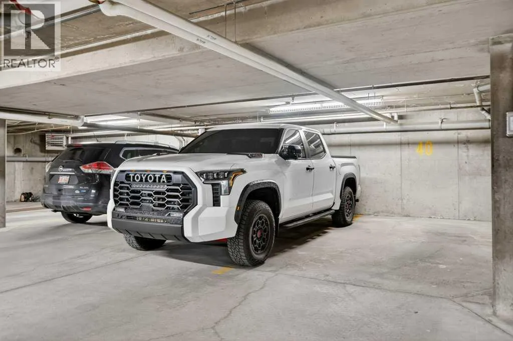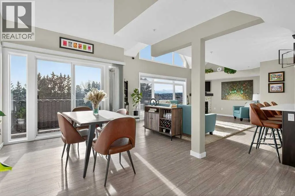 Experience exceptional condominium living in this incredible multi-level residence at 141 Mountain Streetâone of the largest layouts in the entire building. Set in a quiet corner on the south side of the building, this unique unit comes with two titled parking stalls and offers an impressive level of privacy and natural light. Vaulted ceilings and massive windows draw your eyes to a view to Cochrane, while the expansive wrap-around balcony provides a relaxing spot to enjoy a hint of the mountains.The main level features a bright, open design that is perfect for both everyday living and entertaining. Fresh paint and meticulous upkeep make the space feel warm and welcoming. The well-appointed kitchen includes plentiful cabinetry, generous counter space, and a quartz island, ideal for prepping meals or gatherings with friends or family. A spacious dining area flows easily into the inviting living room, complete with a beautifully tiled gas fireplace.This level also includes a comfortable second bedroom, a 4-piece bathroom, and convenient in-suite laundry. Upstairs, the loft-style primary suite offers a peaceful escape with room for large furniture, a walk-through closet with exceptional storage, and a private 4-piece ensuite with dual quartz vanities.Recent upgrades include: New Kitchen cabinets, remodelled island, quartz counter-tops, all new appliances (incl. washer & dryer), new tile in foyer, kitchen backsplash, fireplace surround and both bathrooms (floors & tub/shower), fireplace mantle, paint (walls, doors, trim & ceiling), new sinks, faucets & toilets, light fixtures, custom blinds, new door hardware and even a custom built pantry.A unique advantage of this unit is dual elevator accessâallowing you to reach your home from either the third or fourth floor. The heated parkade includes your two titled stalls, plus additional accessible and visitor parking for added convenience.Just steps from downtown Cochraneâs shops, restaurants, and amenities, this locati on also provides simple access to Calgary and the mountains via Crowchild Trail, Highway 1, and the nearby Tuscany C-Train station. (id:27476)