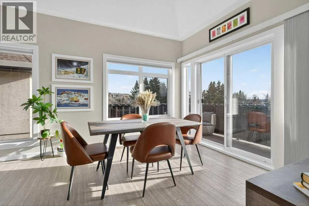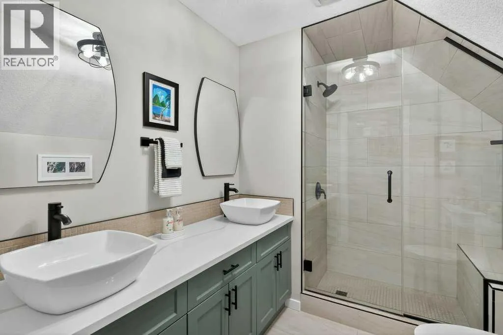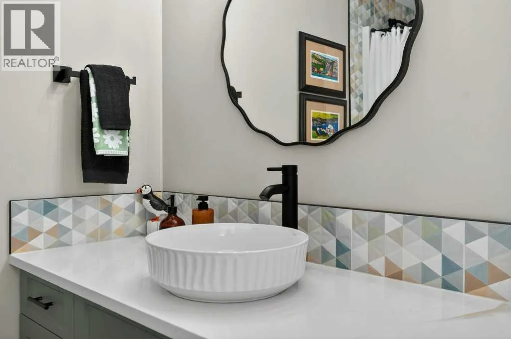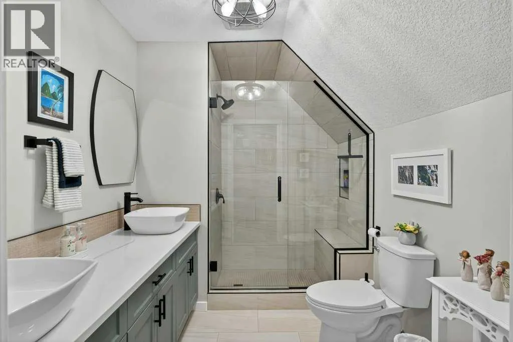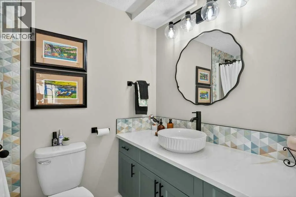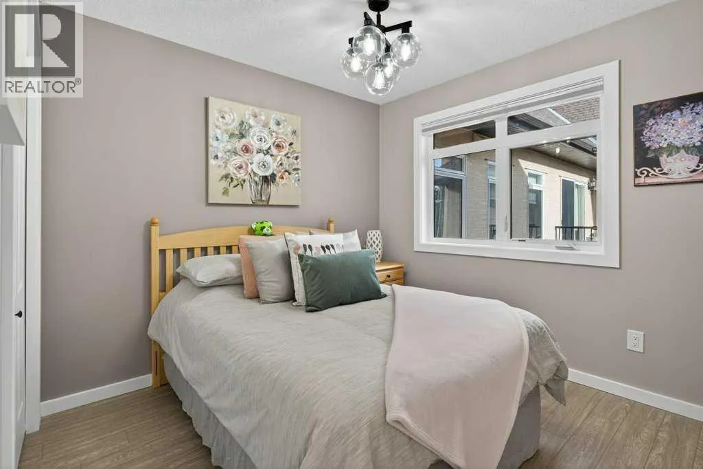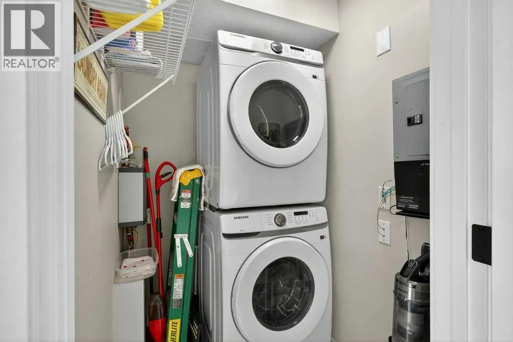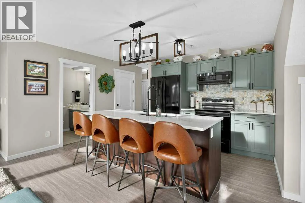 Experience exceptional condominium living in this incredible multi-level residence at 141 Mountain Streetâone of the largest layouts in the entire building. Set in a quiet corner on the south side of the building, this unique unit comes with two titled parking stalls and offers an impressive level of privacy and natural light. Vaulted ceilings and massive windows draw your eyes to a view to Cochrane, while the expansive wrap-around balcony provides a relaxing spot to enjoy a hint of the mountains.The main level features a bright, open design that is perfect for both everyday living and entertaining. Fresh paint and meticulous upkeep make the space feel warm and welcoming. The well-appointed kitchen includes plentiful cabinetry, generous counter space, and a quartz island, ideal for prepping meals or gatherings with friends or family. A spacious dining area flows easily into the inviting living room, complete with a beautifully tiled gas fireplace.This level also includes a comfortable second bedroom, a 4-piece bathroom, and convenient in-suite laundry. Upstairs, the loft-style primary suite offers a peaceful escape with room for large furniture, a walk-through closet with exceptional storage, and a private 4-piece ensuite with dual quartz vanities.Recent upgrades include: New Kitchen cabinets, remodelled island, quartz counter-tops, all new appliances (incl. washer & dryer), new tile in foyer, kitchen backsplash, fireplace surround and both bathrooms (floors & tub/shower), fireplace mantle, paint (walls, doors, trim & ceiling), new sinks, faucets & toilets, light fixtures, custom blinds, new door hardware and even a custom built pantry.A unique advantage of this unit is dual elevator accessâallowing you to reach your home from either the third or fourth floor. The heated parkade includes your two titled stalls, plus additional accessible and visitor parking for added convenience.Just steps from downtown Cochraneâs shops, restaurants, and amenities, this locati on also provides simple access to Calgary and the mountains via Crowchild Trail, Highway 1, and the nearby Tuscany C-Train station. (id:27476)