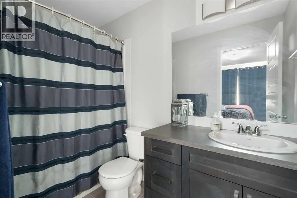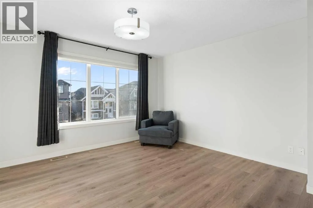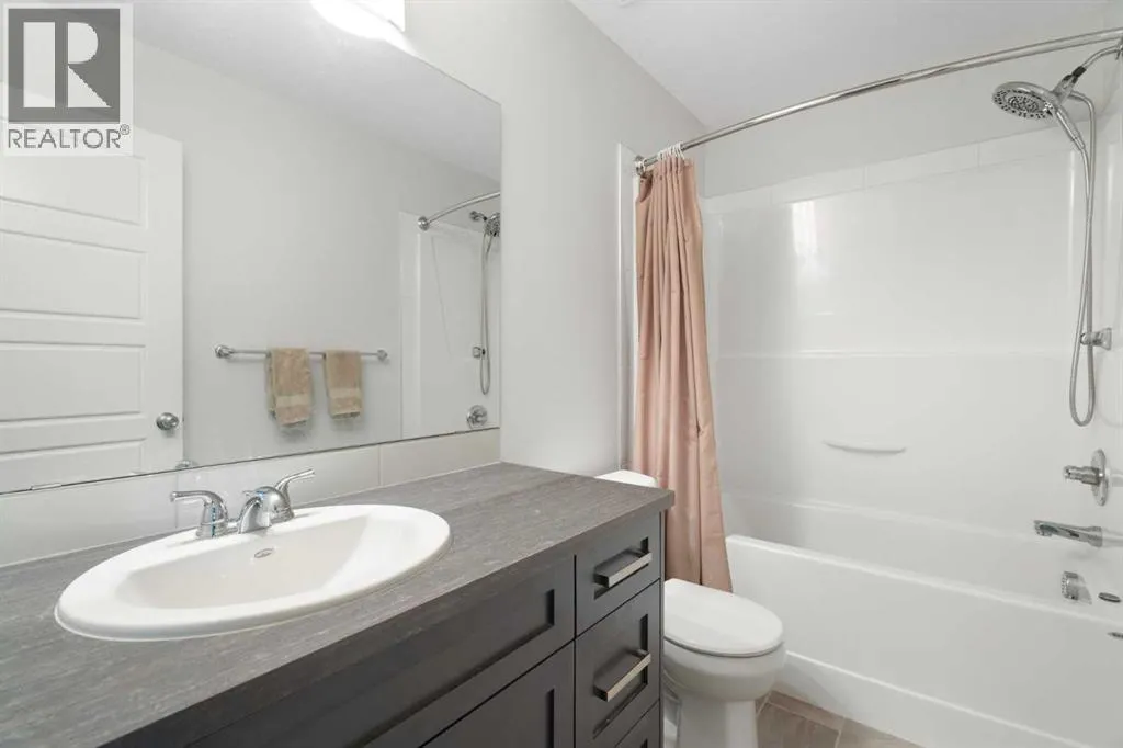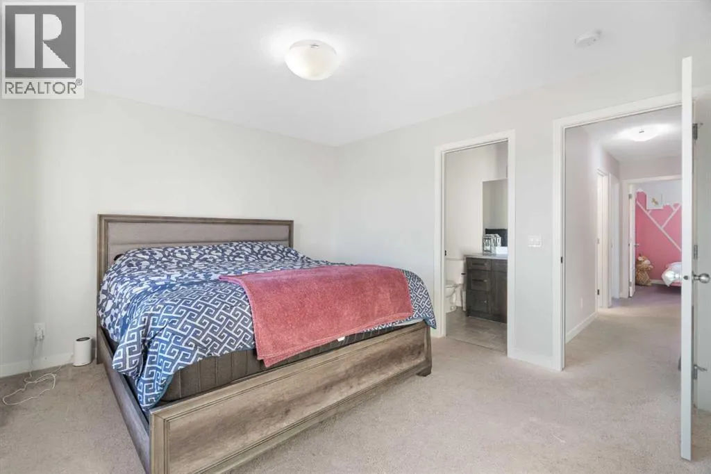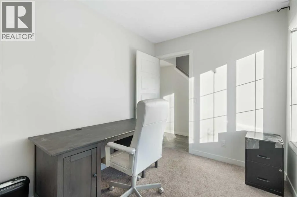 Welcome to Vantage at Fireside â a modern, low-maintenance townhome community perfectly positioned within walking distance to parks, schools, and all of Firesideâs amenities.Offering over 1,420 sq. ft. of stylish living space, this three-bedroom home features an open-concept design with abundant natural light and a thoughtful layout for both comfort and functionality. The main level includes a bright south-facing patio, a flexible den or home office, and a modern kitchen complete with a large stone island, stainless steel appliances, and access to a private balcony with a natural gas BBQ line. The adjoining dining and living areas create a warm and inviting space for relaxing or entertaining.Upstairs, the spacious primary suite includes a 4-piece ensuite and walk-in closet. Two additional bedrooms, another full bathroom, and a convenient upper-floor laundry (upgraded Whirlpool washer & dryer included) complete this level.Additional highlights include an attached double garage, extended driveway with parking for two extra vehicles, window coverings throughout, and completed landscaping â ready for immediate move-in.Located steps from Bullrush Pond Park, walking paths, and a variety of local shops and restaurants, this home combines modern living with small-town charm and quick access to Highway 22 and Highway 1A for an easy commute to Calgary or the mountains. (id:27476)
