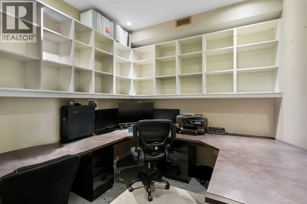 There is 1141 Sq ft of space on the main floor with in floor heat , 3 really nice offices with lots of cabinets and counters and built in desks on the main plus coffee/kitchen area with dishwasher, bar fridge, microwave, cabinets and counter. plus great warehouse space. Epoxy floor, Led lights, Phone and data to multiple locations plus in conduit to pull more if needed. Security cameras, audio in ceiling of offices. Central AC two zones with one for the main floor offices, and one for the rest. Another 651 sq ft on the upper mezzanine with separate office space plus a large general office space area. Central Vac, All electrical plugs 20 amps, 3 parking stalls, This bay would make a great electrician shop/ plumbing shop or other trades, or use for the office spaces Door is 12 ft x 12 ft. Zoned General industrial, this bay could be used for Animal service/ Artist Studio/Automotive Service/Business Support Service/ Government service/ Industrial support services, Innovations Service/Rec facility/ Recreational Vehicle sales and service/ or Self Storage. Space is available for February 01, 2026. Call for more details and to book a viewing. (id:27476)