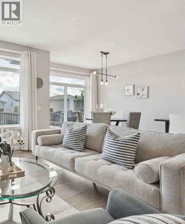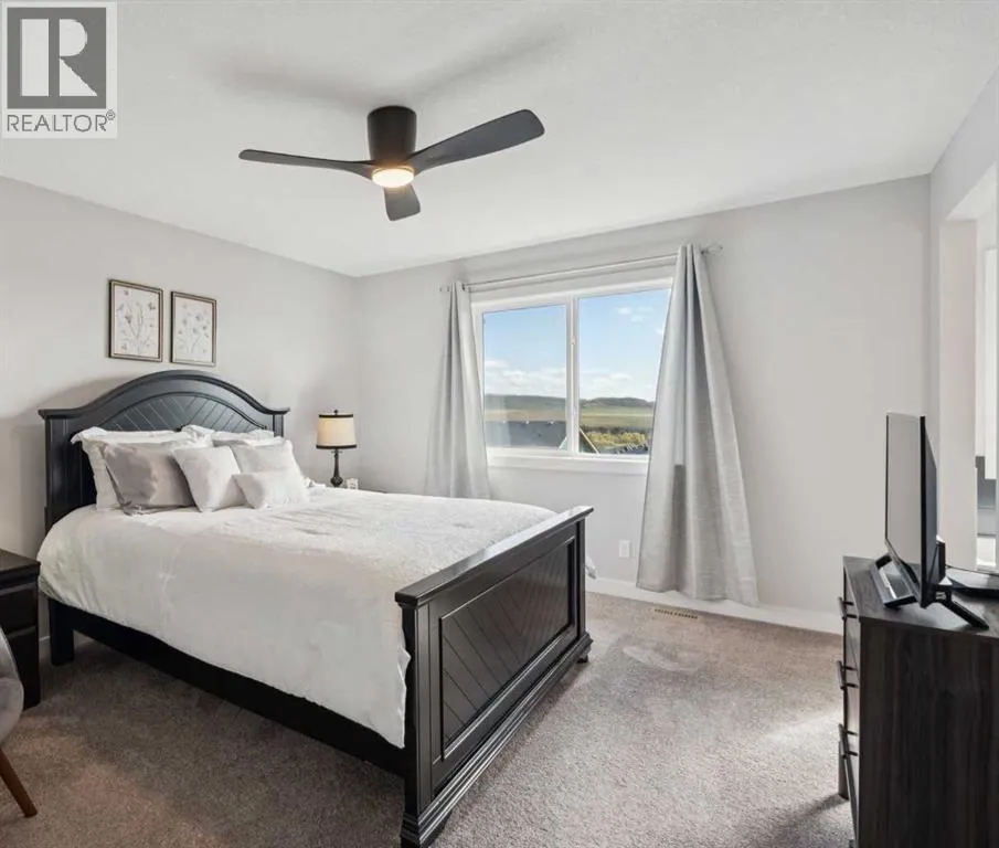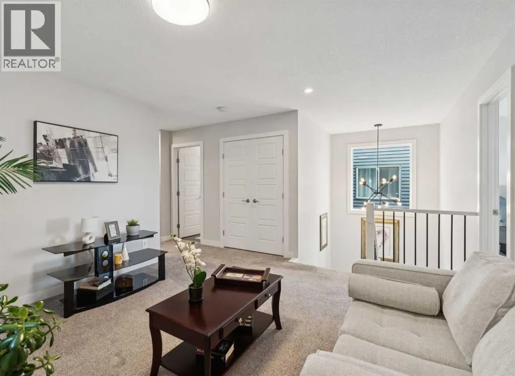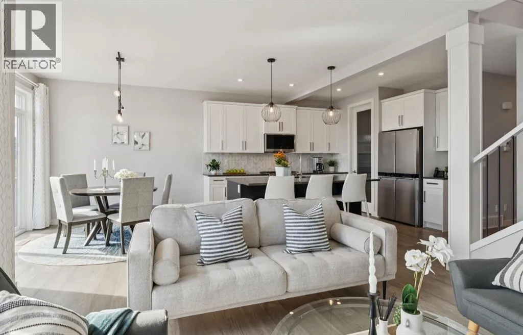 Experience refined living in this beautifully designed 2023-built home, where timeless style meets everyday comfort. The heart of the home is a bright, luxurious WHITE KITCHEN featuring QUARTZ COUNTERTOPS, STAINLESS STEEL APPLIANCES, DESIGNER TILE, and elegant finishes throughoutâperfect for both entertaining and daily living.Upstairs, the stunning primary bedroom is a true retreat offering sweeping VIEWS of Cochraneâs Glenbow Valley and a spa-inspired 5-PIECE ENSUITE complete with a SOAKER TUB, STAND-ALONE SHOWER, DOUBLE VANITY, and generous WALK-IN CLOSET. A stylish BONUS ROOM with a TRANSOM WINDOW bringing in natural light and architectural charm, while two additional bedrooms share a beautifully finished 4-PIECE BATHROOM. The LAUNDRY ROOM conveniently completes this upper level.Thoughtful details continue throughout, including a welcoming BUILT-IN BENCH at the entry, QUARTZ COUNTERS in every bathroom, and an elegant ELECTRIC FIREPLACE creating a cozy focal point in the main living area.The UNFINISHED WALKOUT BASEMENT offers endless potential with a BATHROOM ROUGH-IN and direct access to a PRIVATE LOWER DECK. Outside, enjoy your fully fenced EAST-FACING BACKYARD, lined with trees and featuring two outdoor living spacesâan UPPER DECK with PRIVACY SCREEN and a LOWER PATIO, both with STUNNING VIEWS of the valley.Located within walking distance to the river valley, parks, schools, and amenities, with quick access to the Rec Centre, shopping, and more, this home offers elevated living in a peaceful, scenic settingâa perfect blend of luxury, lifestyle, and location. (id:27476)