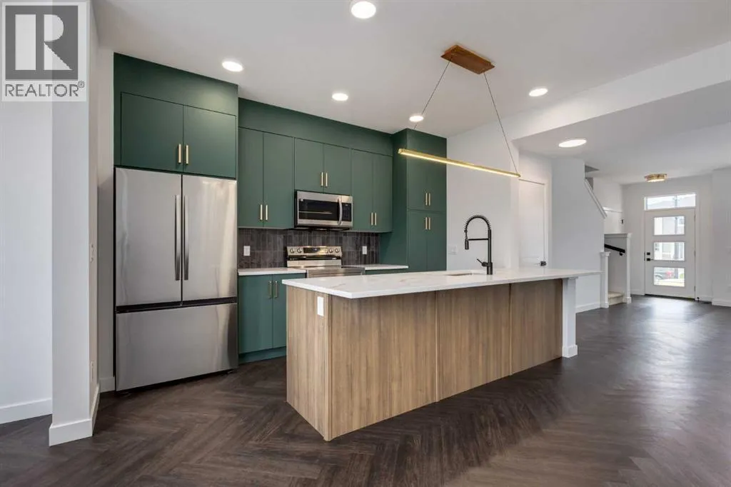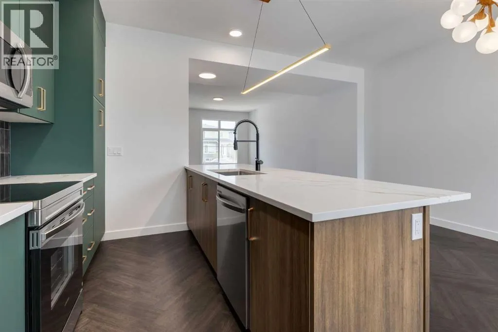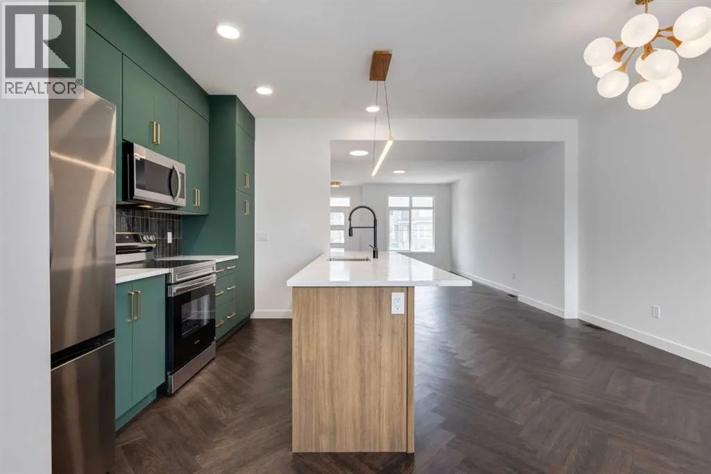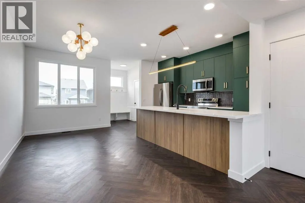 ** Open House at Greystone showhome - 498 River Ave, Cochrane - Sunday, Jan. 4th 1-4pm and Tuesday, Jan. 6th 1-4pm ** Welcome to this beautifully crafted semi-detached Talo model by Rohit Homes, situated in the vibrant and rapidly growing community of Greystone in Cochrane. This home is an excellent fit for families, first-time buyers, or anyone looking to right-size without compromising on style or versatility.Offering 3 bedrooms, 2.5 bathrooms, and 1,520 sq. ft. of well-designed living space, this brand-new home features a bright, open-concept main floor with 9' ceilings and a seamless connection between the kitchen, dining, and living areasâideal for both daily living and entertaining.The contemporary kitchen serves as the focal point, complete with quartz countertops, a central island, and modern cabinetry that blend practicality with sophisticated design. At the rear, a double detached parking pad provides convenient parking and extra storage while preserving the homeâs inviting curb appeal.Upstairs, the spacious primary suite includes a private ensuite and generous closet space, complemented by two additional bedrooms and a full bathroomâideal for kids, guests, or a home office. A convenient upper-floor laundry room adds to the everyday ease of living.Set in the dynamic community of Heartland, you'll enjoy quick access to parks, schools, scenic pathways, local amenities, and major routesâmaking commuting to Calgary or weekend escapes to the mountains a breeze.Donât miss your chance to live in this stylish and functional duplex in one of Cochraneâs most desirable new neighborhoodsâschedule your private showing today! (id:27476)