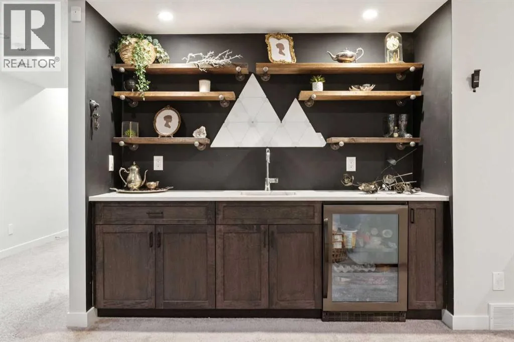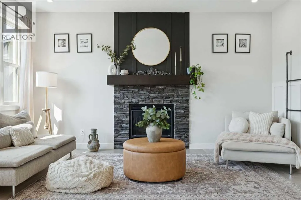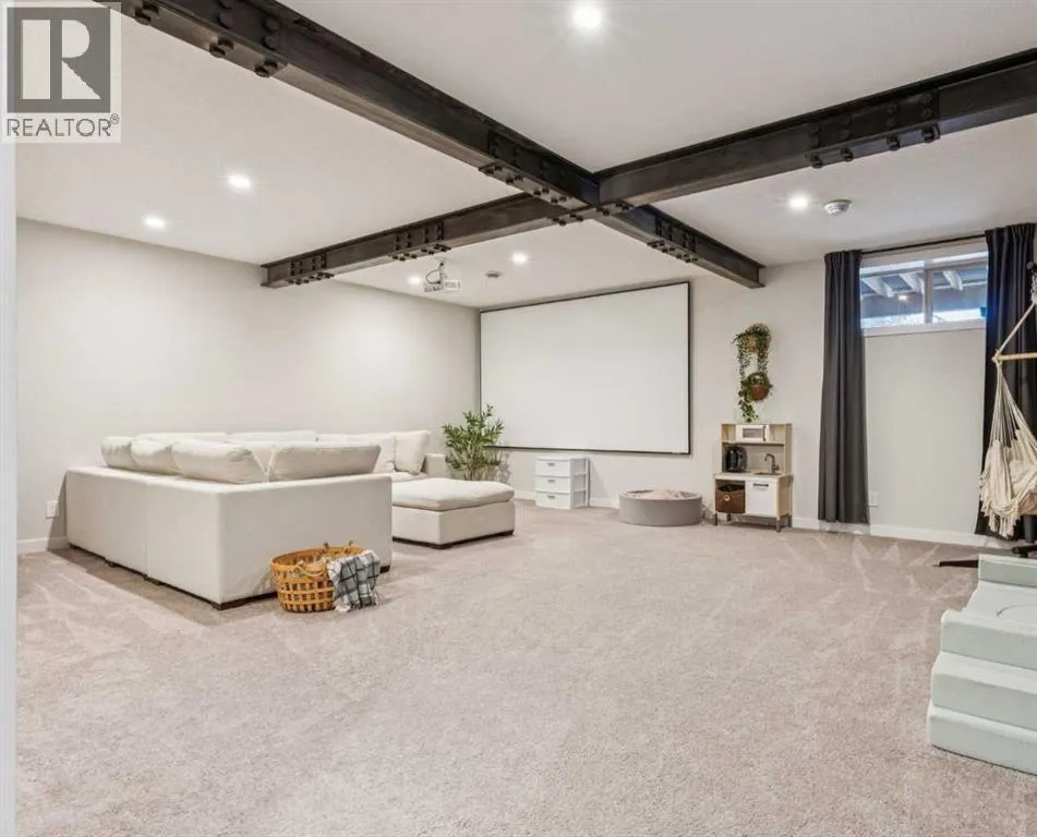 Welcome to this stunning smart-enabled home in the prestigious community of Riviera, where timeless style blends seamlessly with modern convenience.A bright OPEN-TO-BELOW foyer welcomes you with expansive windows and beautiful EXPOSED CEILING BEAMS that highlight the homeâs architectural charm. The main floor offers a dedicated OFFICE, a stylish powder room, and added ease with the NEST SMART SYSTEM. The gourmet kitchen serves as the centrepiece, showcasing UPGRADED APPLIANCES, a gas cooktop with chimney hood fan, an oversized island, and STRIKING FEATURE WALLS. The adjoining living room is warm and inviting with its GAS FIREPLACE and airy, light-toned finishes.Upstairs, a bright bonus room with CUSTOM FEATURE WALLS provides flexible living space. The west-facing kidsâ bedrooms offer cozy SHIPLAP DETAILS, while the primary bedroom is a luxurious havenâcomplete with its own FIREPLACE, TINTED WINDOWS, AUTOMATIC BLINDS, and a spa-like 5-PIECE ENSUITE with soaker tub, tiled shower, and a WALK-THROUGH CLOSET with BARN DOOR and CUSTOM ORGANIZERS.The FULLY DEVELOPED BASEMENT is designed for hosting and relaxation, featuring 9-ft CEILINGS, a WET BAR with BAR FRIDGE, a spacious THEATRE ROOM enhanced by UNIQUE BEAMS, and ABUNDANT STORAGE.Step into your west-facing backyard, PROFESSIONALLY LANDSCAPED with an ELEVATED COMPOSITE DECK and GLASS RAILINGS, PERGOLA, STONE GAS FIRE PIT, and mature trees lining the PIE-SHAPED LOT for enhanced privacyâperfect for relaxing or entertaining.NOTABLE FEATURES: ⢠Multiple custom feature walls⢠Brand-new air conditioning⢠Automatic blinds & smart-home integration⢠Engineered hardwood flooring⢠West-facing, fully landscaped yardExperience the best of Riviera livingâsurrounded by natural beauty, river pathways, and a true family-friendly environment. (id:27476)