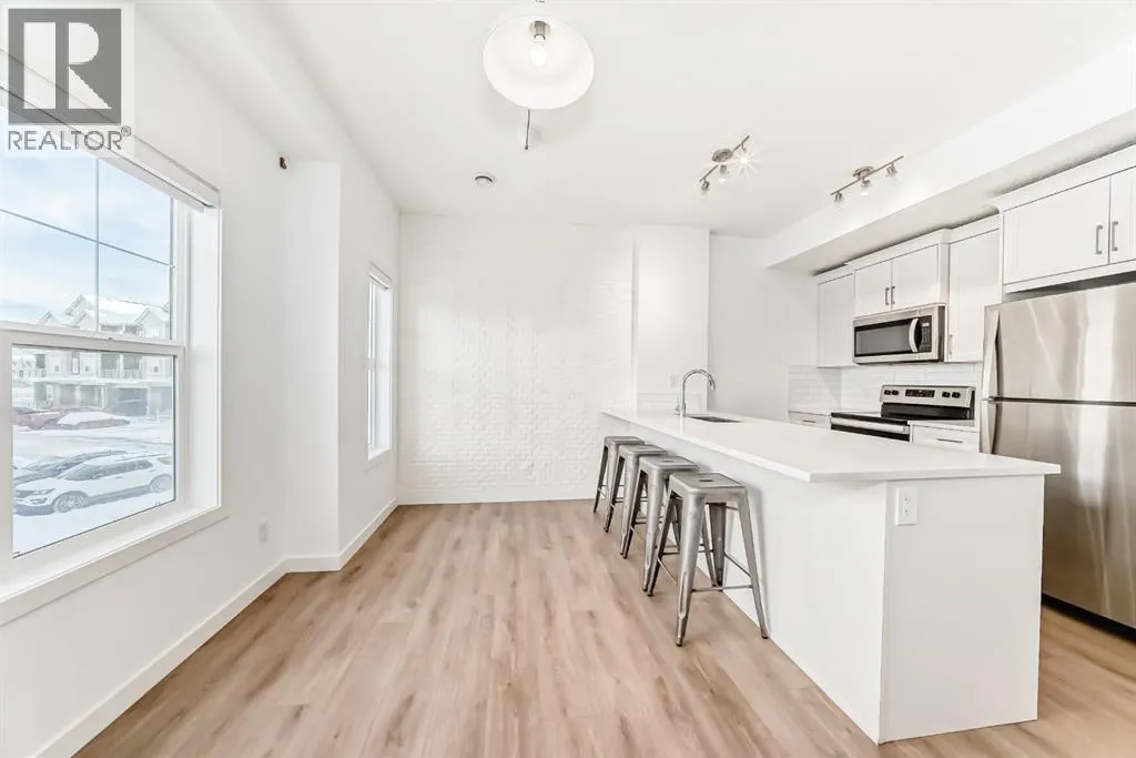 This well-kept home in The Vantage at Fireside truly stands out for its care and attention to detail. As you enter, youâre greeted by a generous front foyer with upgraded tile flooringâdurable, attractive, and offering ample room for outerwear.Head up to the main level, where youâll find a bright, open living space that combines the kitchen, dining, and living areas. The kitchen features sleek white cabinetry, light quartz countertops, luxury vinyl flooring, stainless steel appliances, and a functional island perfect for casual meals or meal prep. Just off the living room, a private balcony offers the ideal spot for grilling, unwinding, or enjoying your morning coffee. You'll also find a hallway closet, a convenient half bath with added storage and quartz counters. The top floor includes a 4-piece bathroom, separate laundry, and two well-sized bedrooms - one with a lovely private balcony, providing versatility for family, guests, or a home office setup.Come see this fantastic property for yourselfâschedule a showing, fall in love, and make it yours! Fireside offers fast access to Calgary and the mountains, along with a growing list of amenities: schools, parks, pathways, playgrounds, shops, dining options, and much more. (id:27476)