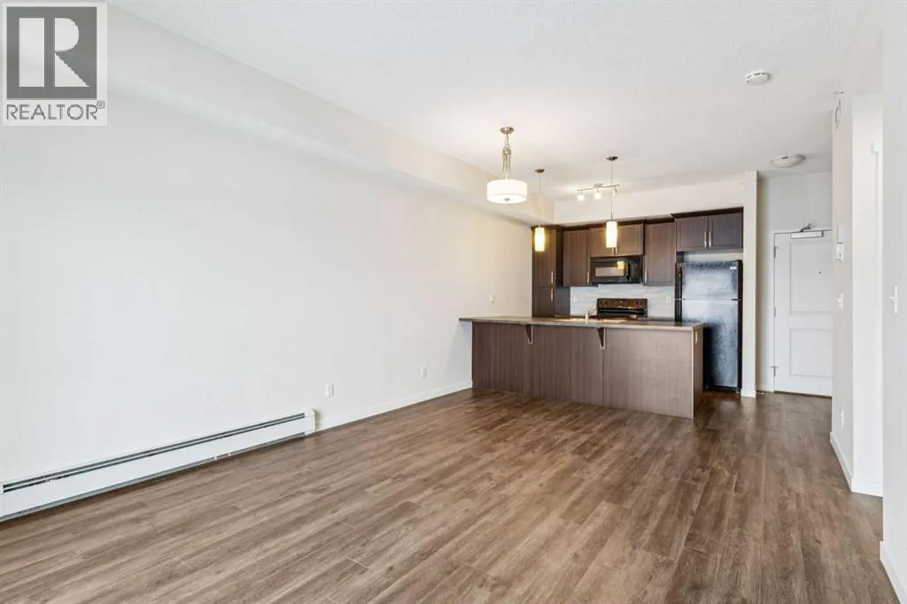 Bright & Stylish Sunset Ridge Condo â Ideal Location & Contemporary Living. Welcome to this beautifully appointed one-bedroom plus den condo situated in the lively Trading Post area of Sunset Ridge. Offering close to 650 sq. ft. of thoughtfully planned space, this home blends modern comfort with everyday practicality. The open layout, generous primary bedroom, and inviting eat-in kitchen create a warm and functional living environment. Large vinyl windows and a patio door invite abundant natural light, giving the suite an open, uplifting feel. The versatile den can easily serve as a workspace, cozy reading corner, or occasional guest spaceâwhatever best fits your needs. The building is fully sprinklered for added safety and includes valuable conveniences such as in-suite laundry, a dedicated storage locker, and a heated underground parking stall. Step onto the spacious covered balcony to enjoy serene southeast ravine scenery and partial mountain viewsâan ideal place to unwind. The property itself is well maintained, with Hardie plank siding, attractive landscaping, bright common areas, and secure underground parking. Multiple stairways and elevator access make moving around the building simple and efficient. Everything you need is close by: the main floor hosts dental and medical clinics, a pharmacy, and several retail shops. The surrounding area also features restaurants, a convenience store, and a gas station just steps away. Experience the exceptional value and welcoming atmosphere that make Sunset Ridge such a desirable community. This isnât just a condoâitâs a lifestyle. (id:27476)
