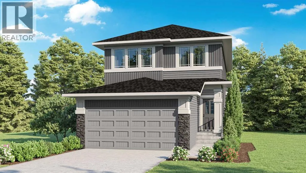 Located in the vibrant new community of Southbow Landing in South Cochrane, this exquisite brand new residence provides over 2,000 square feet of living space, embracing modern comfort with classic elegance. The THOUGHTFULLY DESIGNED floor plan offers three spacious bedrooms and two and a half baths, perfect for families or anyone seeking refined living. The 9' ceilings on the main floor create a sense of openness and airiness. The kitchen features gorgeous cabinetry featuring extended upper cabinets for ample storage. Quartz countertops offer both functionality and sophistication, while the gas fireplace in the living room adds warmth and an inviting ambiance. The main floor showcases luxury vinyl plank flooring, chosen for both its beauty and durability. Whether you're entertaining guests or enjoying a quiet evening, the seamless flow of this level makes it perfect for any lifestyle. Upstairs has a central bonus room that offers privacy by separating the serene primary suite from the secondary bedrooms. This area is ideal for a family playroom or a cozy retreat. The convenience of an upstairs laundry room enhances the livability of the space. There is a rear deck that extends off the eating area, perfect for summer barbecues and relaxing evenings. The home includes an EXTRA WIDE DOUBLE ATTACHED GARAGE, providing both security and convenience for your vehicles and storage needs. The allure of this property extends beyond its walls, as it is situated in the burgeoning community of Southbow Landing. Exciting plans for the neighbourhood include ample green spaces, schools, and scenic pathways. Quick and easy access to downtown Calgary and the majestic Rocky Mountains. This home is not just a place to liveâitâs a lifestyle, offering exceptional quality, space, and location. Welcome to your new Southbow Landing home BUILT BY NUVISTA HOMES, ONE OF CALGARY'S PREMIER BUILDERS known for top rated customer service. (id:27476)