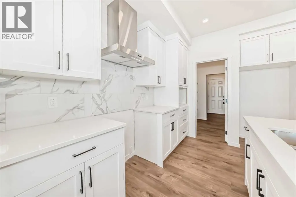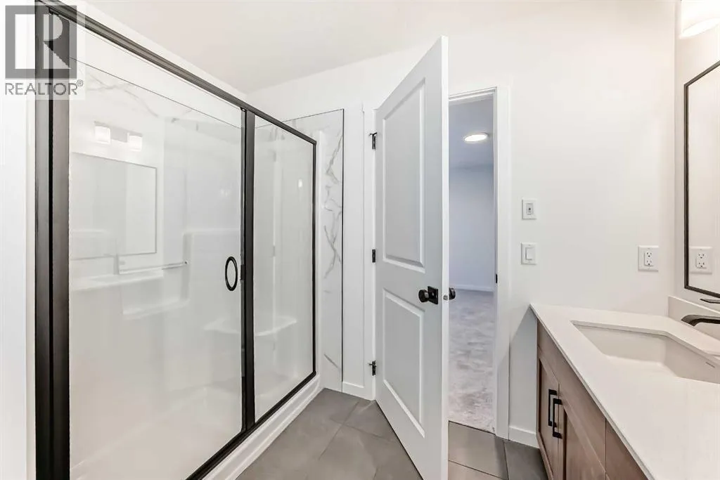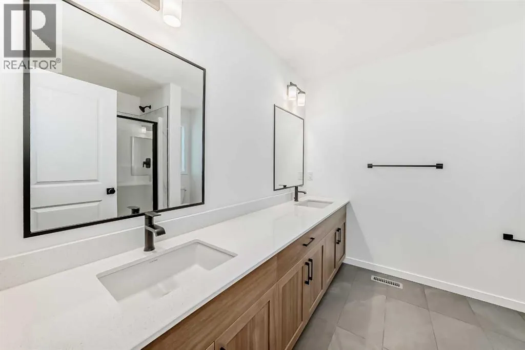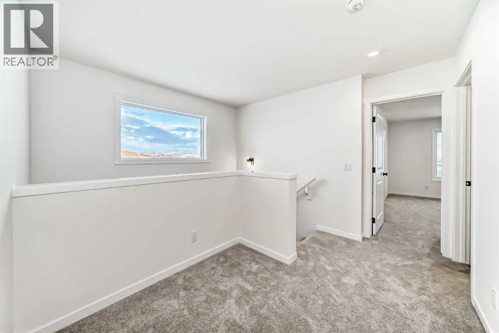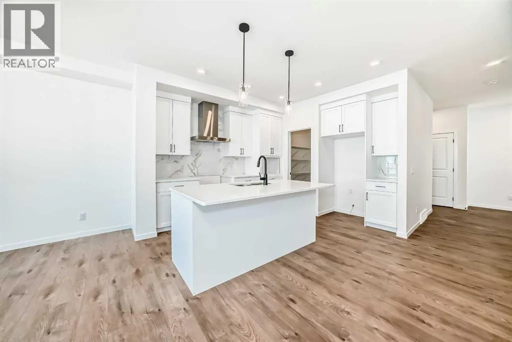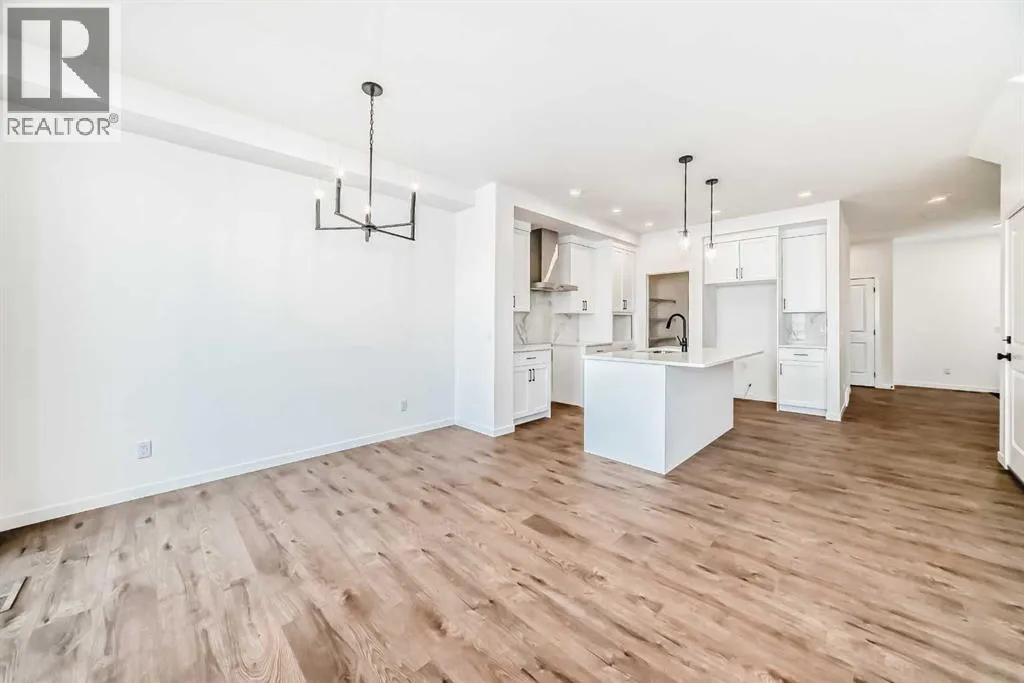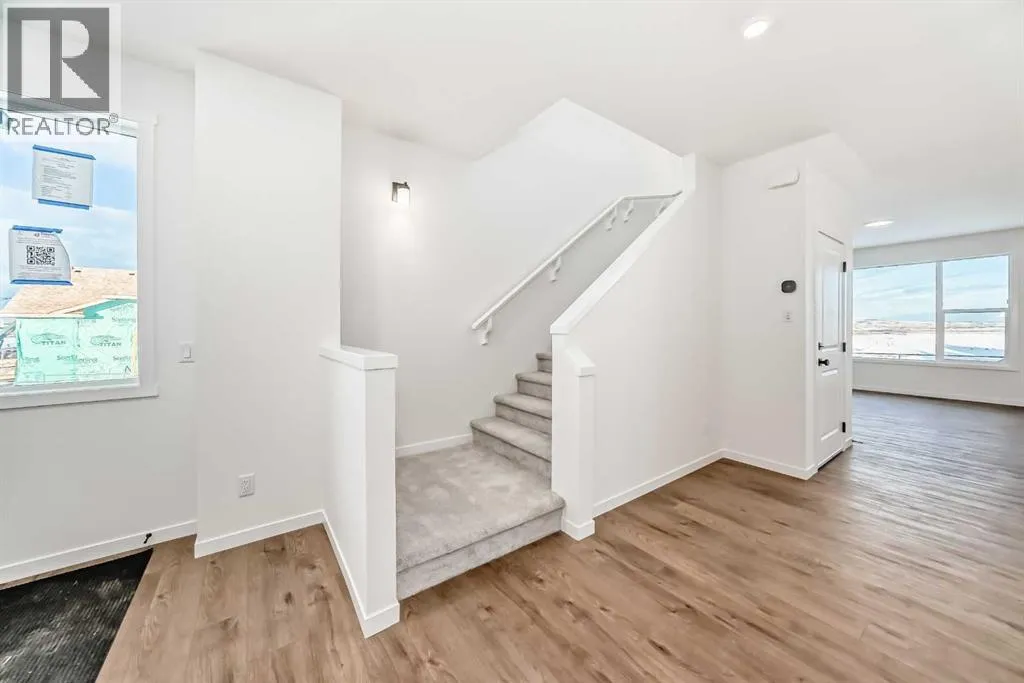 This brand-new half duplex in Cochraneâs Southbow Landing is fully completed and move-in ready, offering a spacious layout thatâs built for real life and a built in mortgage helper in the form of a fully developed LEGAL suite ! The main floor delivers an open, bright footprint, a large foyer leads straight into a clean, modern kitchen with a functional island, plenty of prep space, and an easy flow into the dining nook and great room. The living area is anchored by a sleek electric fireplace and framed by oversized windows that pull in natural light all day. Direct access to the rear deck gives you smooth indoor-outdoor living without hassle.Upstairs, the layout is dialed in. A versatile loft sits at the center and works as a second living space, home office, kids zone, or media room. The primary bedroom is generous in size and includes a well-finished ensuite with a walk-in shower and double vanity. Two additional bedrooms and another full bathroom complete the upper floor, giving families or shared living setups exactly what they need.The basement is designed with a separate side entry and is already planned for a one bedroom suite layout, offering massive potential for future income, multi-generational living, or added flexibility. With the 9 foot foundation height, proper bathroom rough-ins, dedicated living room, full kitchen area, and bedroom placement already mapped out, the heavy lifting is done.A double attached garage adds the convenience buyers expect while the exterior shows clean, modern farmhouse lines that give the home strong curb appeal. Because this property is brand new, you get untouched systems, fresh materials, and zero renovation headaches.Southbow Landing is shaping up fast and is one of Cochraneâs most promising new communities. Walkable pathways, planned parks, and future amenities makes this location ideal for anyone wanting both convenience and long-term upside.This home delivers serious value. (id:27476)