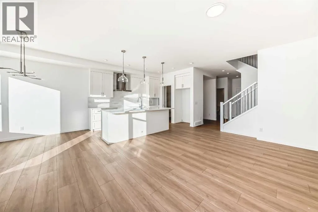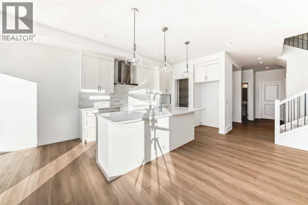 This exceptional half duplex in Cochrane's rapidly developing Southbow Landing community is a strategic investment, uniquely designed for both premium family living and significant financial advantage, while adhering strictly to a modern, concise, and clear standard. The main floor opens with a welcoming foyer, leading into a bright, open-concept layout defined by durable, contemporary finishes. The core of the home is the functional kitchen, typically featuring an island and ample prep space, which flows naturally into the casual nook and the spacious Great Room, creating an ideal area for daily life and entertaining. Efficiency is maximized by the crucial walk-through pantry connecting the kitchen to the convenient mudroom. Moving upstairs, the floor plan is dedicated to rest and privacy, highlighted by the Primary Bedroom retreat, which boasts a generous 5-piece ensuite bathroom ( with dual sinks) and a walk-in closet. The upper level is completed by two additional well-proportioned bedroomsâone of which includes its own walk-in closetâand a 4-piece secondary bathroom. The true distinguishing feature of this property, however, lies in the lower level: a fully finished and professionally legal secondary suite. This self-contained, income-generating unit is positioned as a powerful mortgage helper or an excellent option for multi-generational living, featuring its own additional spacious bedroom, a full bathroom, a complete second kitchen, and a private family room, offering independence and a strong return on investment within a highly desirable community close to pathways, parks, and all of Cochrane's amenities. (id:27476)