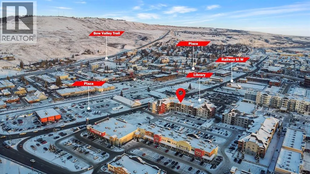 Welcome to this inviting one-bedroom plus den condo in the heart of downtown Cochrane! A ground-level unit with only one shared wall! A rare find! Step inside and you will notice the warm afternoon sun from west facing windows, making your open concept living room & kitchen space feel bright and cozy. Enjoy the convenience of in-suite laundry, and plenty of space for a home office, guest area, or bonus living space in the den. Step outside and you are just minutes from shops, restaurants, grocery stores, parks & schools etc; making this one of the most walkable locations in town! Your outdoor assigned parking stall is close to the main entrance & the units sliding door, added convenience! And low condo fees! Whether you're a first-time buyer, downsizing, or looking for an investment property, this well-situated condo gives comfort, convenience, and exceptional everyday living! (id:27476)