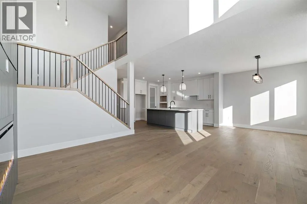 Ridge Lot With Amazing Views...Situated in the desirable community of West Hawk. This home is thoughtfully designed and comes with with 3 bedrooms and 2.5 bathrooms. The main floor features an open-concept layout with soaring open-to-above ceilings, a striking Linear fireplace Design, and a private home office with Wainscoting. The chefâs kitchen showcases custom soft-close cabinetry with hidden doors behind the island, quartz countertops, Samsung stainless steel appliances, a walkthrough pantry, and under-cabinet lighting. A mudroom adds everyday convenience. Upstairs, the master retreat impresses with mountain views, a walk-in closet, and a spa-inspired ensuite with dual sinks, a 10mm glass shower, soaker tub, upgraded mirrors, and imported tiles. A spacious bonus room and laundry area provide added functionality. Additional highlights include 8-ft doors on the main floor, custom built-in closets, engineered hardwood, 9-ft ceilings on both levels, upgraded lighting, plumbing fixtures, and a double-car garage. The walkout basement has Roughed in Bathroom plumbing and ready for your future Development. Enjoy West Hawkâs prime location near parks, future dog park, bike paths, shopping, and quick mountain access. This home also includes a Certified New Home Warranty for peace of mind. Donât miss this rare opportunityâbook your private viewing today! (id:27476)