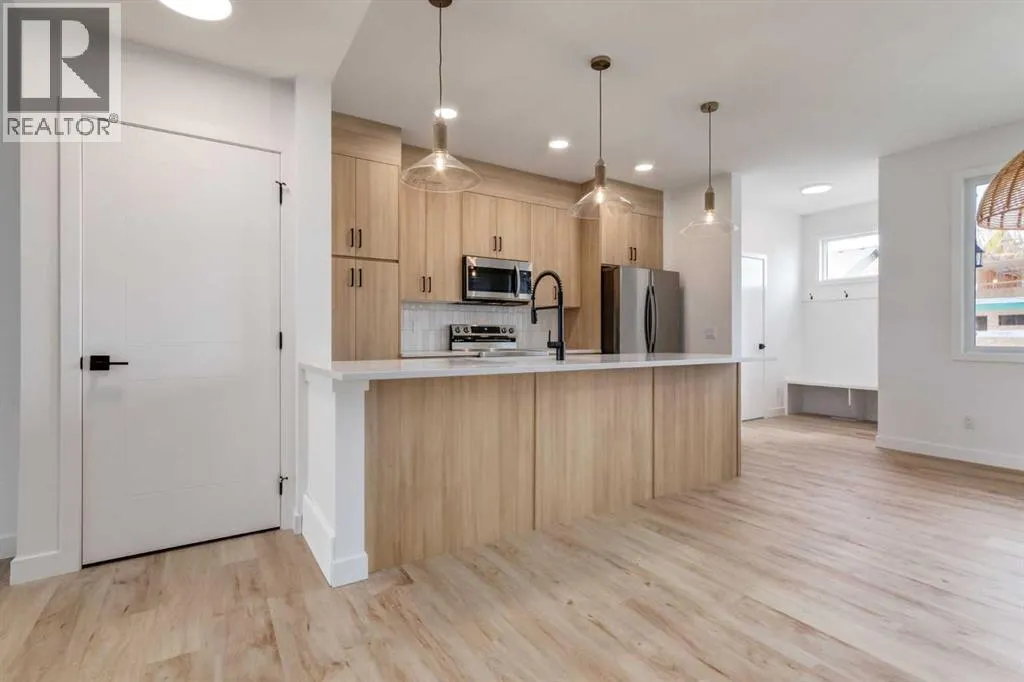 ** Open House at showhome - 120 Clydesdale Ave, Cochrane - Dec. 22nd 3-6pm, Dec. 29th 1-5pm, Dec. 31st 12:30-3:30pm ** Welcome to this beautifully crafted semi-detached Talo model by Rohit Homes, situated in the vibrant and rapidly growing community of Heartland in Cochrane. This home is an excellent fit for families, first-time buyers, or anyone looking to right-size without compromising on style or versatility.Offering 3 bedrooms, 2.5 bathrooms, and 1,520 sq. ft. of well-designed living space, this brand-new home features a bright, open-concept main floor with 9' ceilings and a seamless connection between the kitchen, dining, and living areasâideal for both daily living and entertaining.The contemporary kitchen serves as the focal point, complete with quartz countertops, a central island, and modern cabinetry that blend practicality with sophisticated design. At the rear, a double detached parking pad provides convenient parking and extra storage while preserving the homeâs inviting curb appeal.Upstairs, the spacious primary suite includes a private ensuite and generous closet space, complemented by two additional bedrooms and a full bathroomâideal for kids, guests, or a home office. A convenient upper-floor laundry room adds to the everyday ease of living.Set in the dynamic community of Heartland, you'll enjoy quick access to parks, schools, scenic pathways, local amenities, and major routesâmaking commuting to Calgary or weekend escapes to the mountains a breeze. New Home Warranty Included.Donât miss your chance to live in this stylish and functional duplex in one of Cochraneâs most desirable new neighborhoodsâschedule your private showing today! (id:27476)
