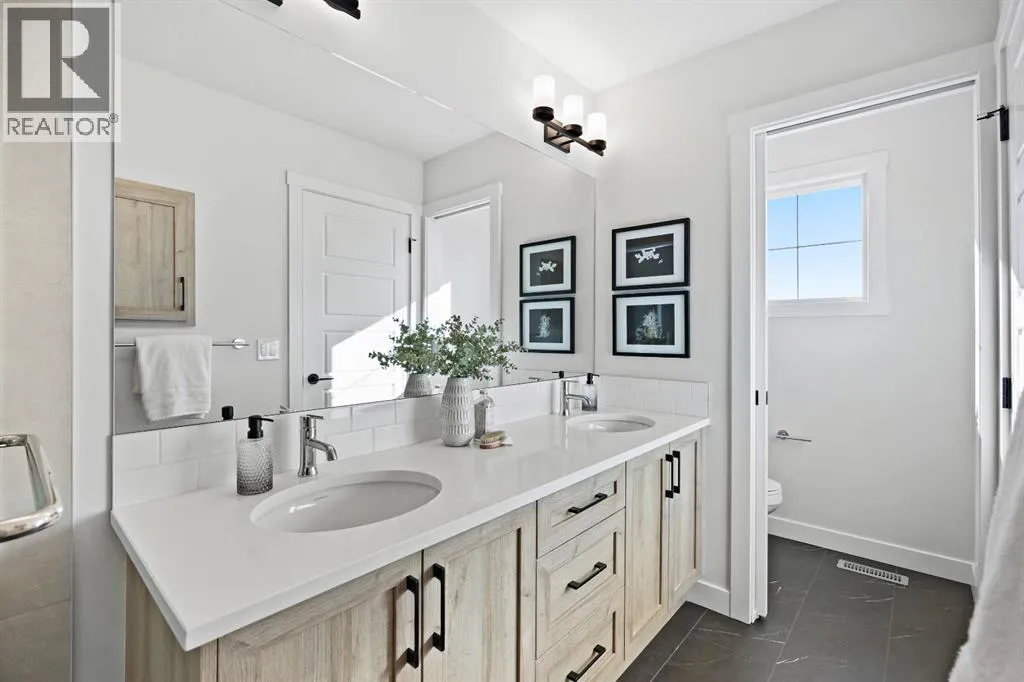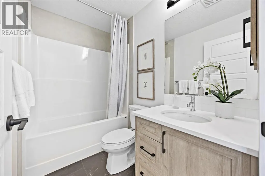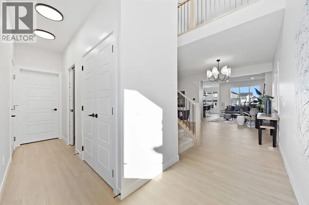 Welcome to the Montay in Cochraneâs Fireside community. This home offers 2,021 sq. ft., 4 bedrooms, and 2.5 bathrooms. Modern design and thoughtful upgrades make daily living easy. The main floor features a bright, open kitchen with quartz countertops, shaker-style cabinetry, and stainless-steel appliances. The island adds seating and workspace. The walk-through pantry and mudroom provide smart storage. Connected dining, living, and great rooms create an ideal space for gatherings. Upstairs, the primary suite has a walk-in closet and a private ensuite. Three more bedrooms, a full bathroom, a versatile loft, and an upper laundry complete the floor. Built with flexibility in mind, this home includes a side entry and unfinished basement with 9-foot ceilings, ready for your ideas. A double garage and rear lane access add convenience. Fireside is one of Cochraneâs most connected communities, known for its schools, local shops, and pathways winding through parks and nature. Itâs designed for families and outdoor lifestyles, with quick access to Calgary and the mountains. Area size was calculated with the RMS using the builder's blueprints. Photos are representative. The kitchen in this home has white cabinetry. (id:27476)