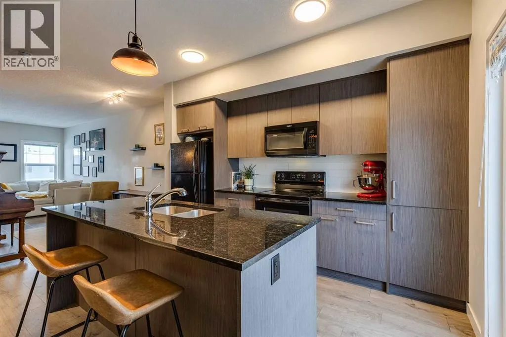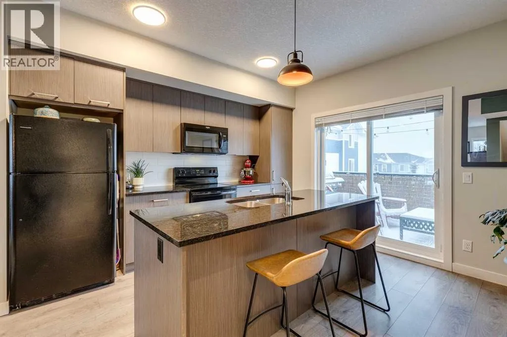 Welcome to 2103 Jumping Pound Common in Cochrane's sought-after Jumping Pound Ridge, where LOW CONDO FEES deliver exceptional value for modern, carefree living! Nestled just steps from Jumpingpound Creek and scenic walking trails, this impeccably designed 2017-built three-storey townhouse spans 1,280 sq ft of bright, inviting space, boasting two generous bedrooms, one full bath, one half bath, and a flexible den on the main levelâperfect for a home office, workout area, or guest retreat. Ascend to the open-concept second floor, where a gourmet kitchen with sleek granite countertops, ample cabinetry, and premium appliances flows seamlessly into the living area, illuminated by abundant natural light and leading to a spacious balcony with gas line for effortless BBQs and outdoor enjoyment. Upstairs, the primary bedroom accommodates a king-size bed with ease, complemented by a second bedroom, full bathroom featuring a deep soaker tub, and convenient in-unit laundry. Finished with an insulated attached garage offering extra storage, this well-cared-for gem provides year-round appealâ from summer adventures along the Bow River to winter fun on Cochrane's top sledding hill, all near playgrounds, schools, shops, and quick access to Calgary. Seize this all-season havenâcall a Realtor now to schedule a viewing! (id:27476)