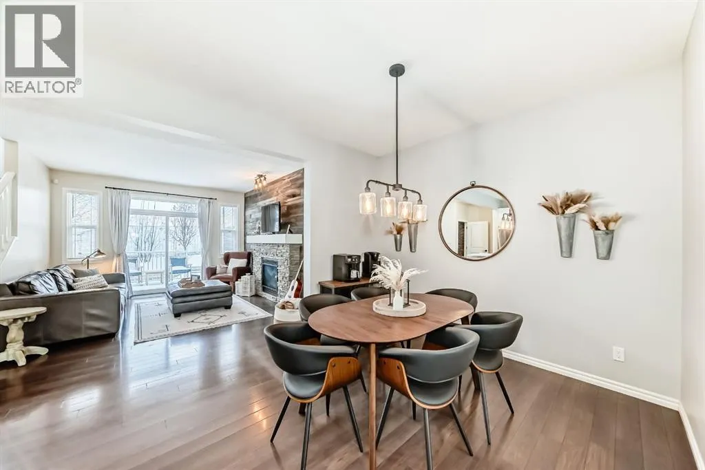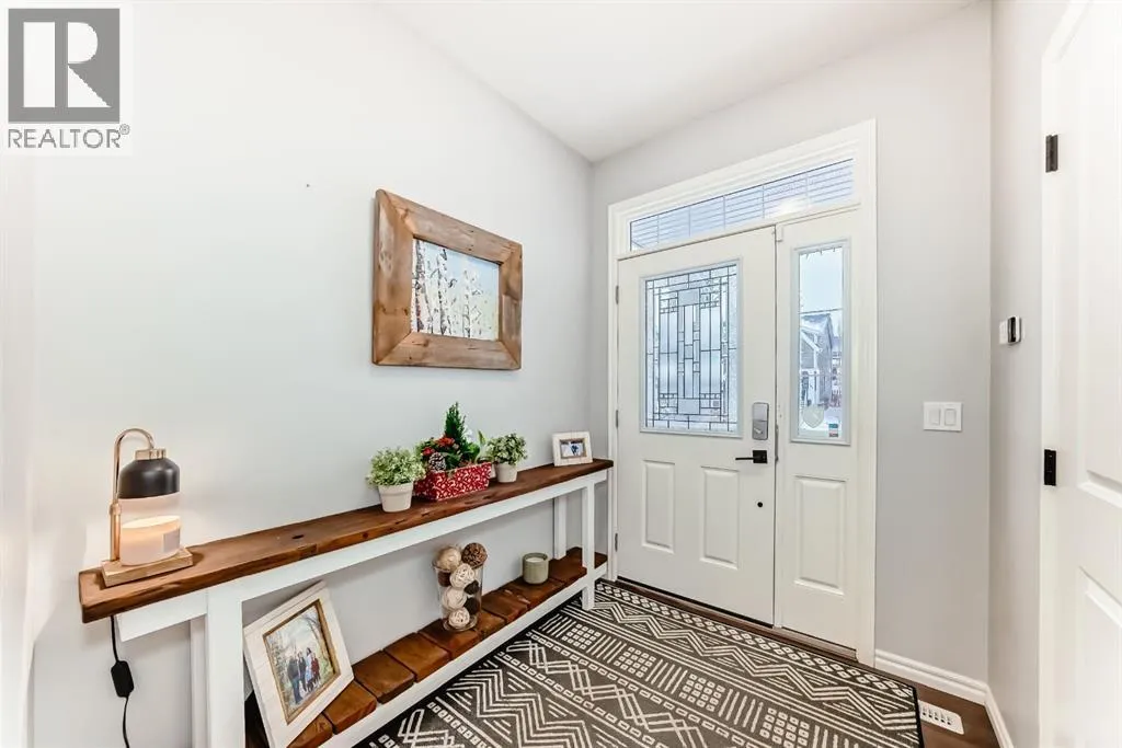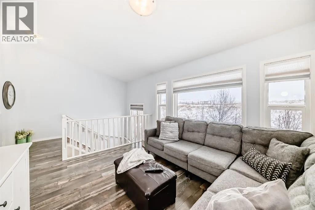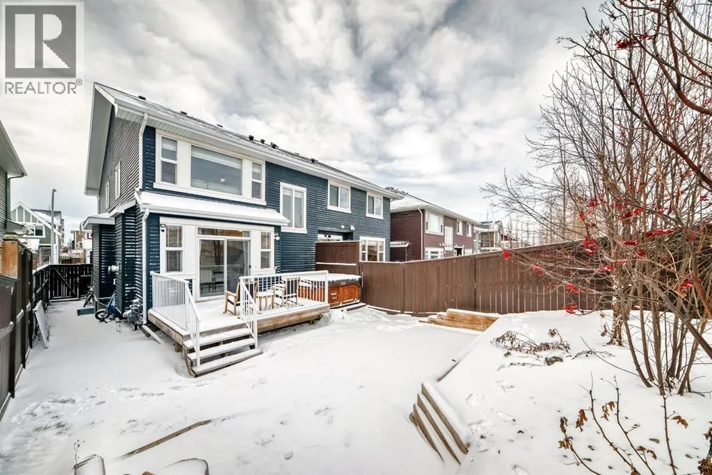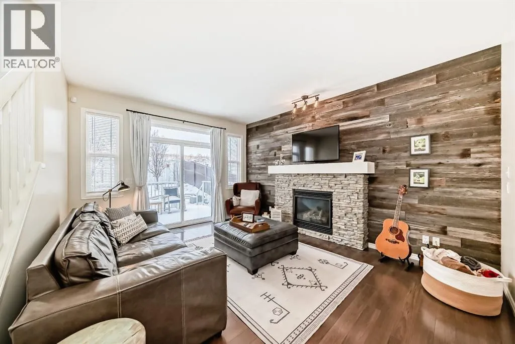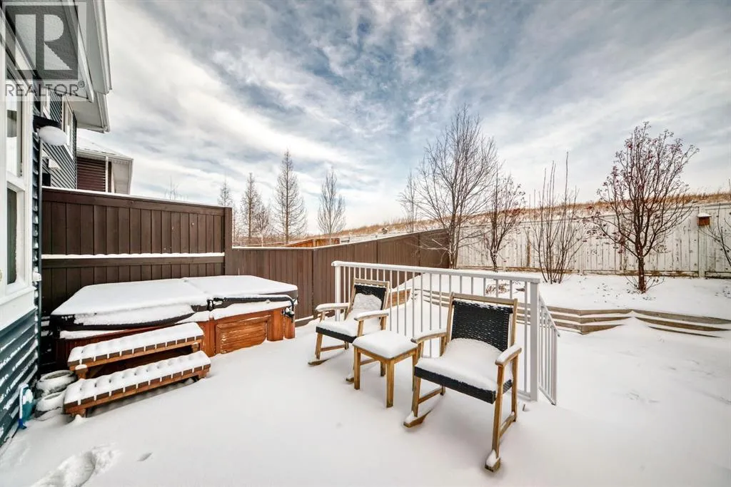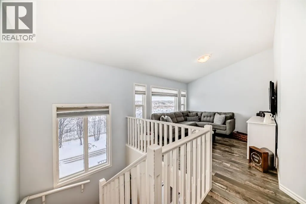 ** OPEN HOUSE Sunday Jan 4th 12:00-2:00pm** Welcome home to this exceptional semi-attached two-storey home located in the highly sought after community of River Song. This property is conveniently located walking distance to Bow Valley High School, kms of paths down to the Bow River, a quick drive into town over the Jack Tenant Bridge or out to the highway for great access to Calgary, Kananaskis and Banff National Park. This beautifully upgraded home includes an oversized single attached garage with storage and workshop area, large landscaped lot backing on green space and a HOT TUB! Inside you will find 4 bedrooms, 3.5 bathrooms and impressive 9â ceilings on both the main and upper levels, ample space for the whole family! The modern kitchen offers stainless steel appliances, a tiled backsplash, white quartz countertops, a large centre island, and contemporary white cabinetry with storage, flowing seamlessly into the dining area and spacious living room highlighted by a natural gas fireplace with stacked stone surround, mantel and striking barn board feature wall to bring in plenty of warmth. The patio doors off the living room lead you to a fully landscaped, private backyard oasis ideal for outdoor entertaining. Including a hot tub where you can soak your worries away and a private fire pit area with paving stones and backing onto green space for ultimate peace and privacy. Upstairs, the generous primary retreat includes a walk-in closet and a 4-piece ensuite with double sinks, a large walk-in shower, alongside two additional bedrooms, a full 4-piece bathroom, convenient upper-level laundry, and a large bonus room with vaulted ceilings and views to the east. The newly developed basement showcases unique brick, barn board, and shiplap feature walls and includes a spacious recreation room perfect for guests, in-laws or the kids. You will also find the fourth bedroom and a 3-piece bathroom with in-floor heating! Book a showing today! (id:27476)