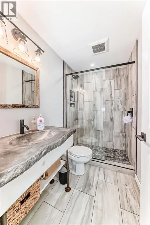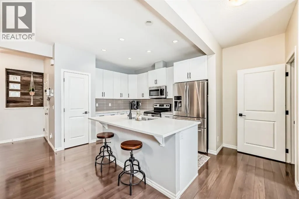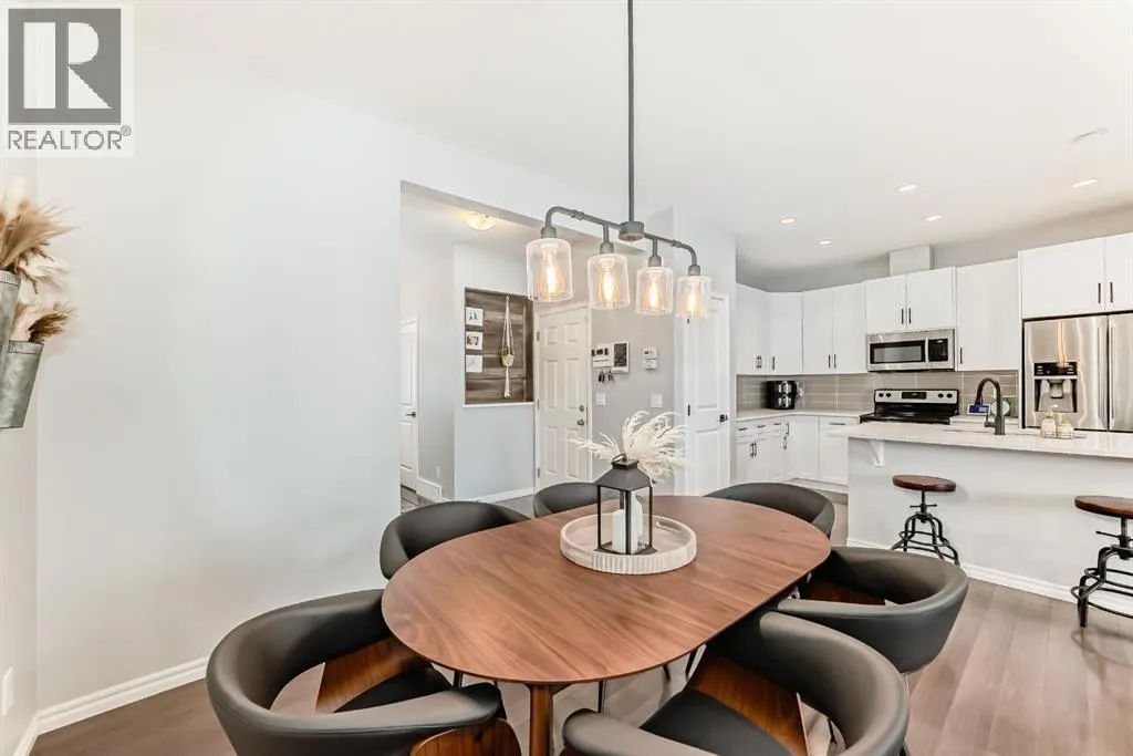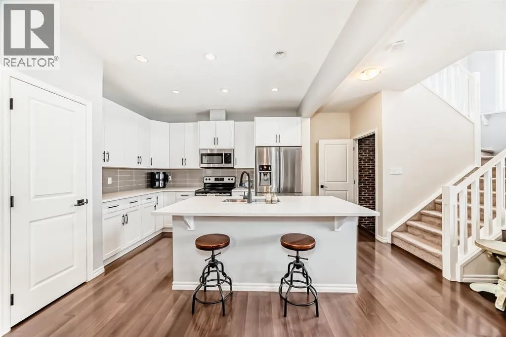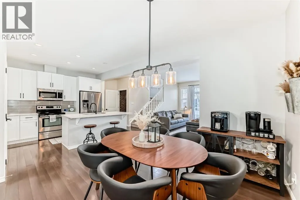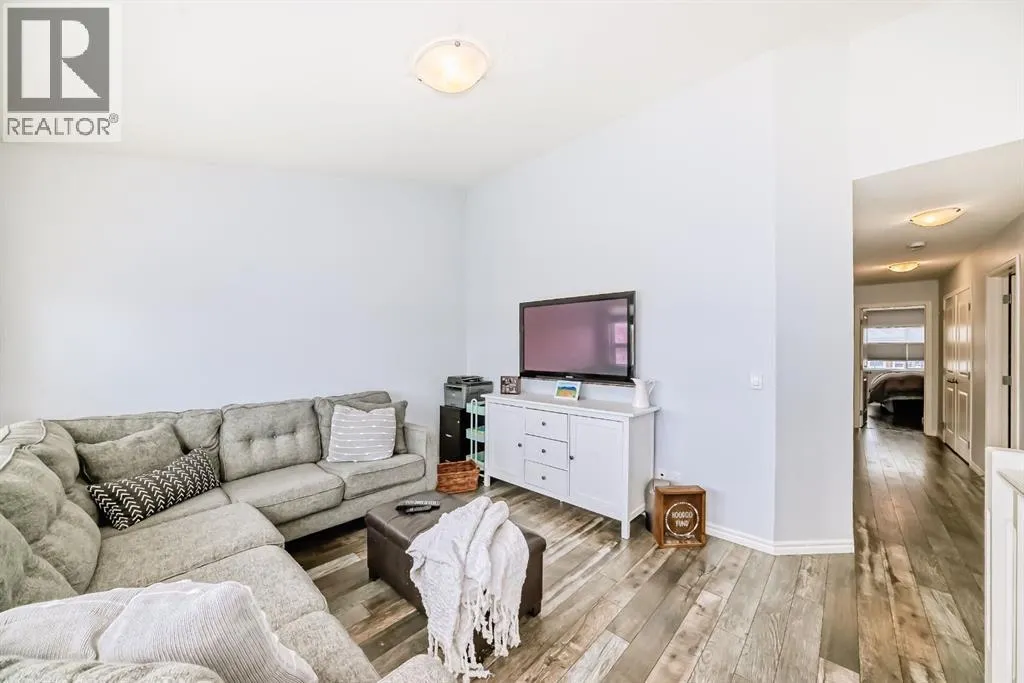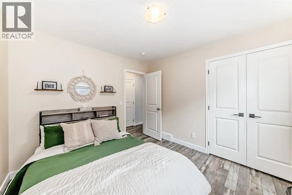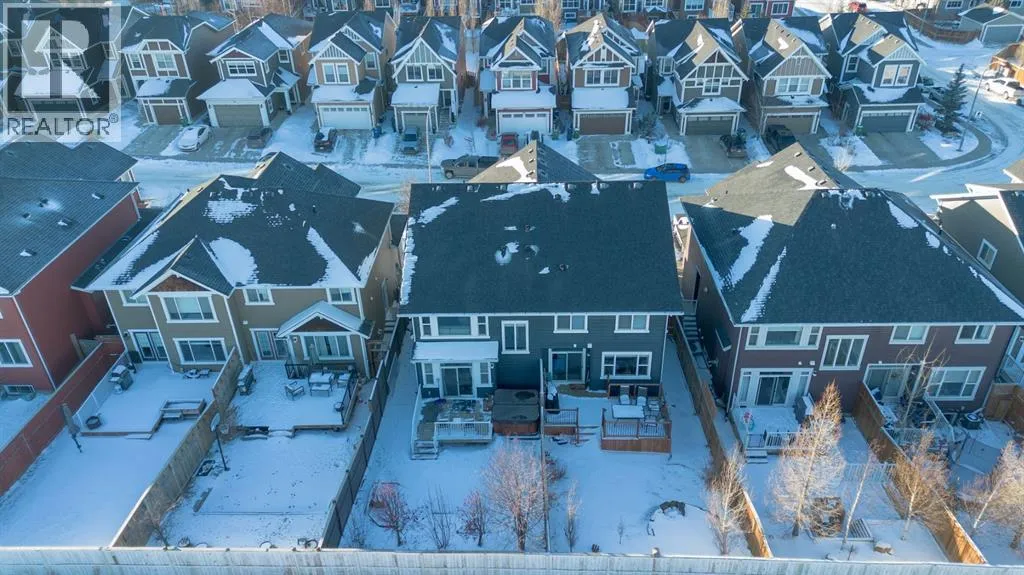 ** OPEN HOUSE Sunday Jan 4th 12:00-2:00pm** Welcome home to this exceptional semi-attached two-storey home located in the highly sought after community of River Song. This property is conveniently located walking distance to Bow Valley High School, kms of paths down to the Bow River, a quick drive into town over the Jack Tenant Bridge or out to the highway for great access to Calgary, Kananaskis and Banff National Park. This beautifully upgraded home includes an oversized single attached garage with storage and workshop area, large landscaped lot backing on green space and a HOT TUB! Inside you will find 4 bedrooms, 3.5 bathrooms and impressive 9â ceilings on both the main and upper levels, ample space for the whole family! The modern kitchen offers stainless steel appliances, a tiled backsplash, white quartz countertops, a large centre island, and contemporary white cabinetry with storage, flowing seamlessly into the dining area and spacious living room highlighted by a natural gas fireplace with stacked stone surround, mantel and striking barn board feature wall to bring in plenty of warmth. The patio doors off the living room lead you to a fully landscaped, private backyard oasis ideal for outdoor entertaining. Including a hot tub where you can soak your worries away and a private fire pit area with paving stones and backing onto green space for ultimate peace and privacy. Upstairs, the generous primary retreat includes a walk-in closet and a 4-piece ensuite with double sinks, a large walk-in shower, alongside two additional bedrooms, a full 4-piece bathroom, convenient upper-level laundry, and a large bonus room with vaulted ceilings and views to the east. The newly developed basement showcases unique brick, barn board, and shiplap feature walls and includes a spacious recreation room perfect for guests, in-laws or the kids. You will also find the fourth bedroom and a 3-piece bathroom with in-floor heating! Book a showing today! (id:27476)